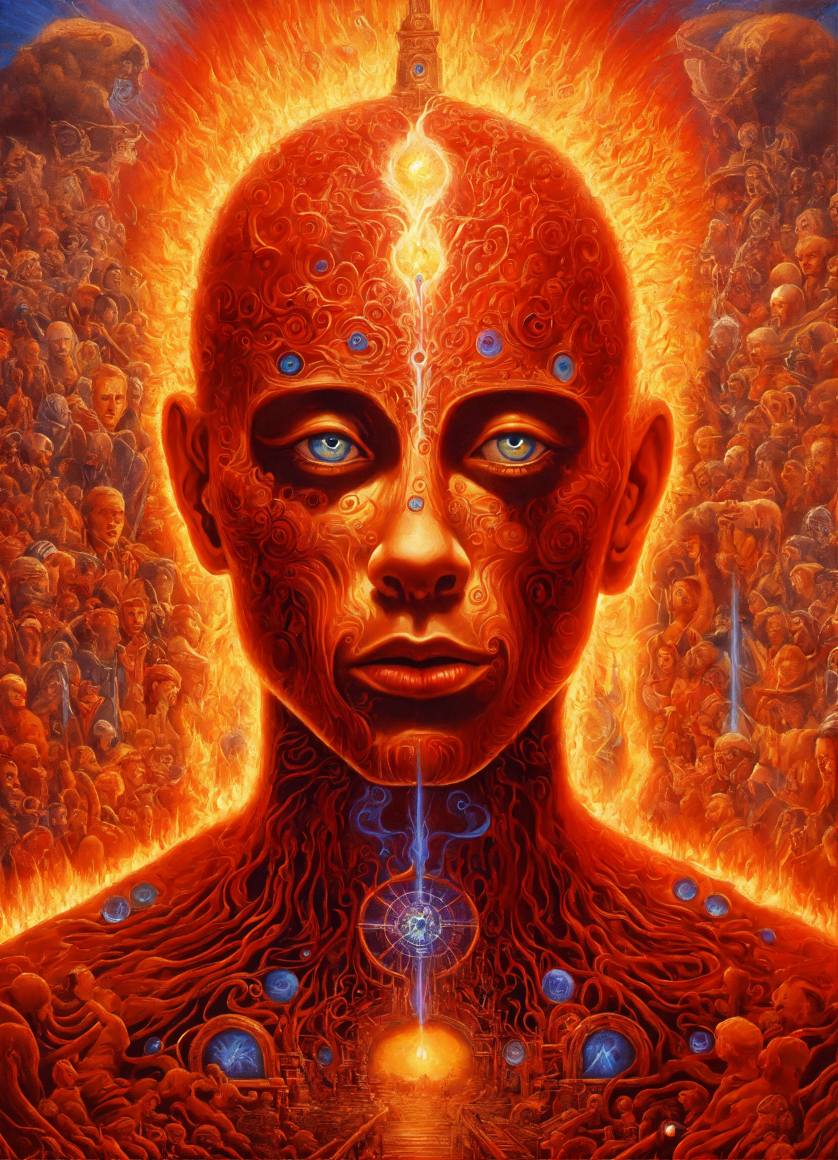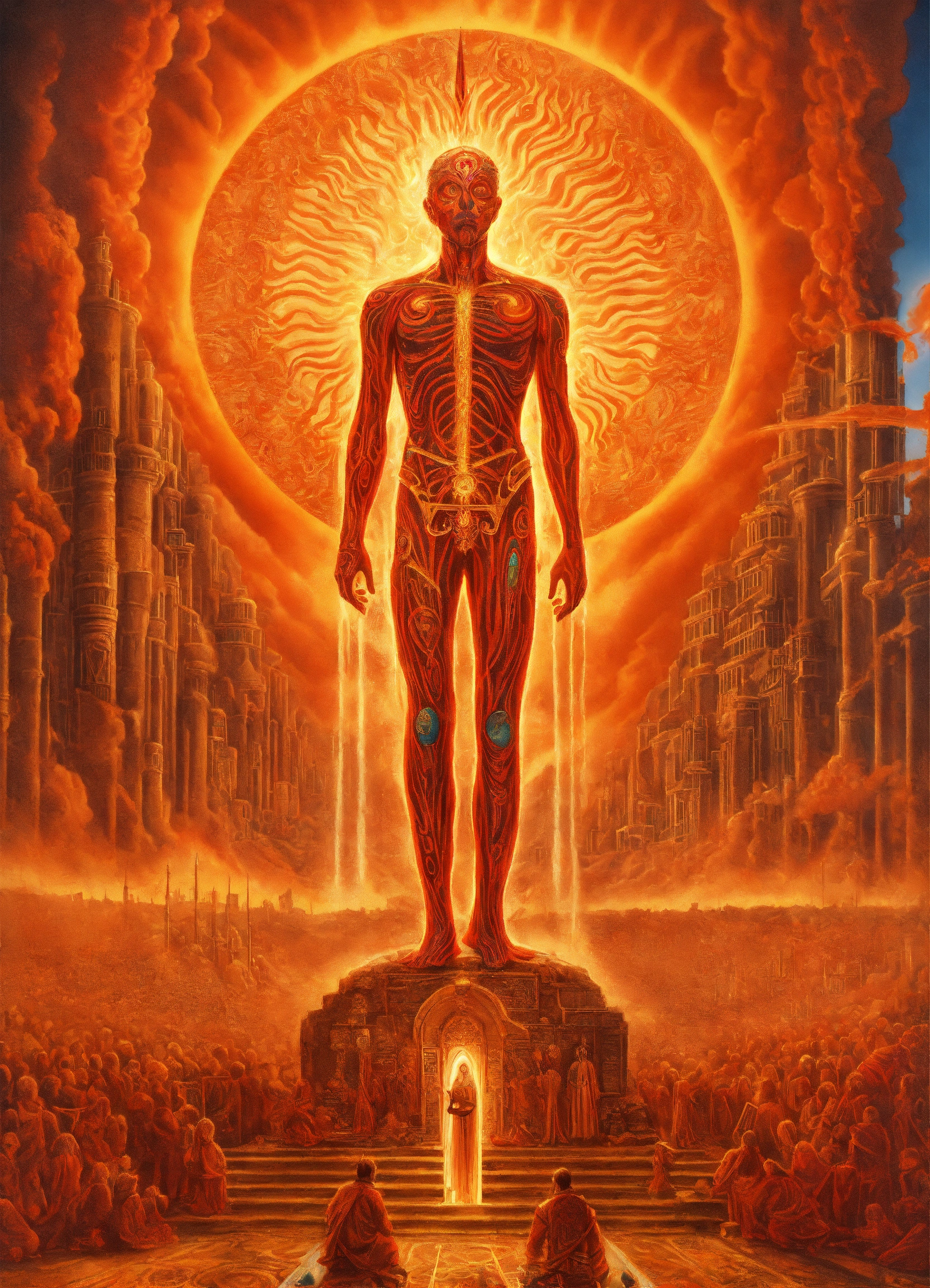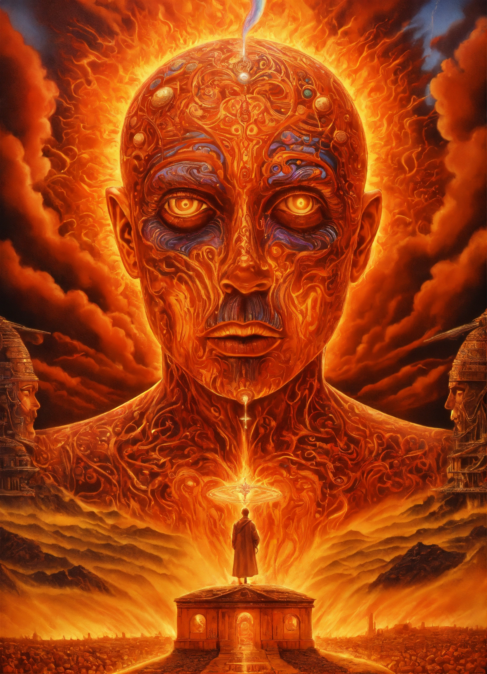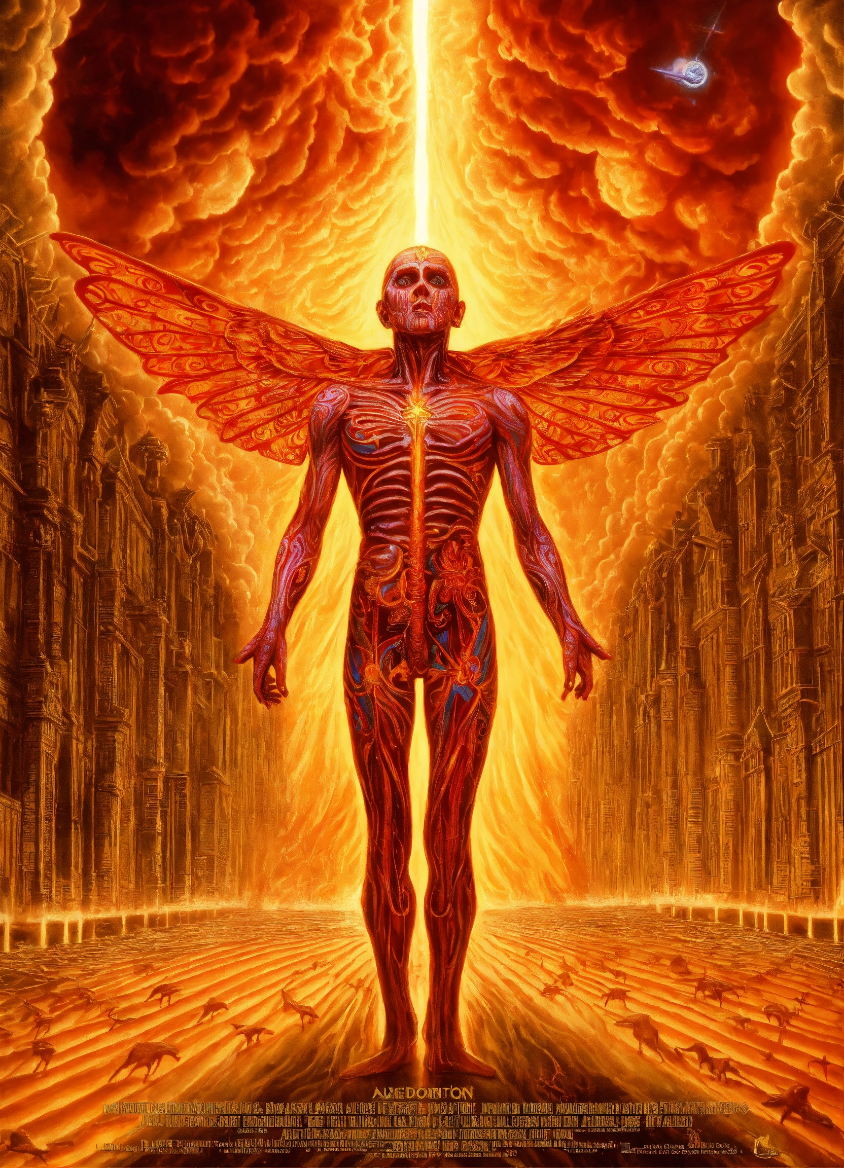 Armageddon, divine inspiration, alex grey, son of perdition, extremely creative and unique, highly detailed and realistic, incredibly imaginative and unique perspective, directed by tim burton, artistic attention to armageddon, immensely creative and unique, xxxx creative ççç, god, immaculate creativity, apocalyptic rebuilding