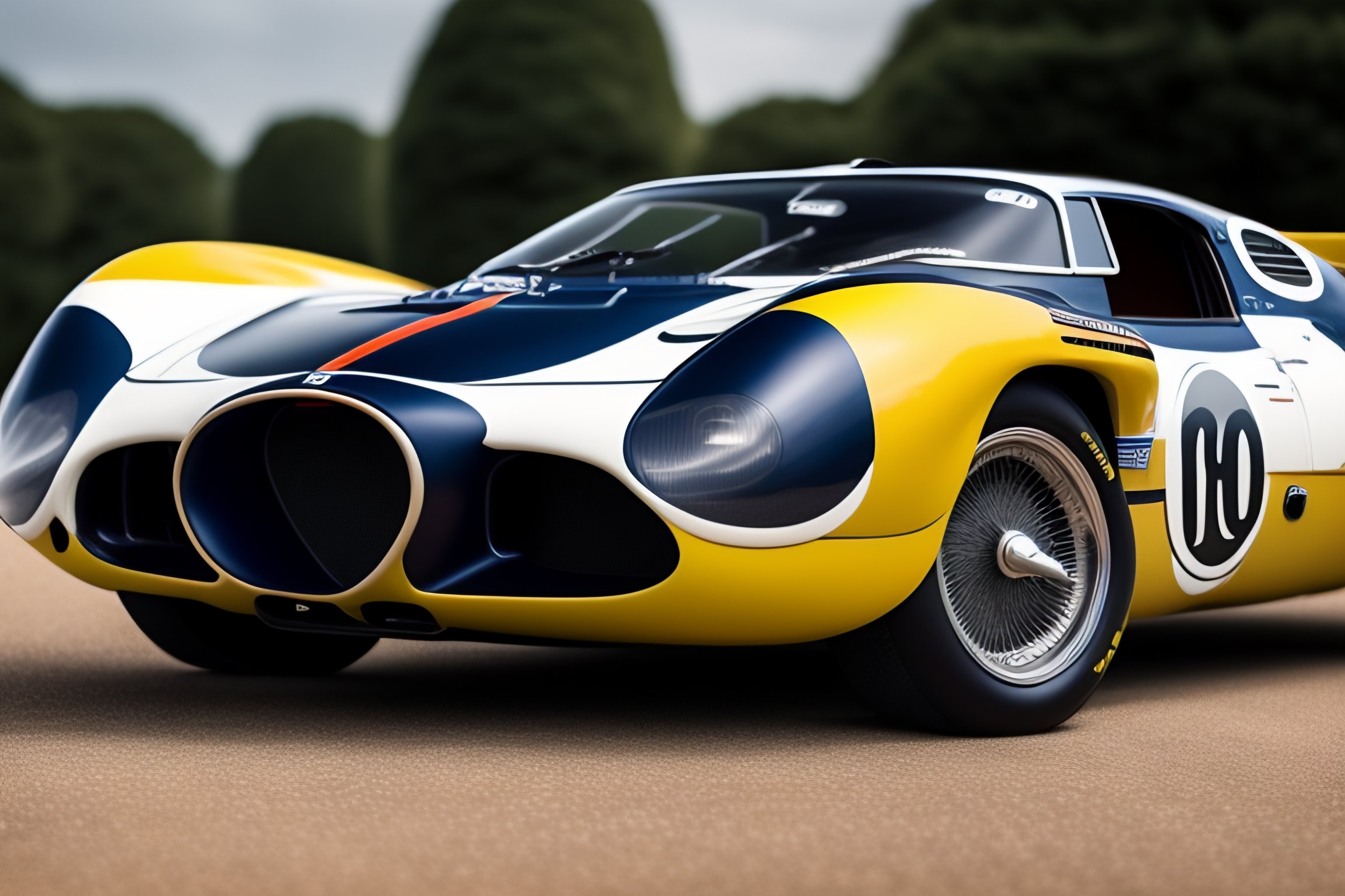 A retro bugatti chiron 1966 prototype race car from at le mans