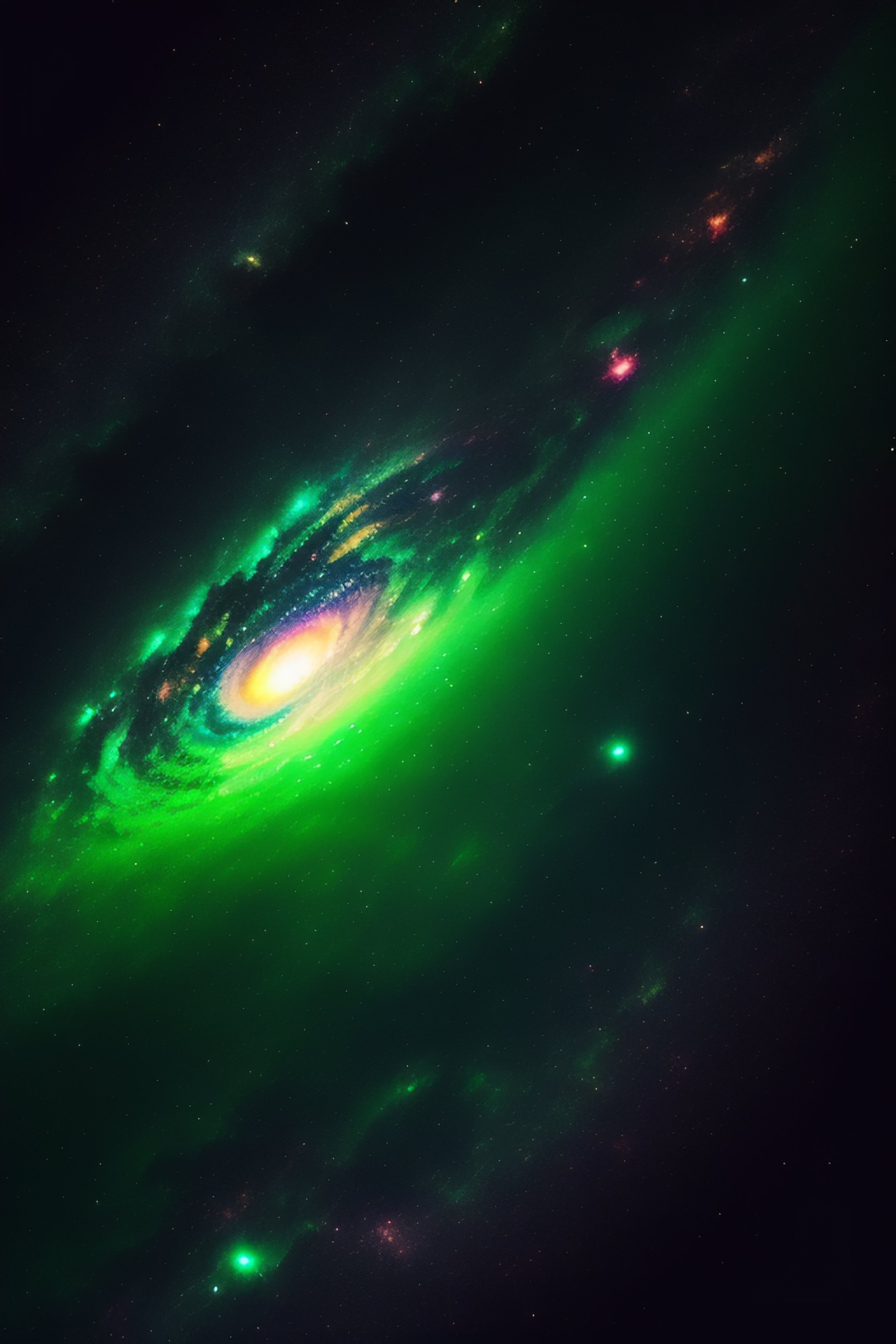 Green and black scheme colors, black and green galaxy, space, color lights, sharp focus, highly detailed, aesthetic, cinematic, art.