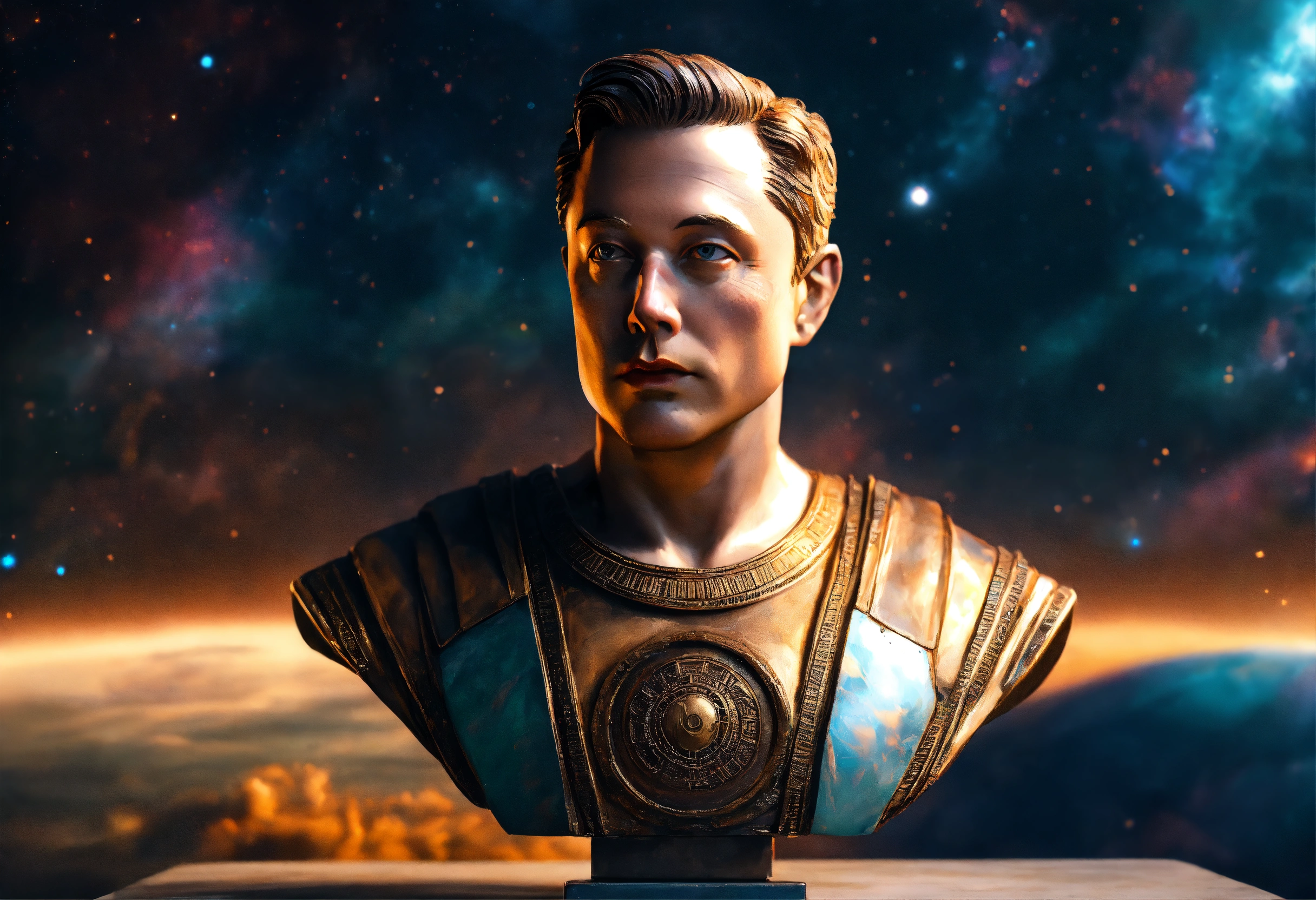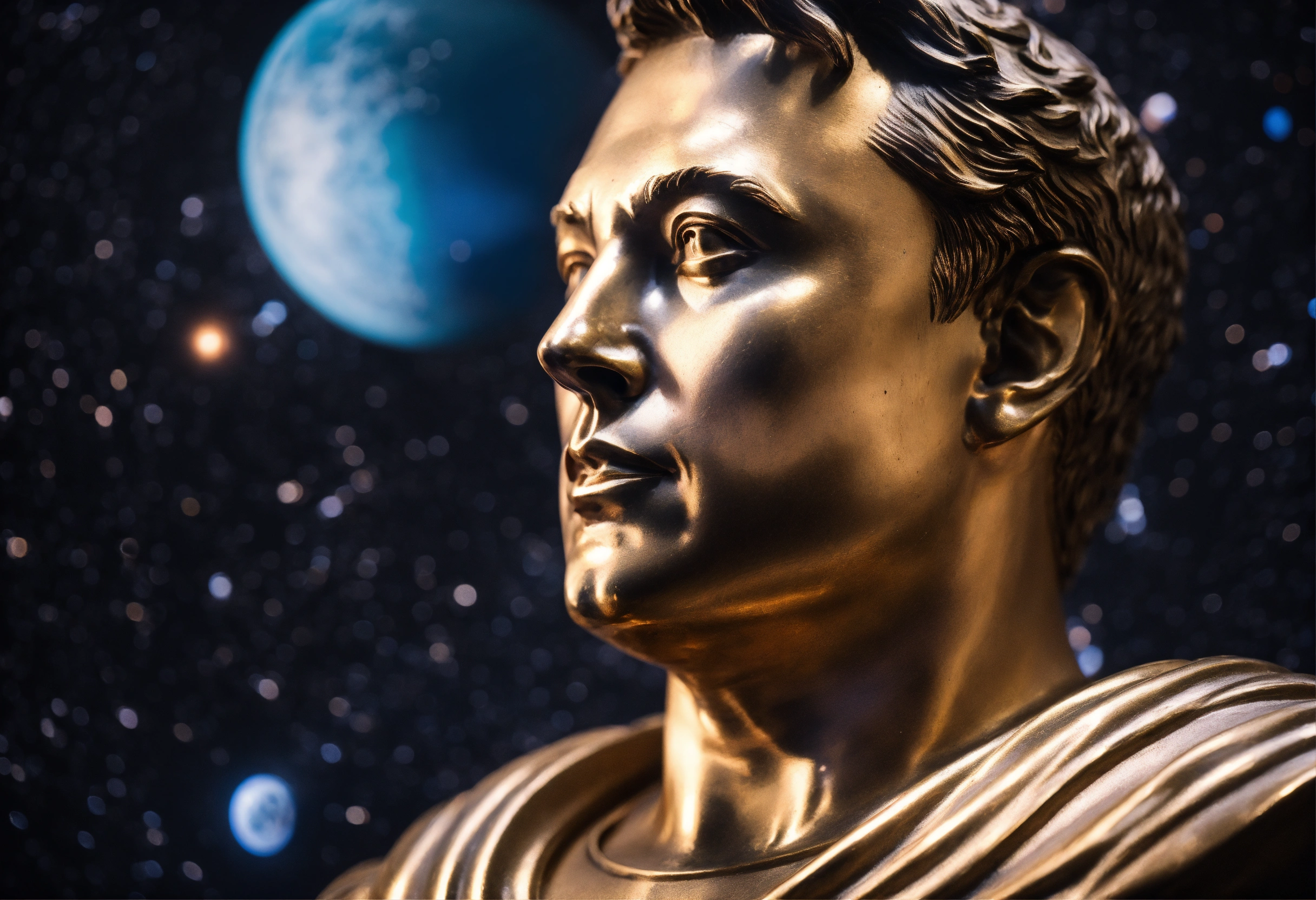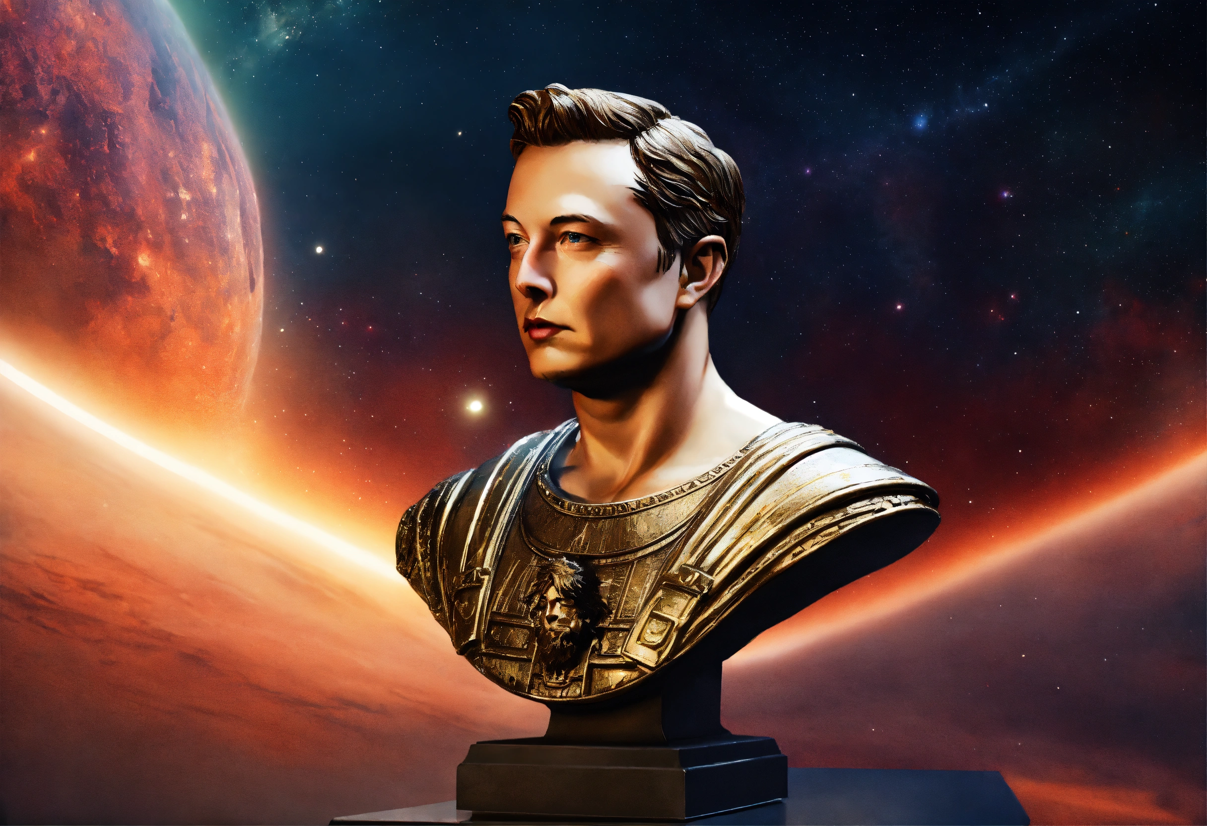Realistic old elon musk bust of a greek god statue