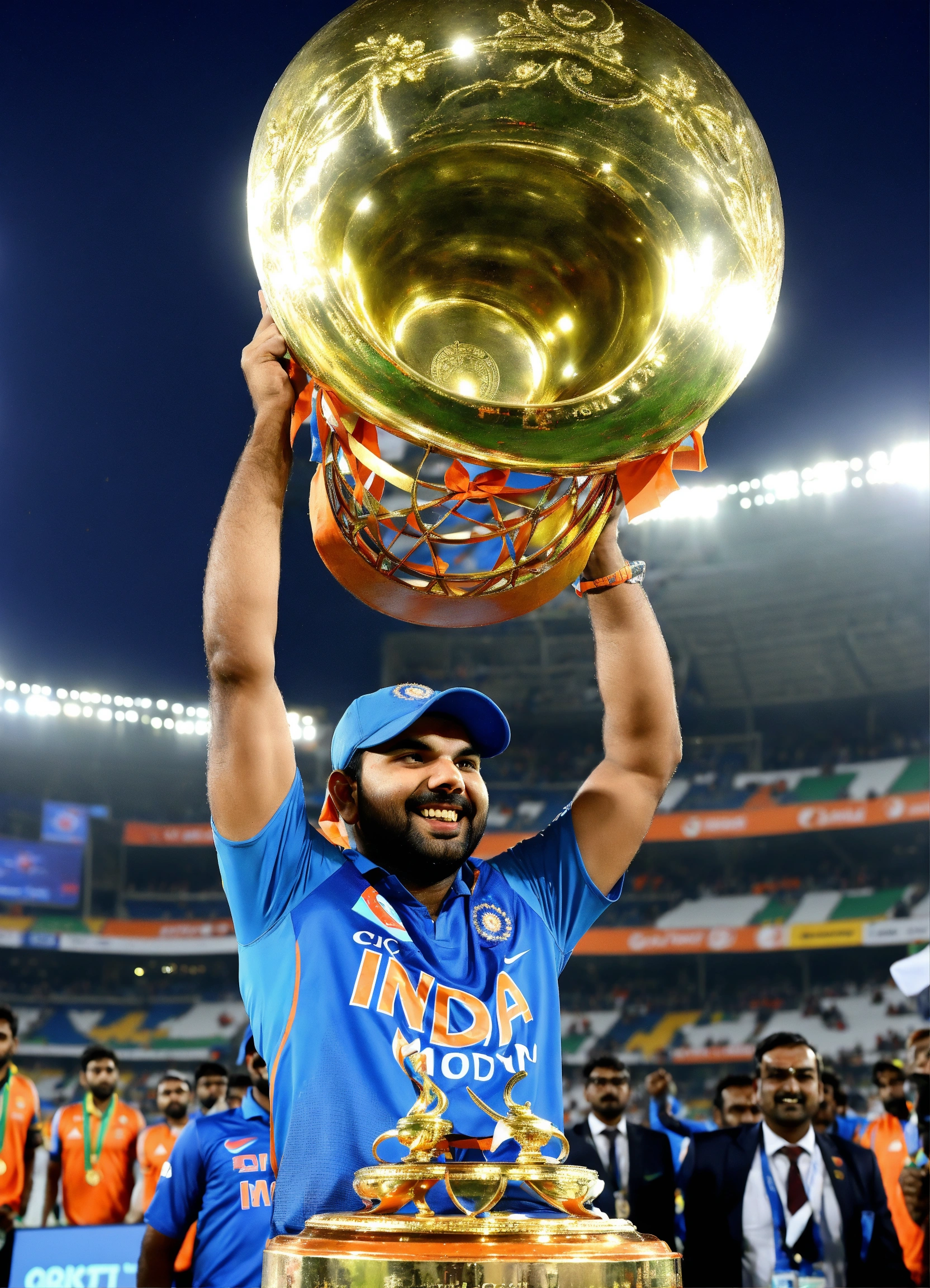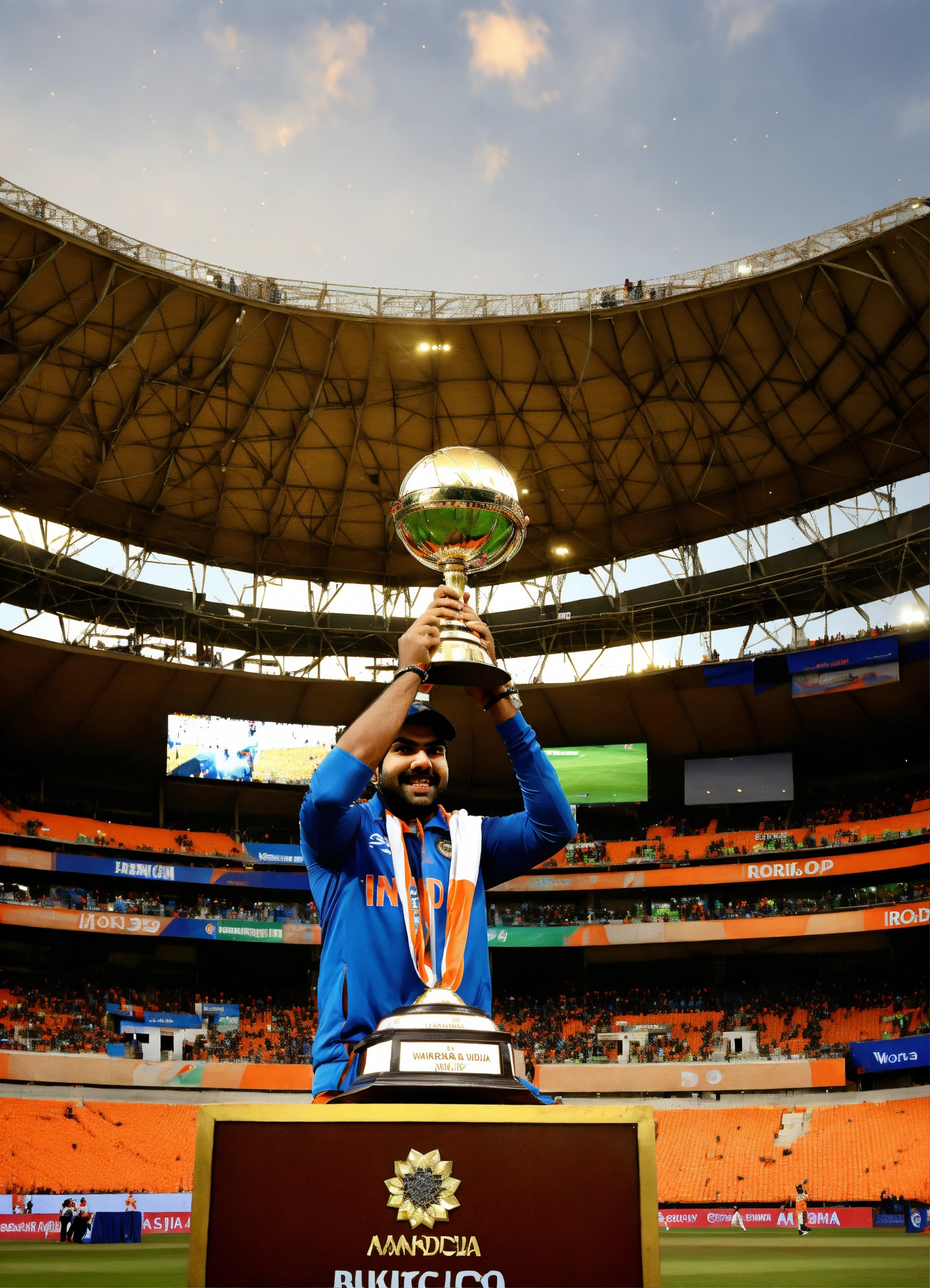 At the narendra modi stadium in ahmedabad, rohit sharma etched his name in history by securing the icc cricket world cup. his unparalleled determination and exceptional teamwork were evident as he joyously lifted the trophy, leaving an indelible mark on cricketing history and resonating with fans worldwide.