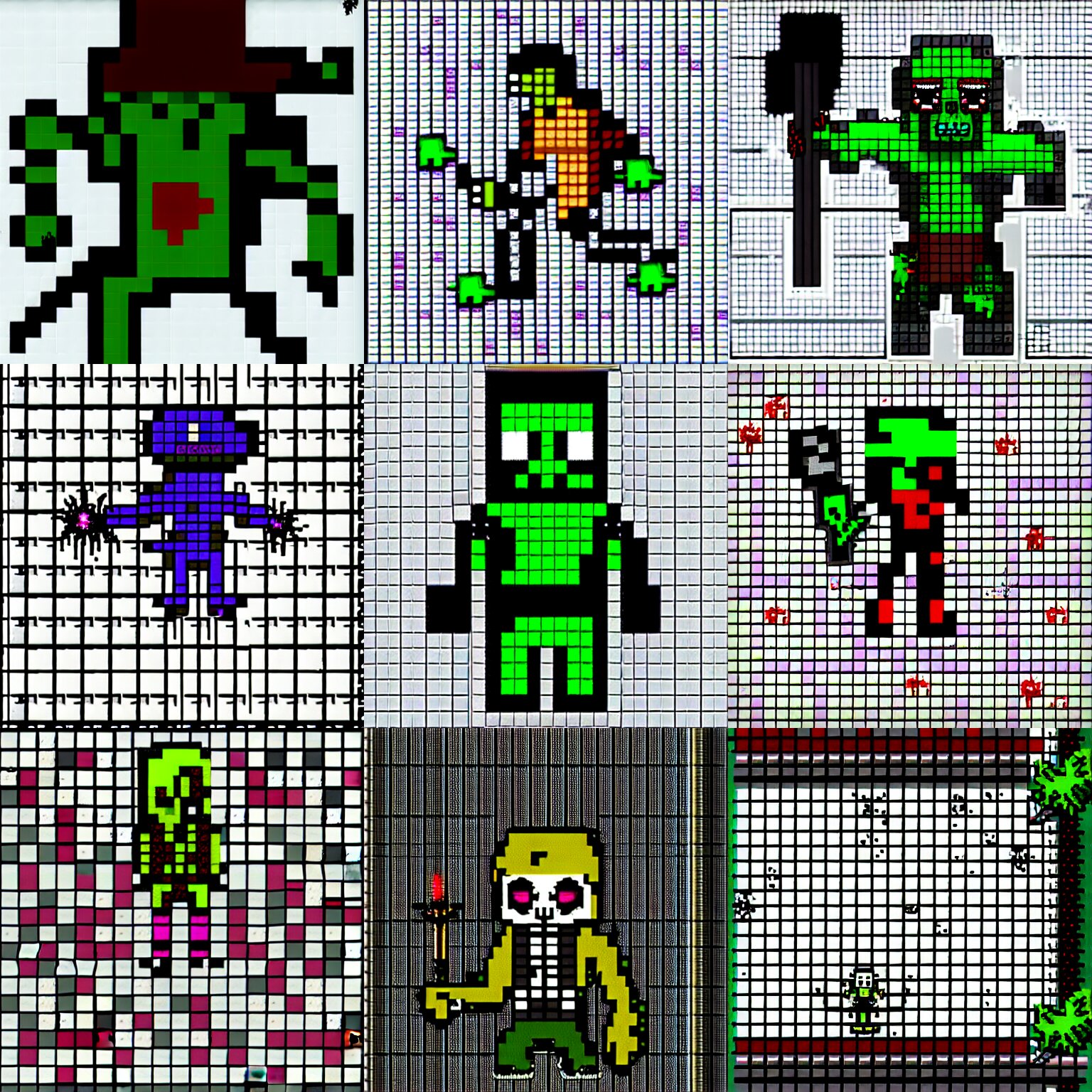 A zombie sprite from roguelike rpg game, msxotto +, undeadpeople tileset, pixel art, horror art, masterpiece, dark, gothic, very detailed, a single sprite on white background