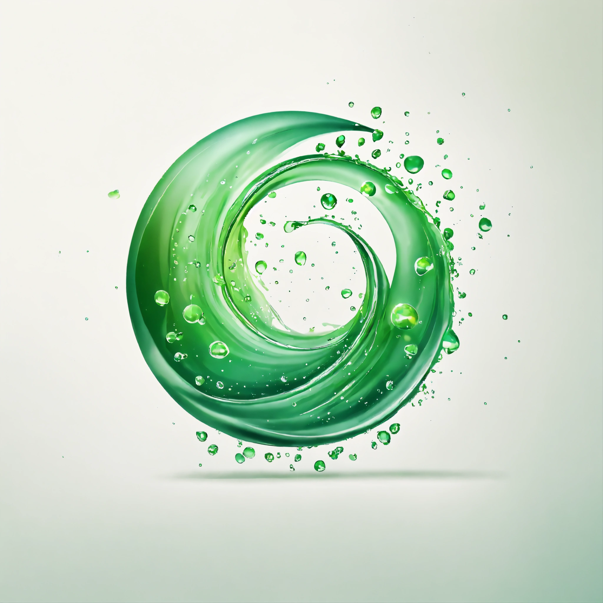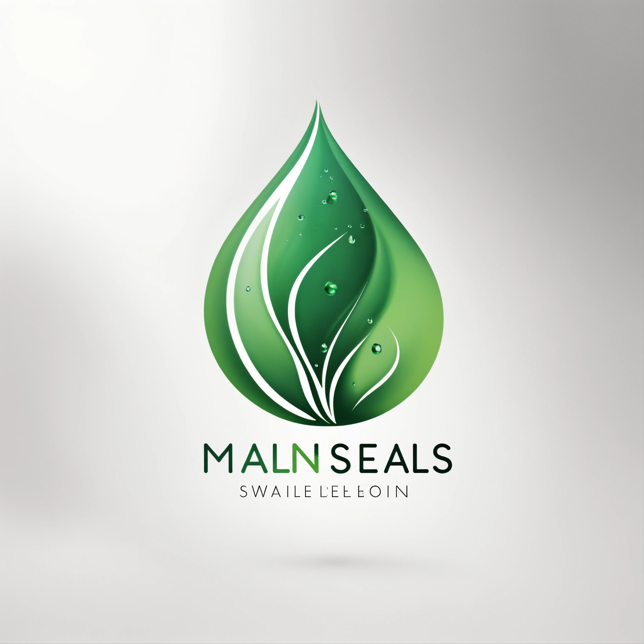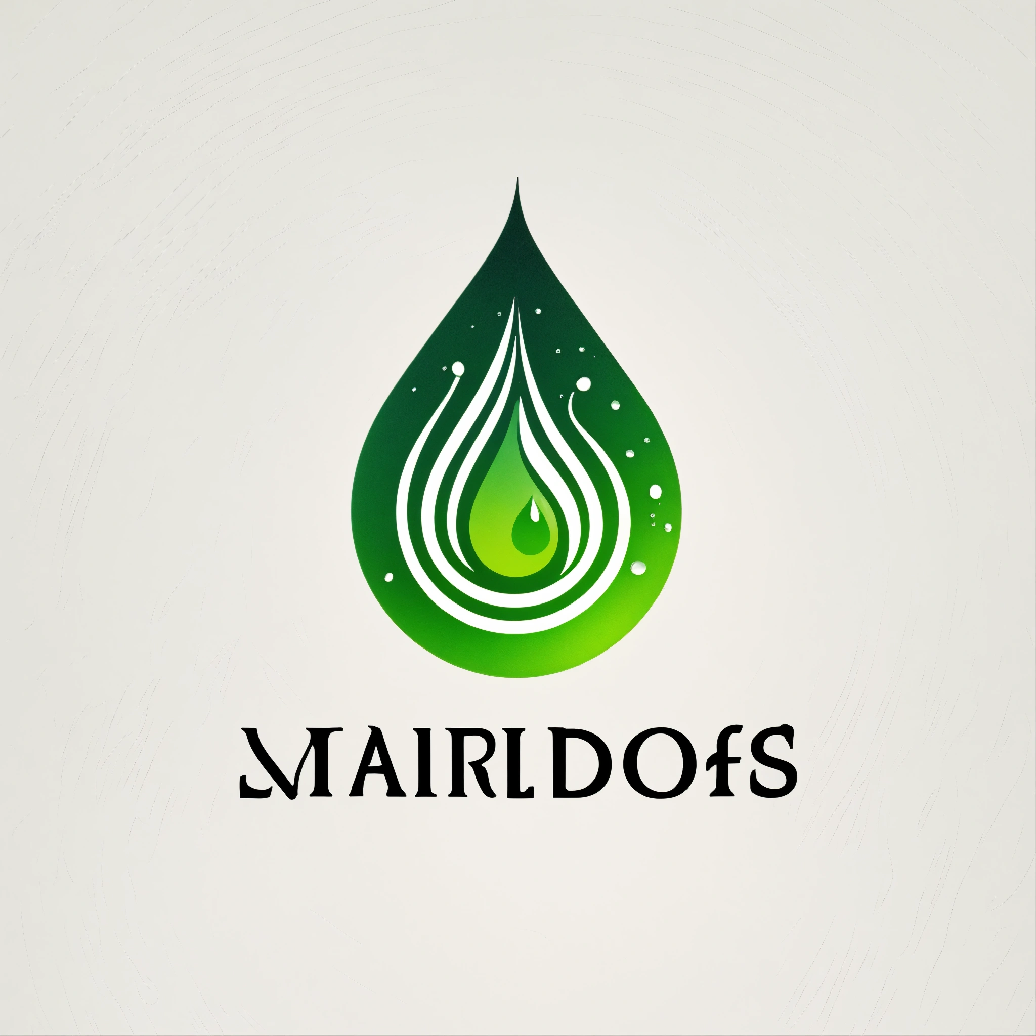 Minimal green water drops logo on white background with faint swirls