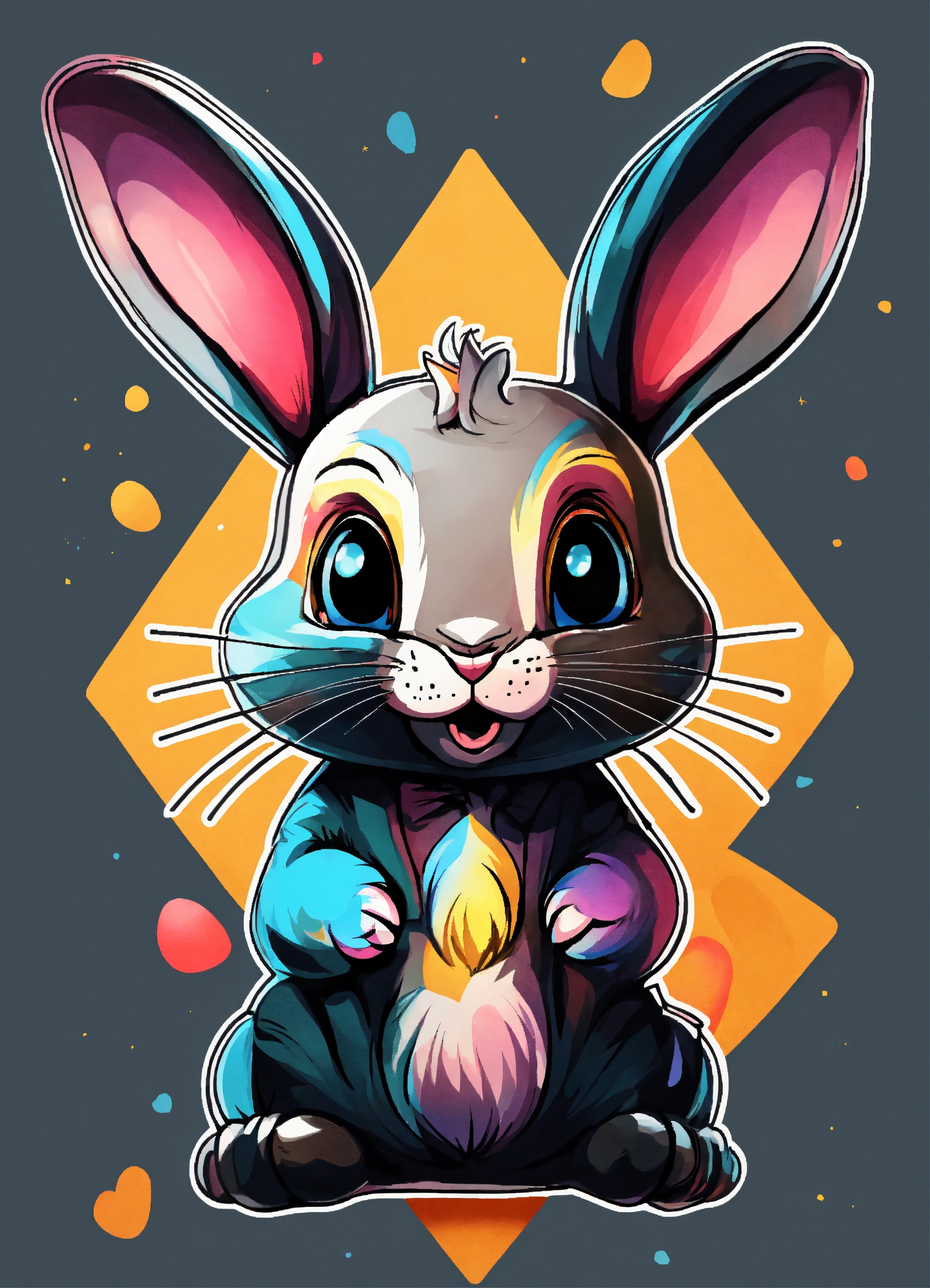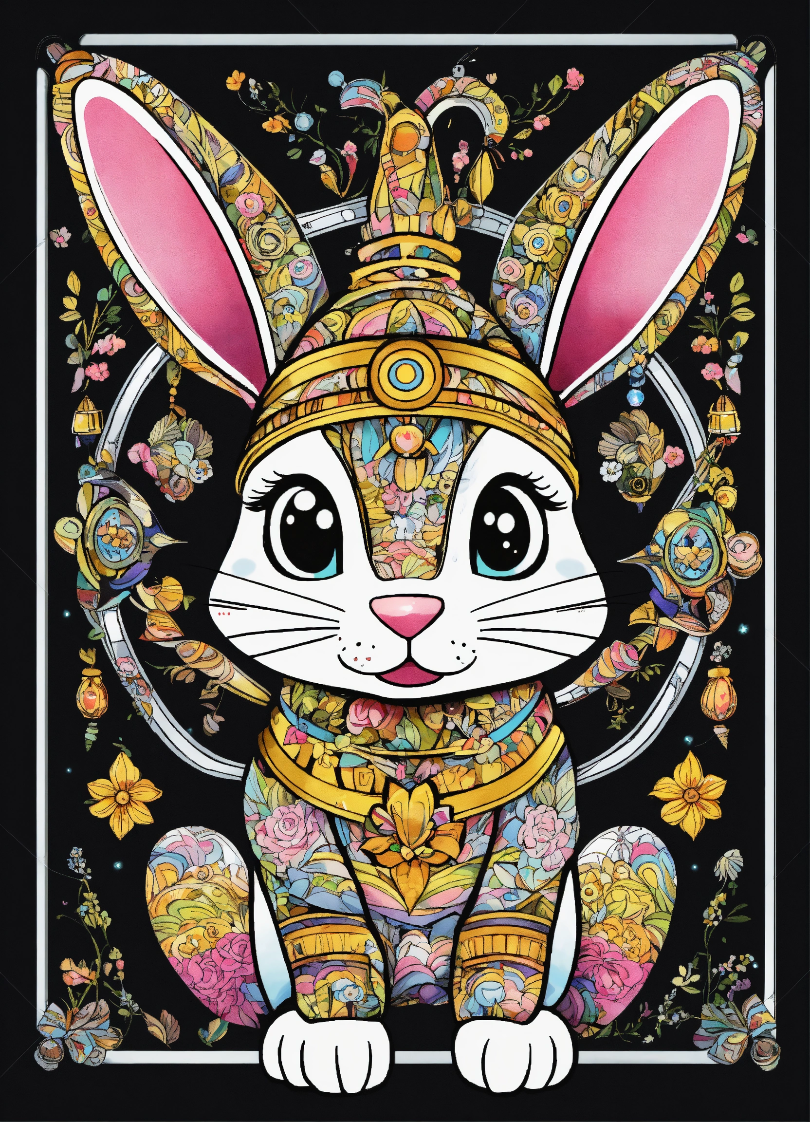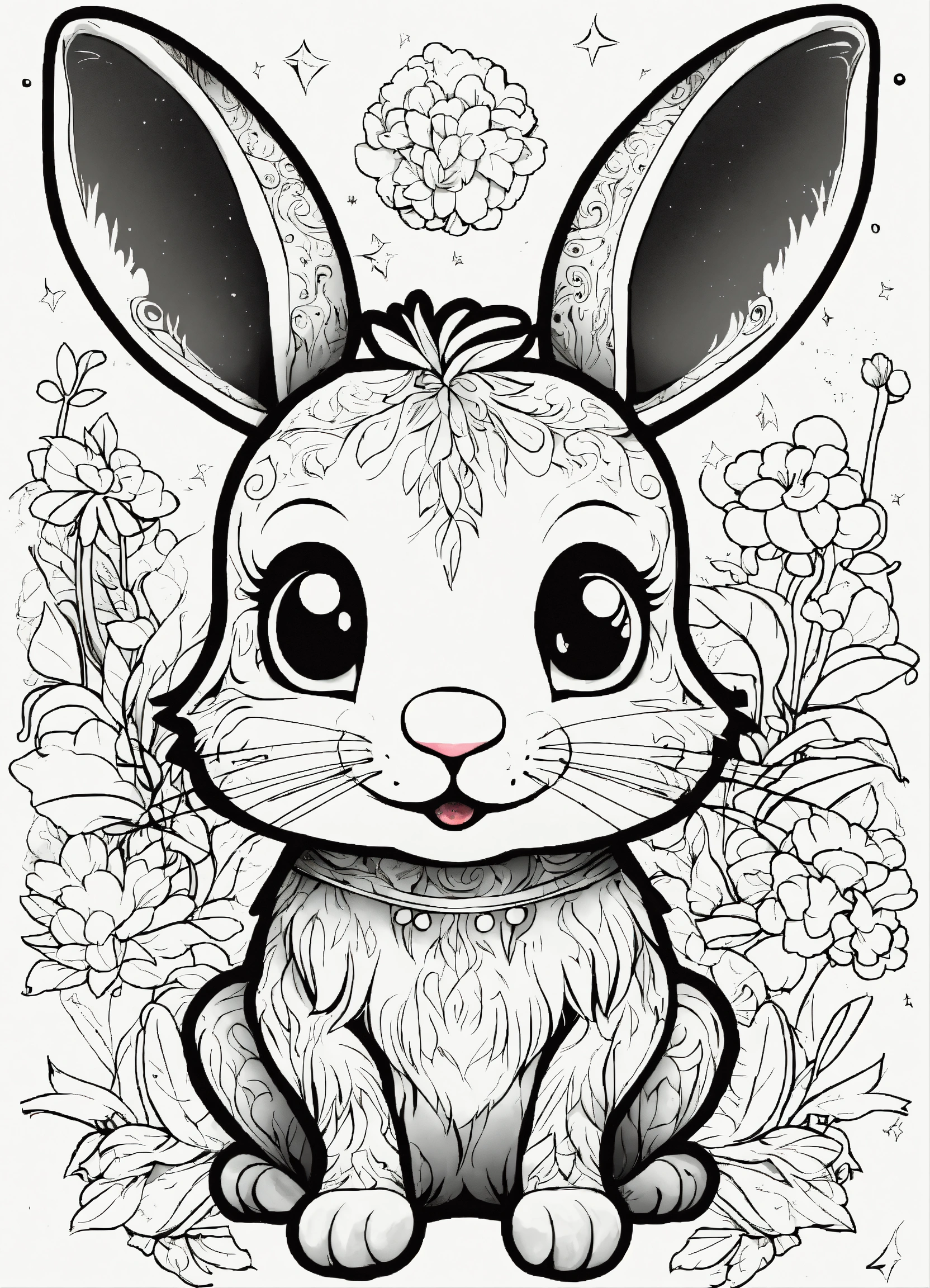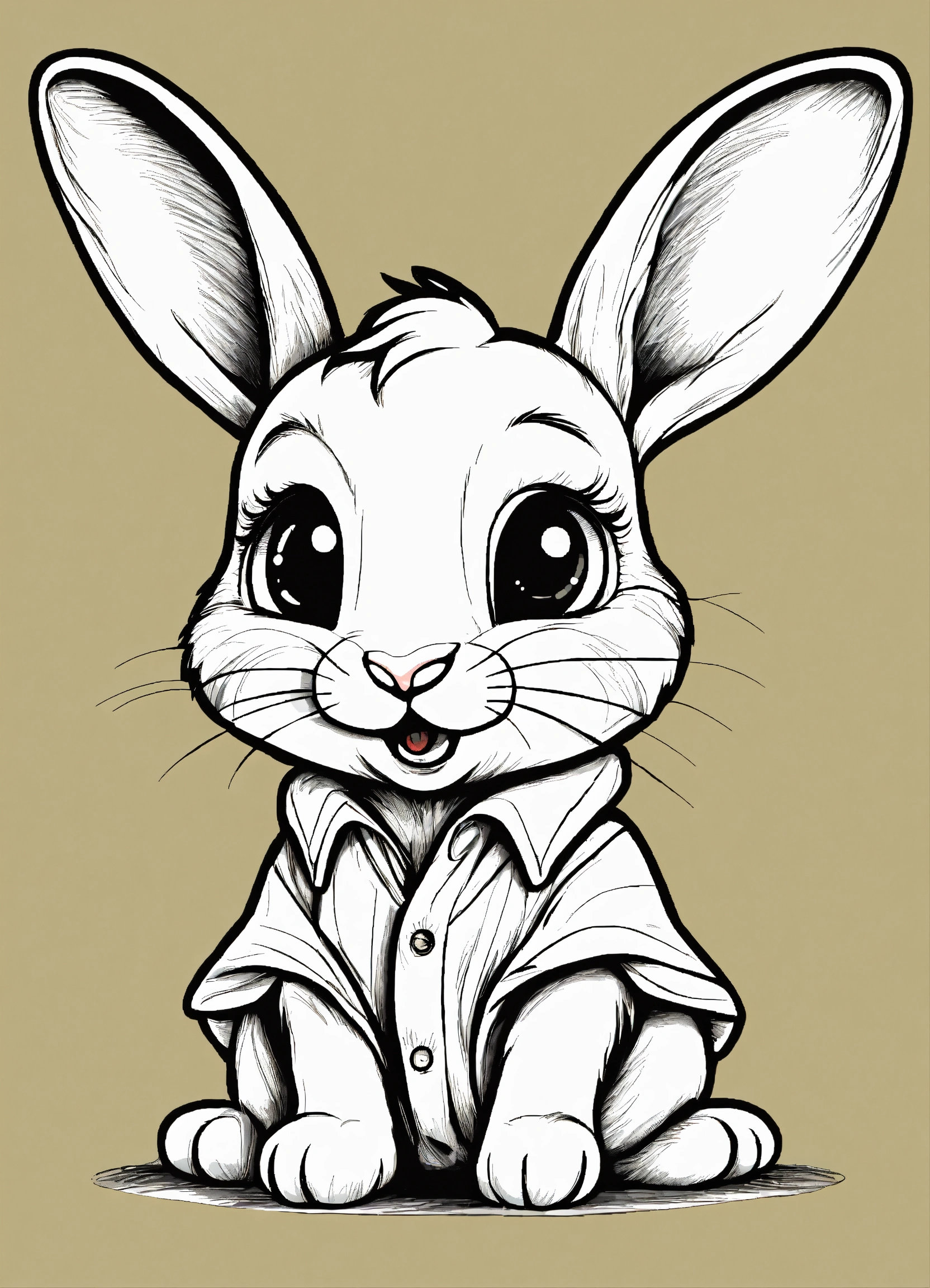 Generate a cute little rabbit, super eye-catching illustration, resolution, cartoon-sticker style with clear lines on a pure black background suitable for a children's coloring book.