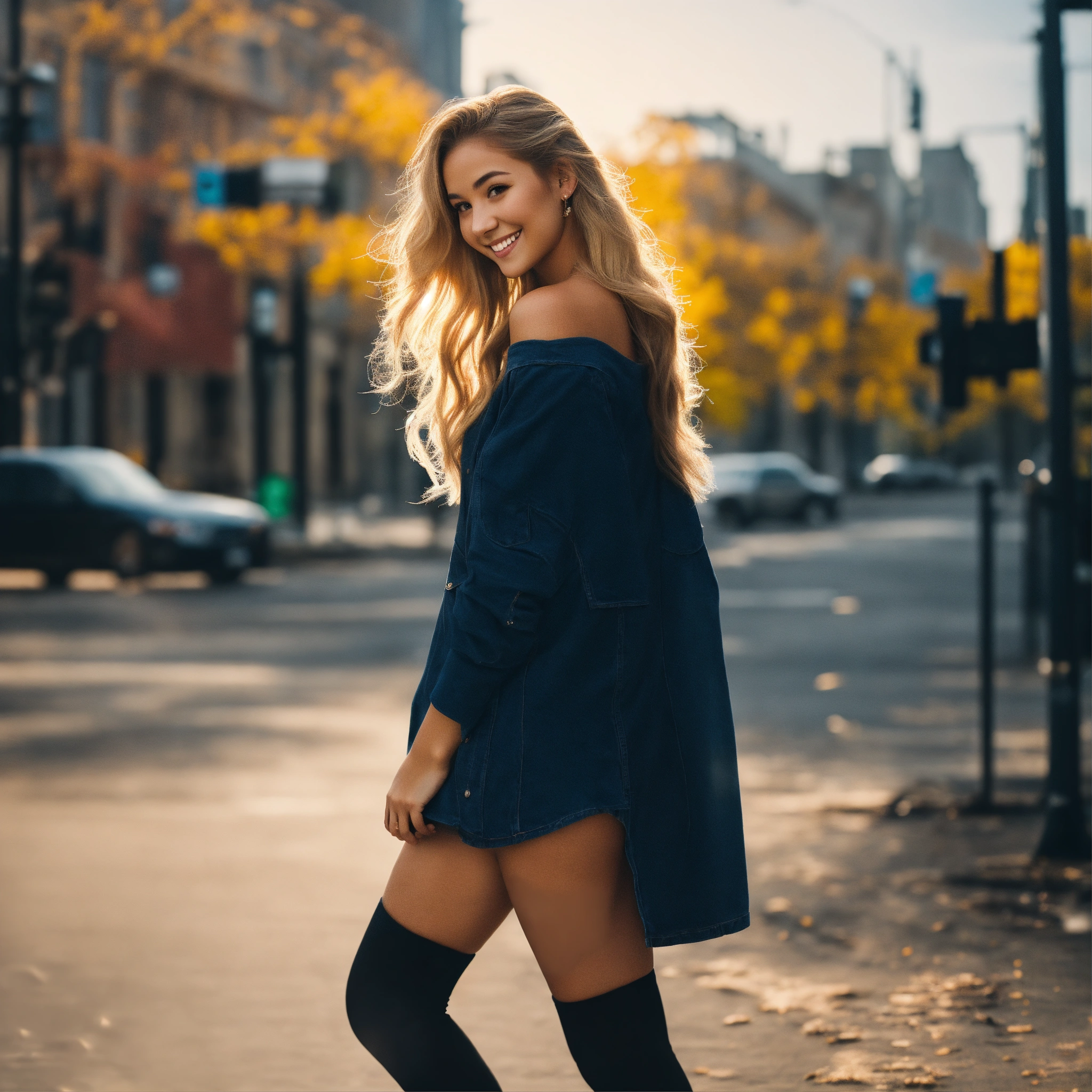 Real life, photography, hyper-realistic, photo realism, full body silhouette of a slim body with amazing curves, full body, legs, young very cute 21 years old woman, long sidecut hairstyle, blonde, smile