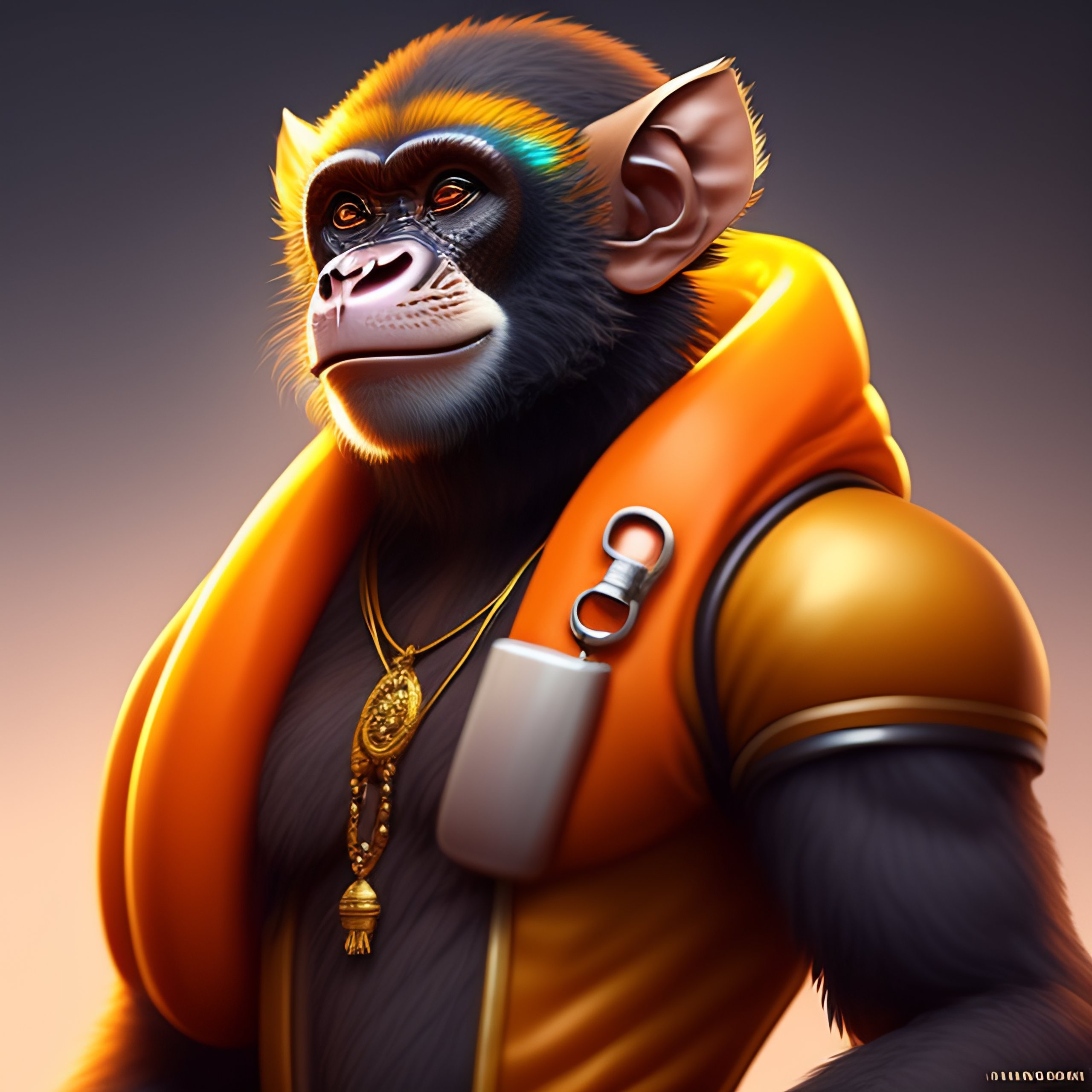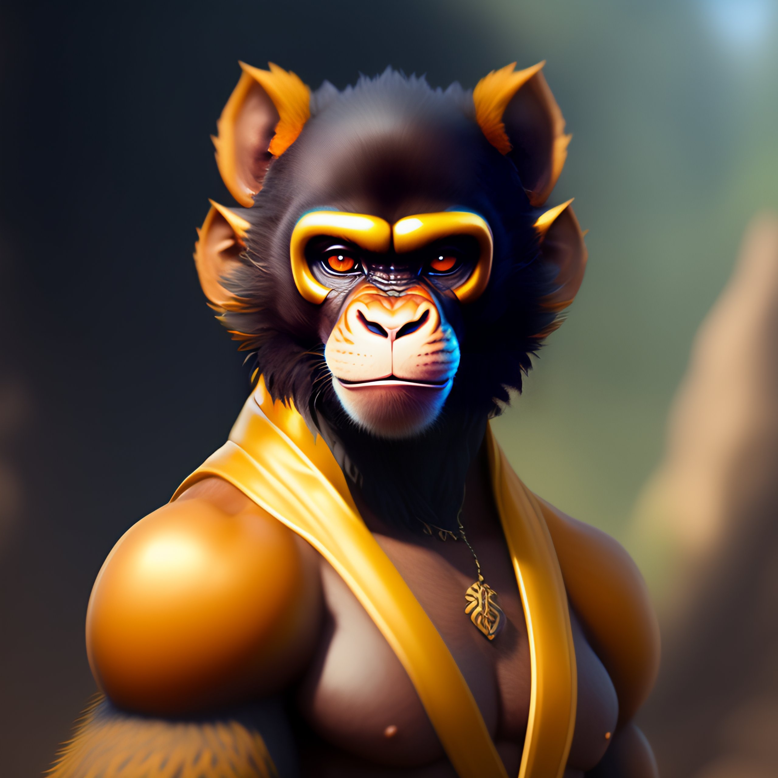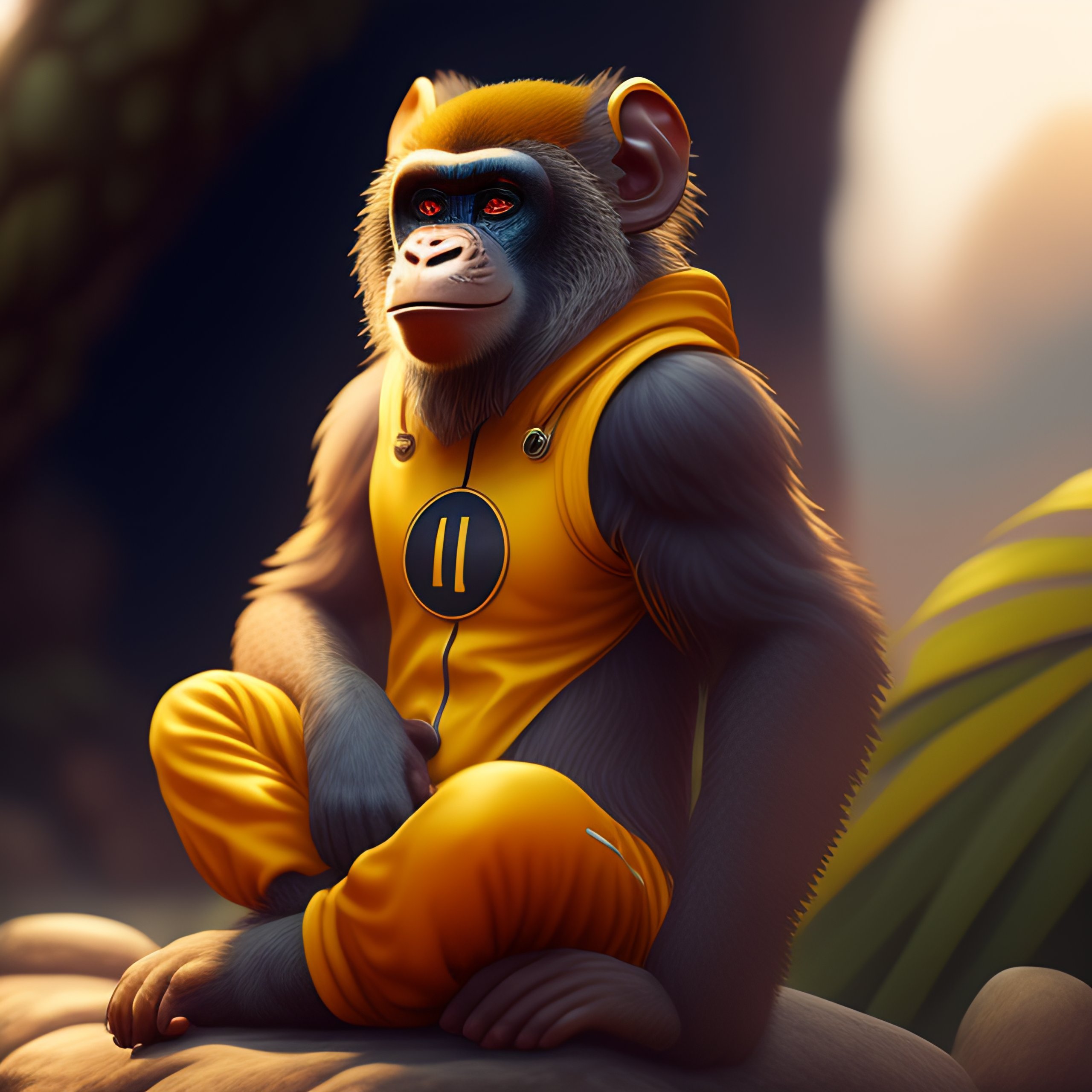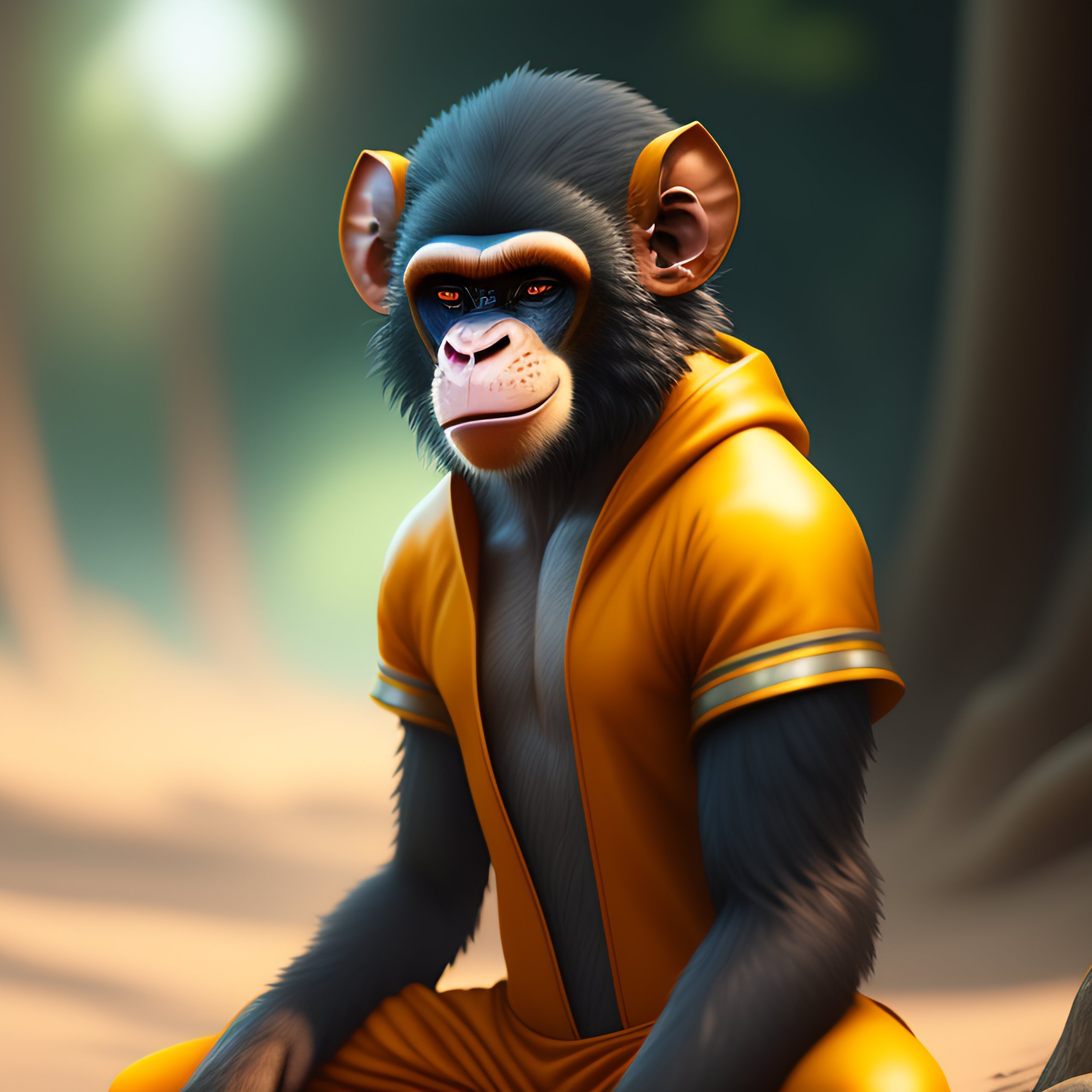 Anthro furry humanoid monkey, yoga suit, meditation, character smile, painting, detailed, vivid, trending on artstation