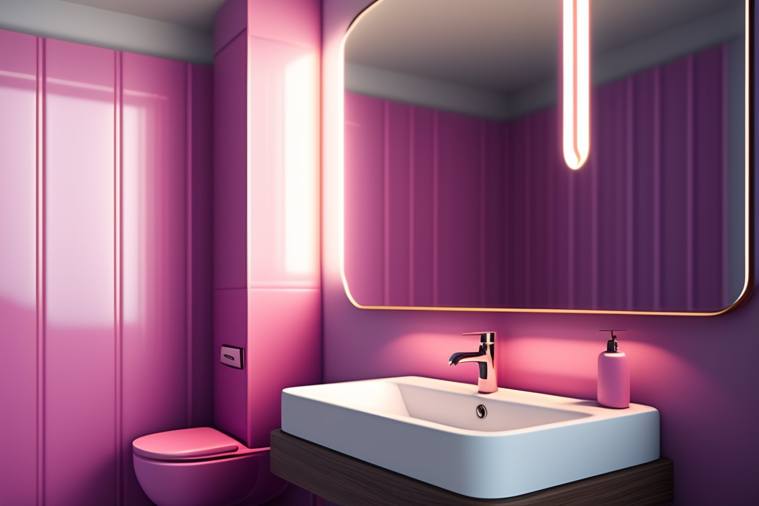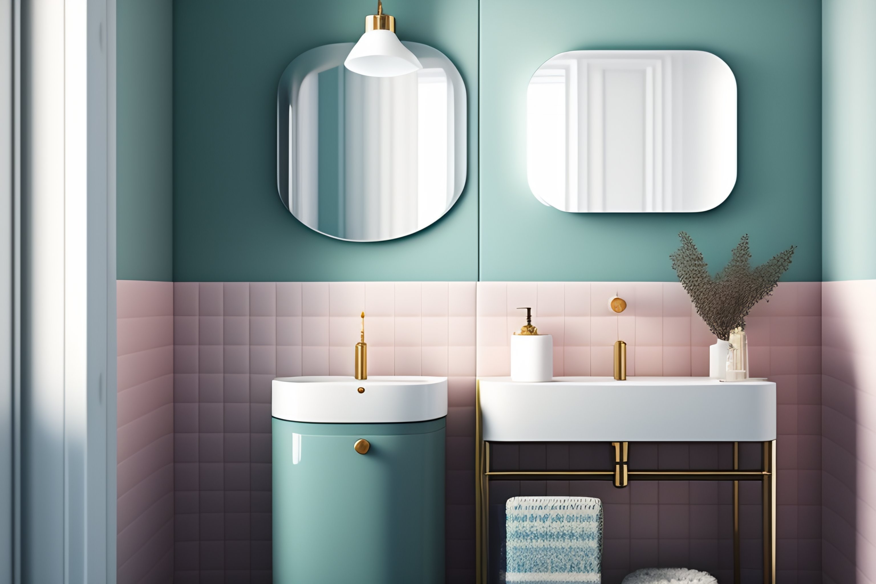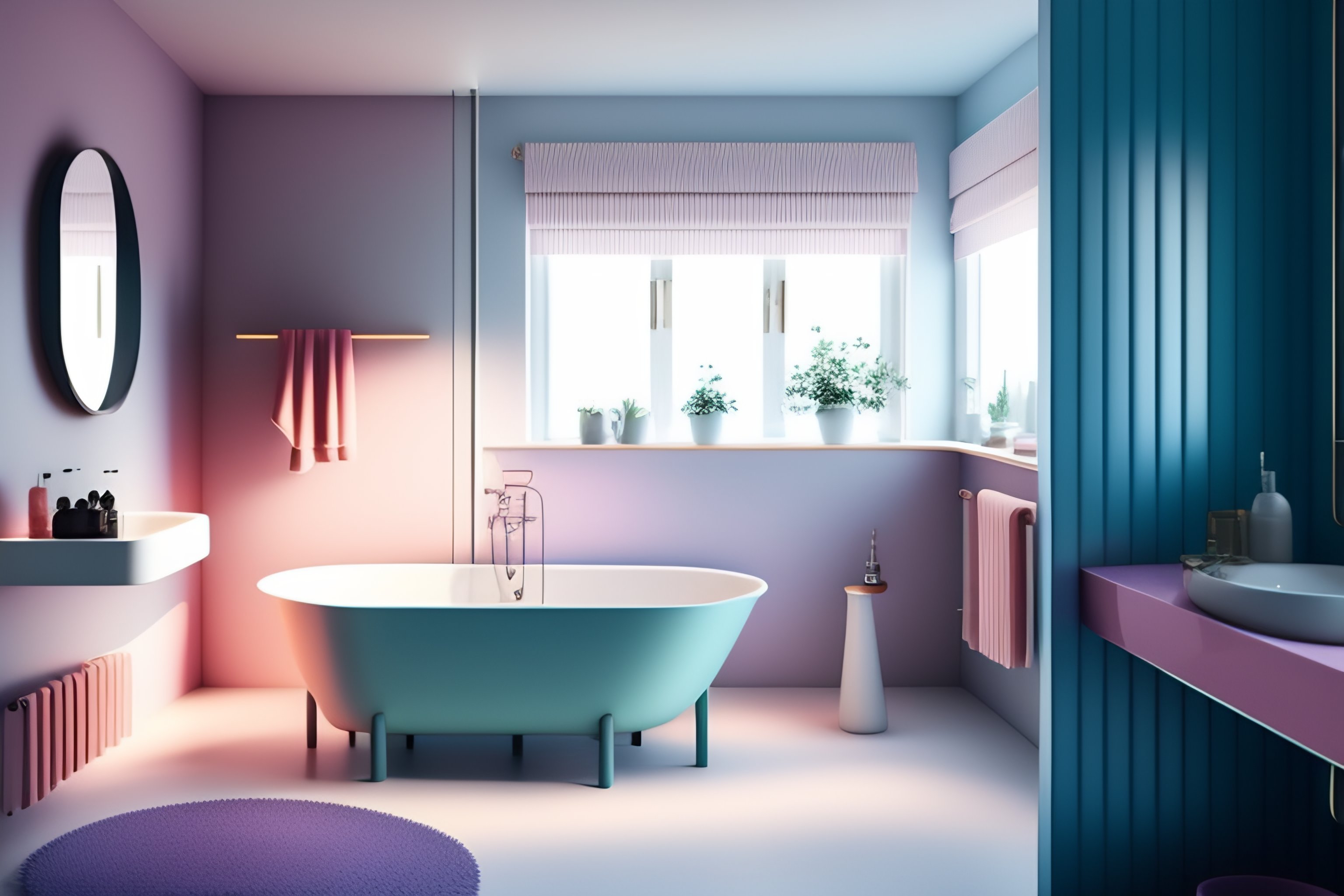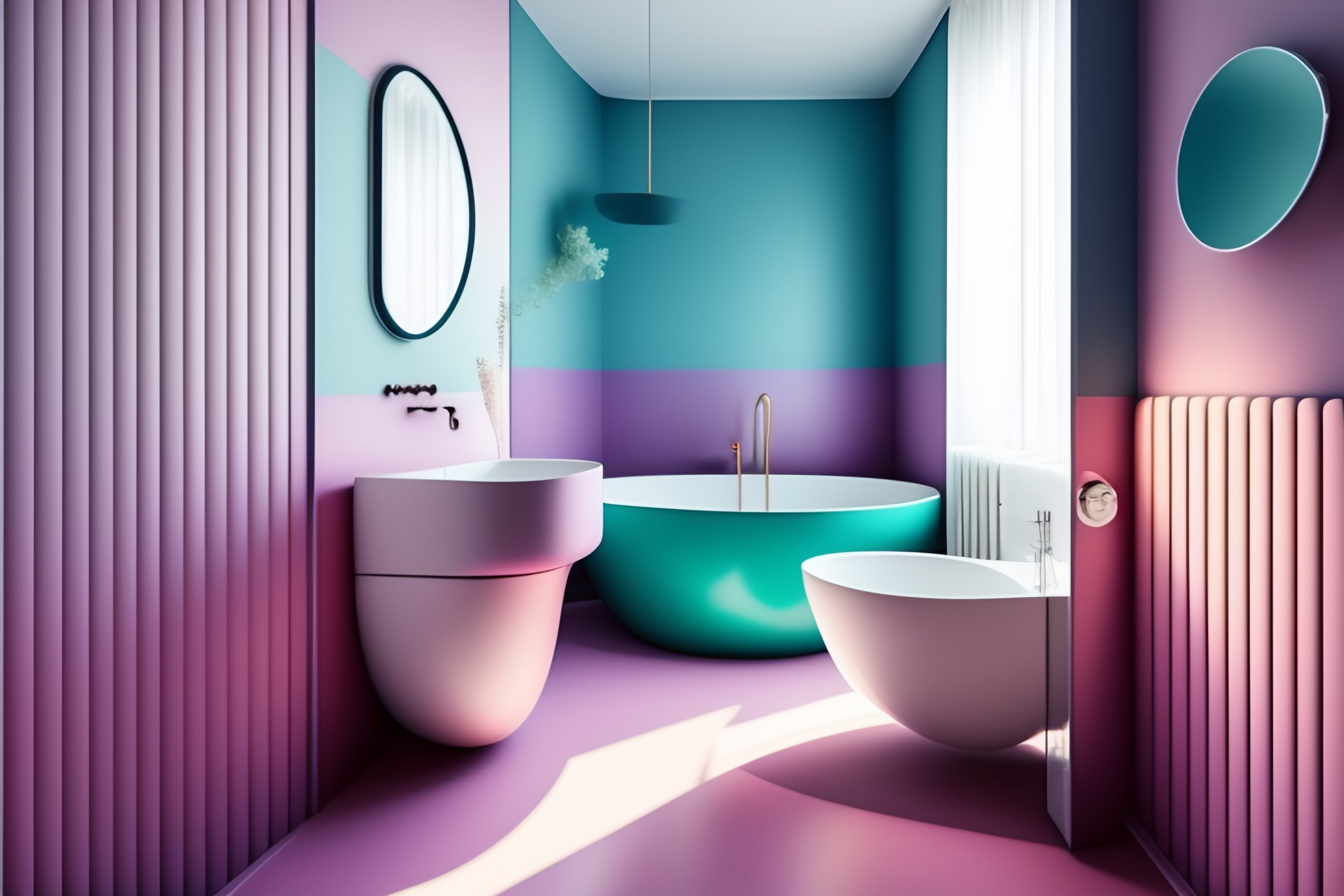 Cute retro to contemporary, the stunning interior spaces of cgi, ikea, muji, 4d, in this pastel london bathroom, high resolution