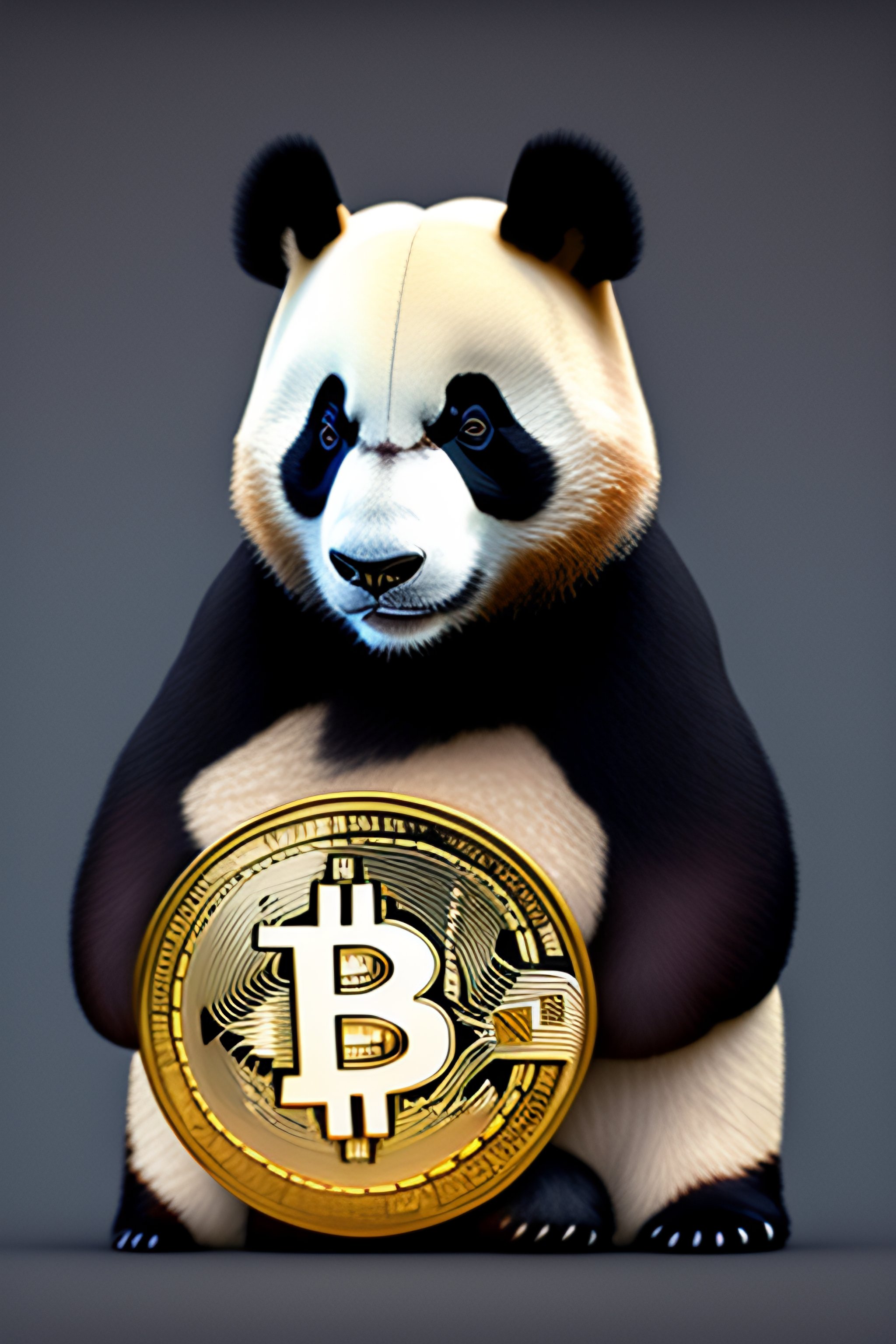 Portrait of a panda wit bitcoin eyes