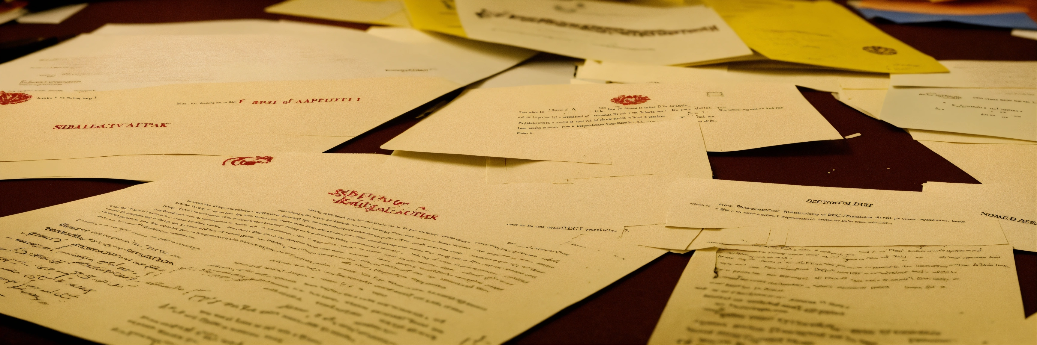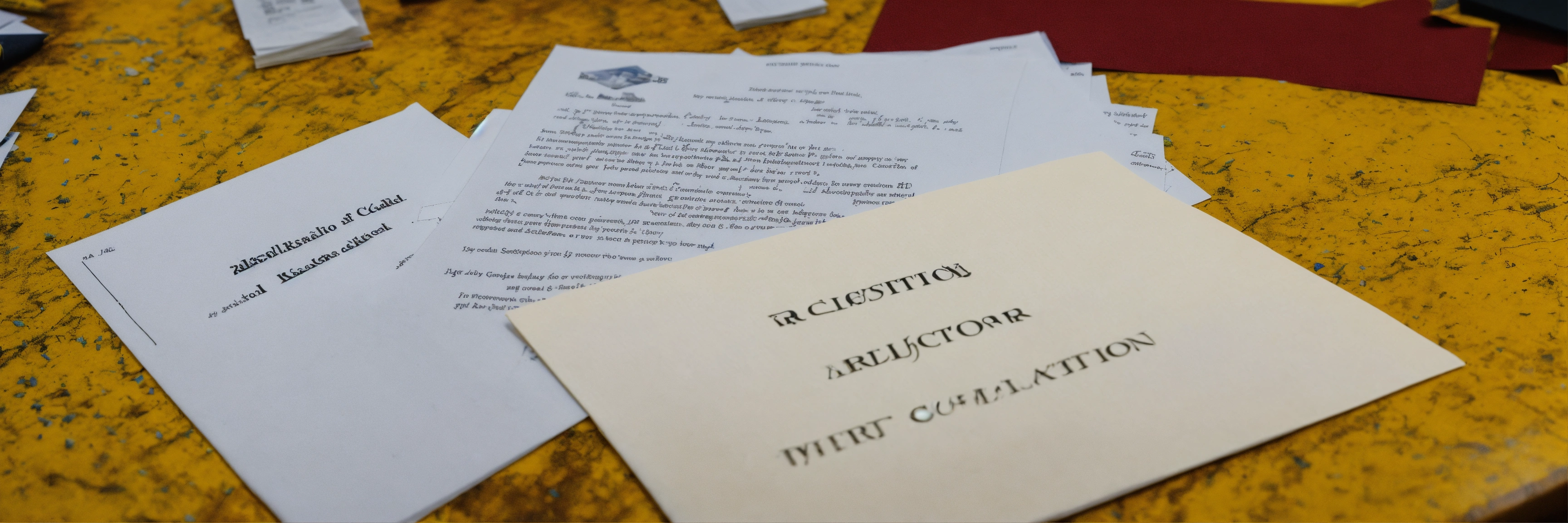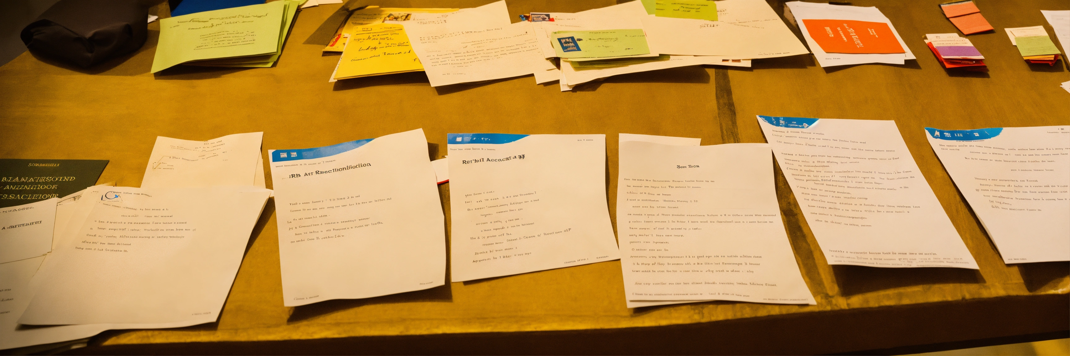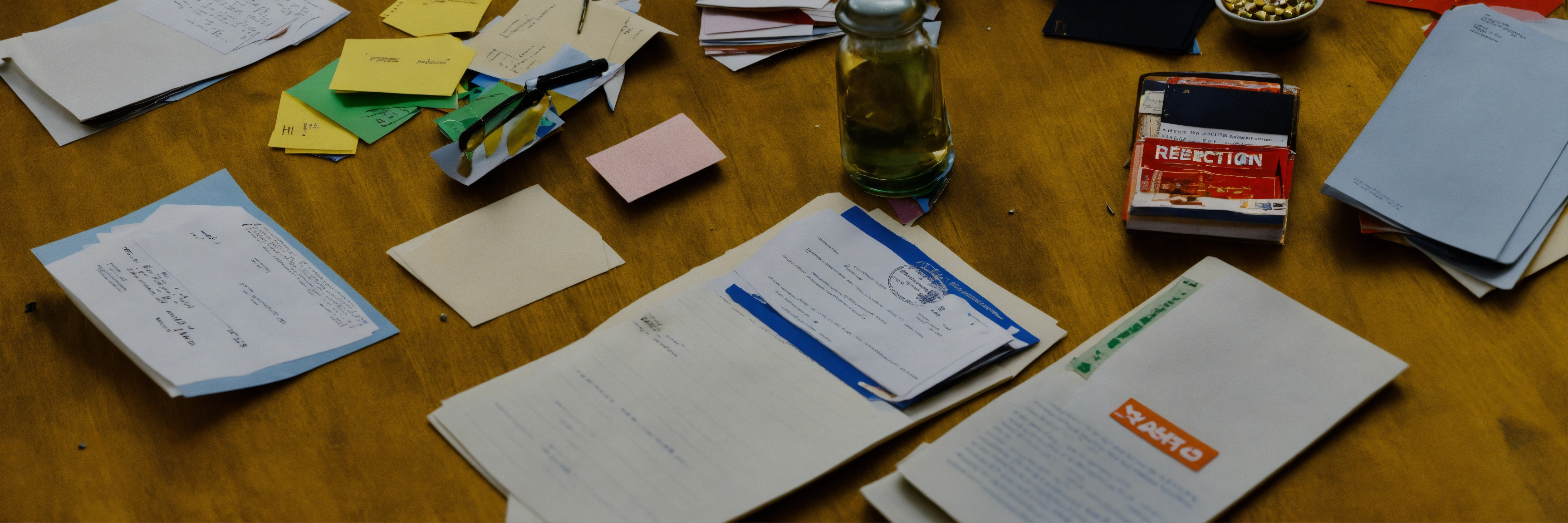 Mages of rejection letters from various scholarship applications scattered on a table, symbolizing the initial setbacks raj faced