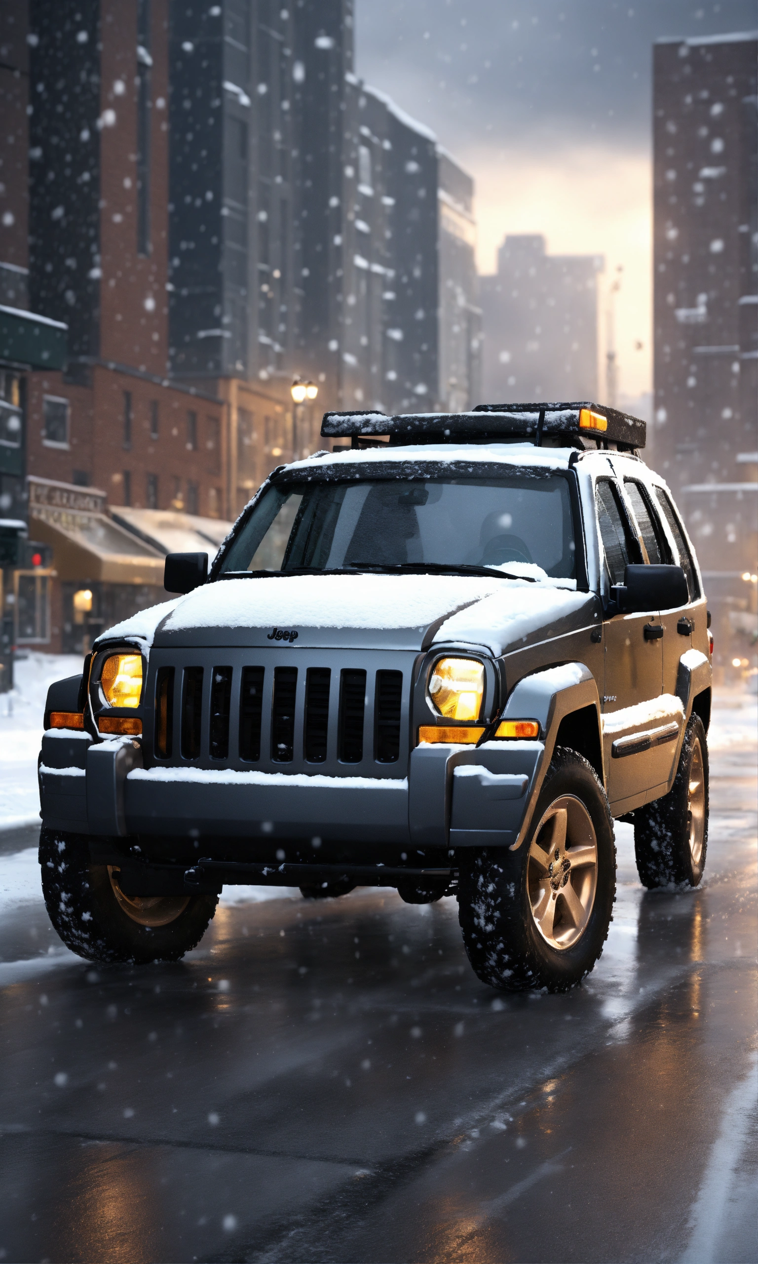 Jeep liberty 2006 with snow plow mounted on it