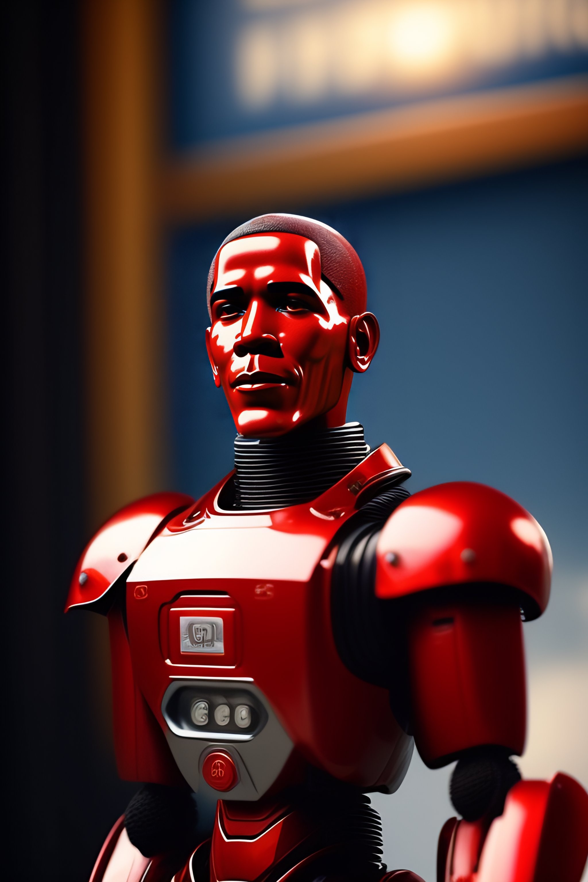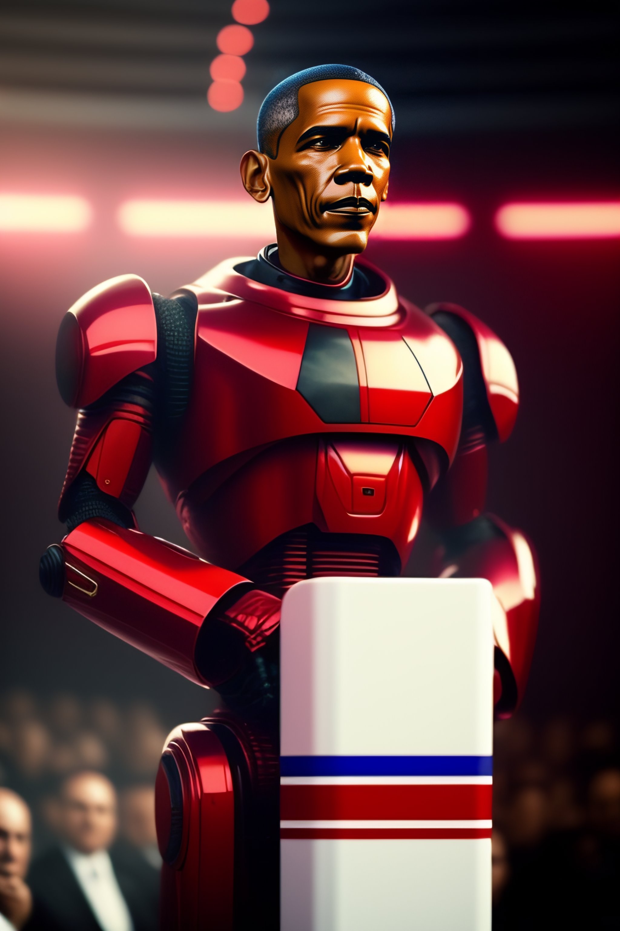 Red robot looking exactly like obama and giving a speech, you can use obama's face, give obama a turkish mustache