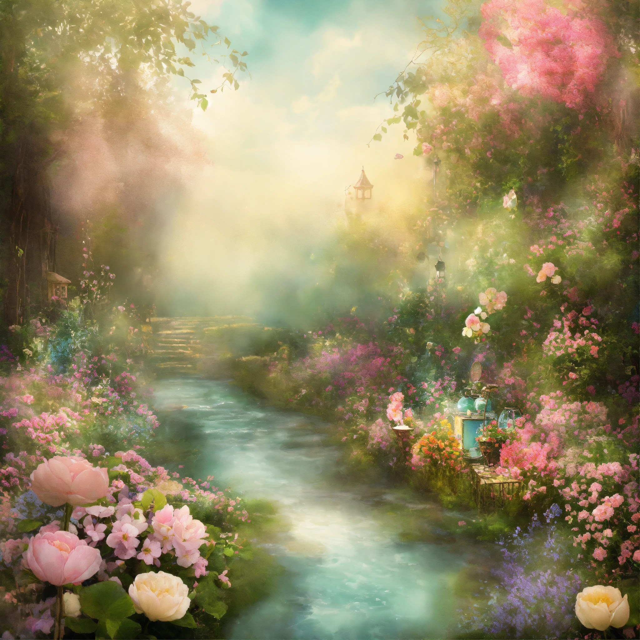 Shabby chic dreamy mist pastel junk journals secret garden swirling magical fairytale abstract art style