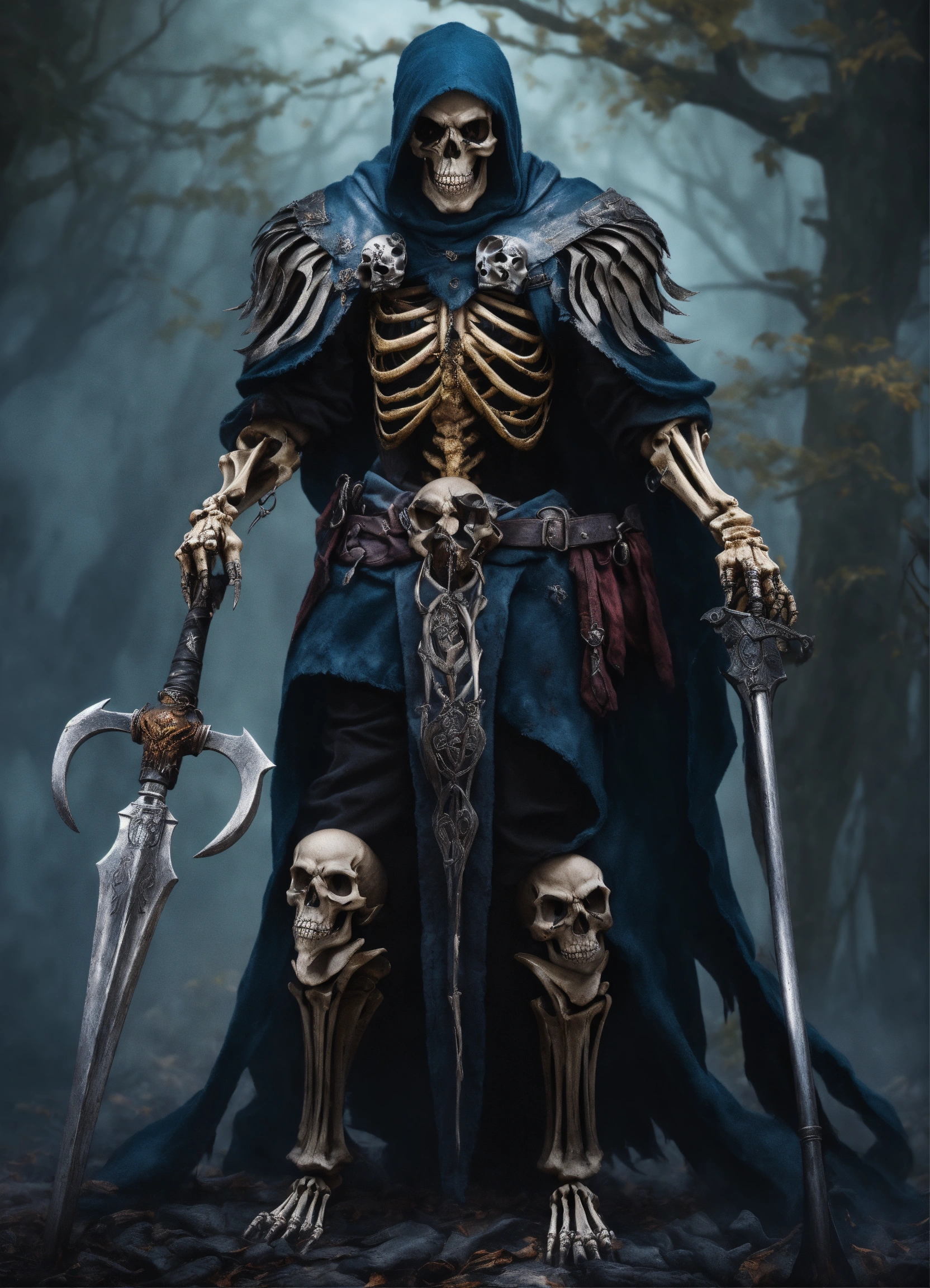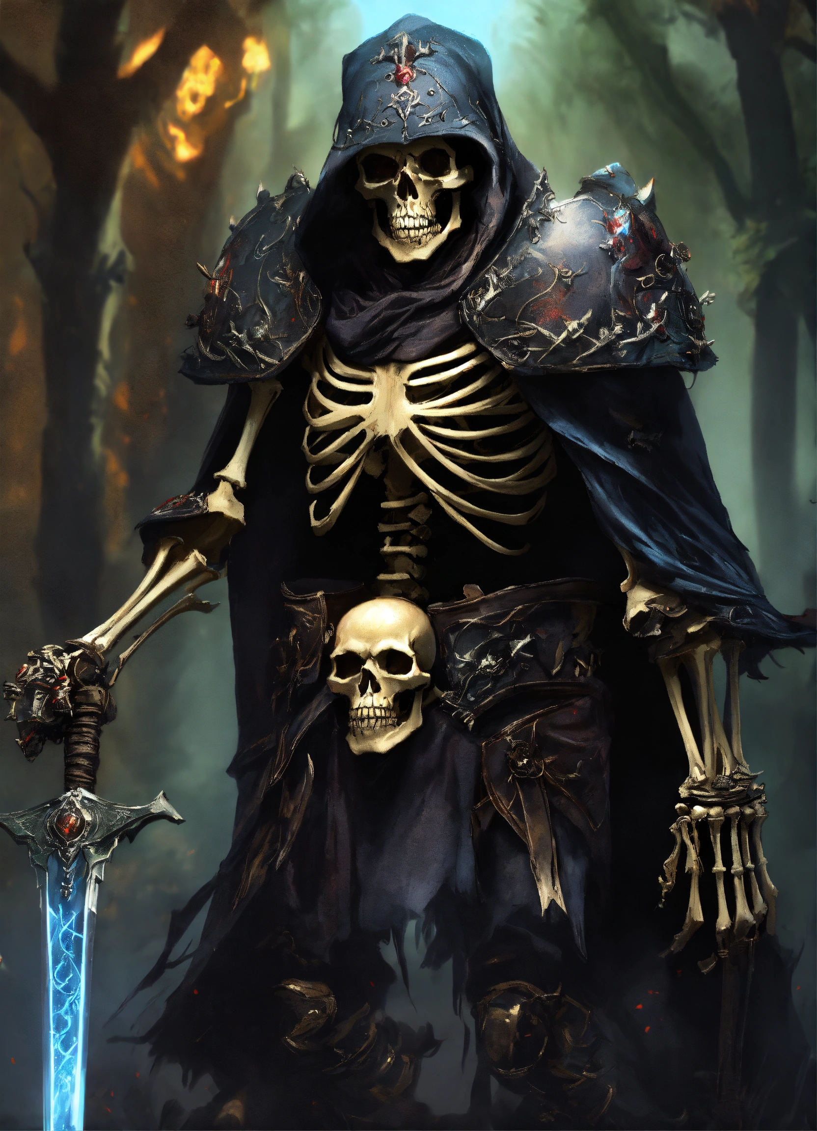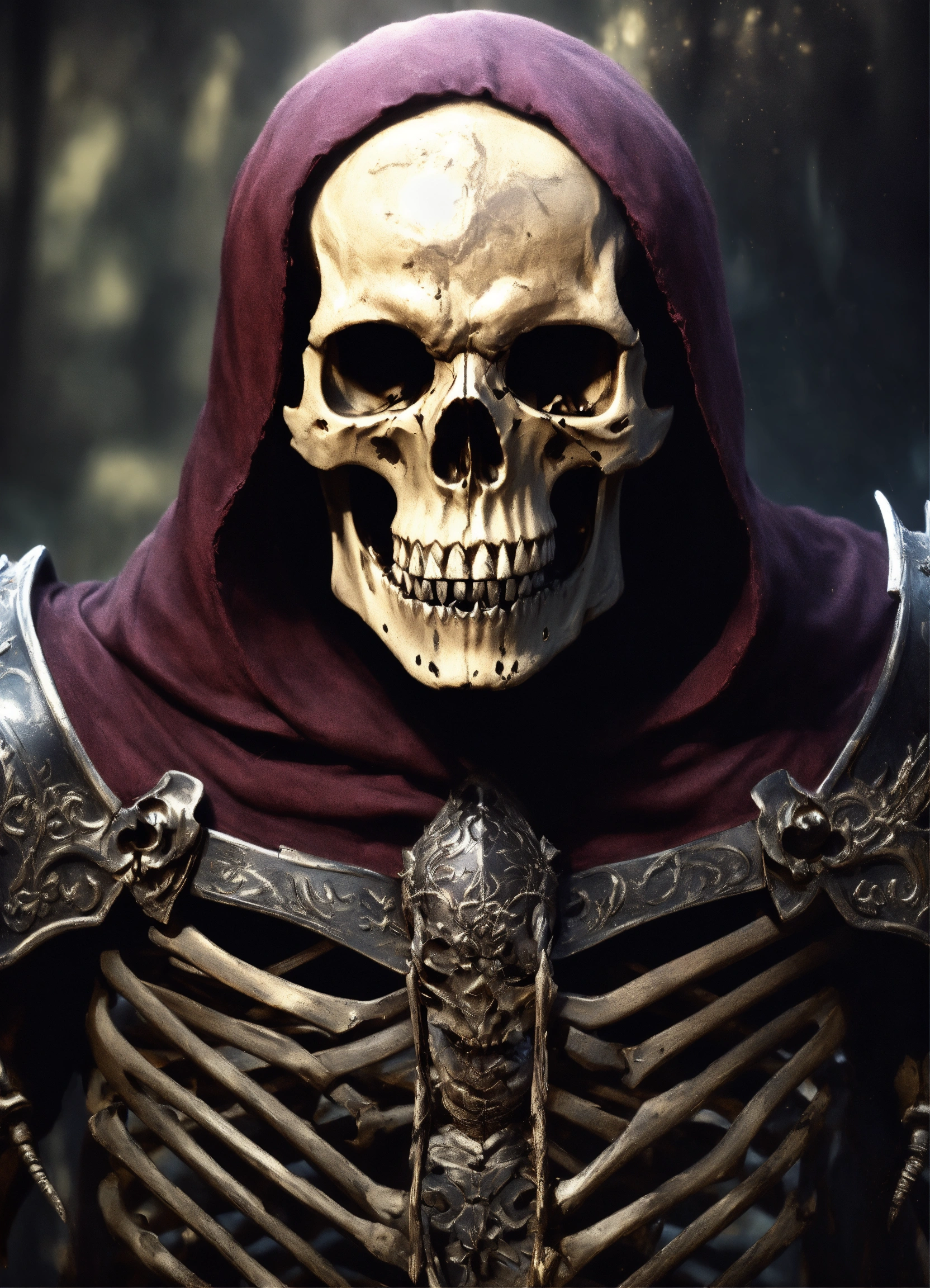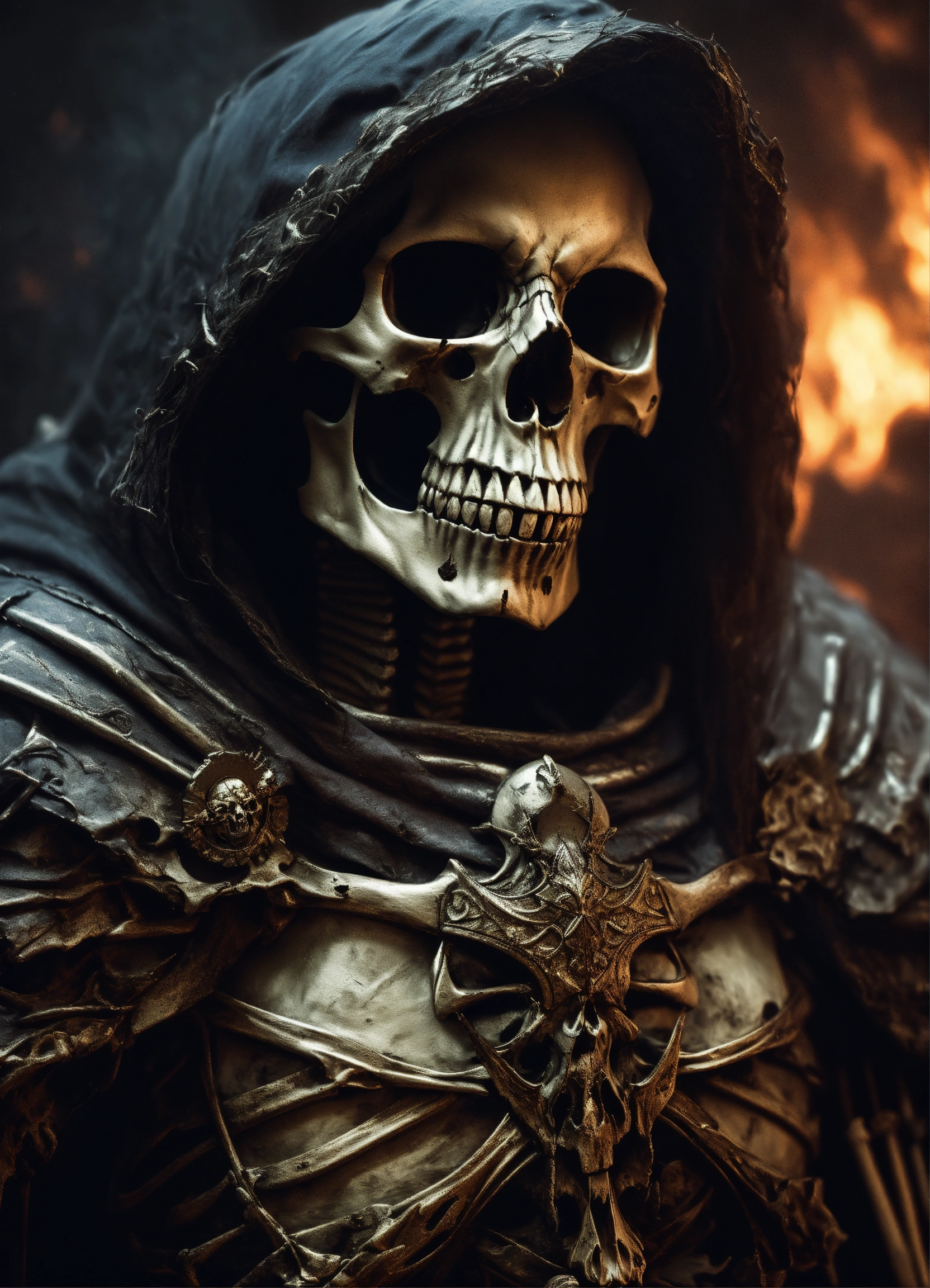 A skeletal warrior, skeleton, dark colors, magic, undead, intimidating, fierce, angry skull, lich, photorealistic, hyper realistic