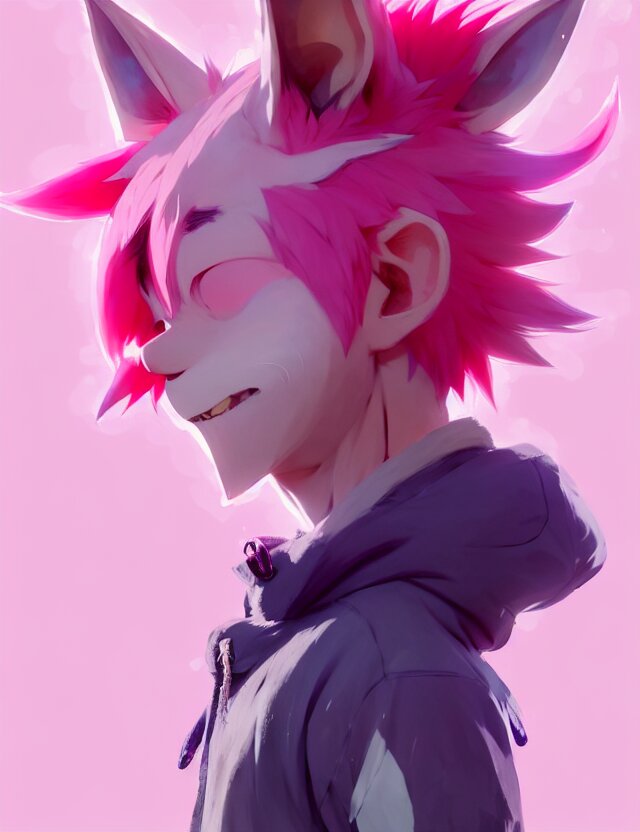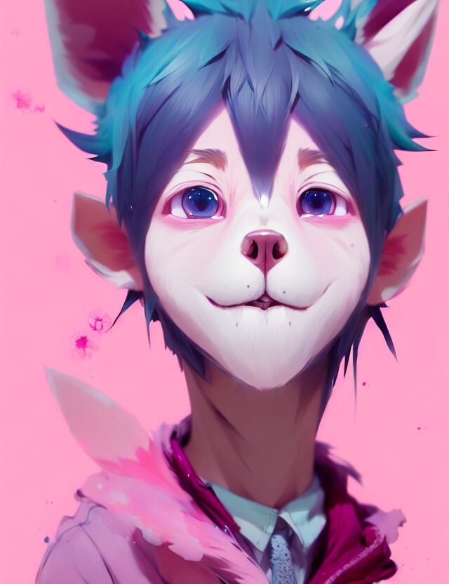 A beautiful fullbody portrait of a cute anime boy with pink hair and pink wolf ears. character design by cory loftis, fenghua zhong, ryohei hase, ismail inceoglu and ruan jia. artstation, volumetric light, detailed, photorealistic, fantasy, rendered in octane