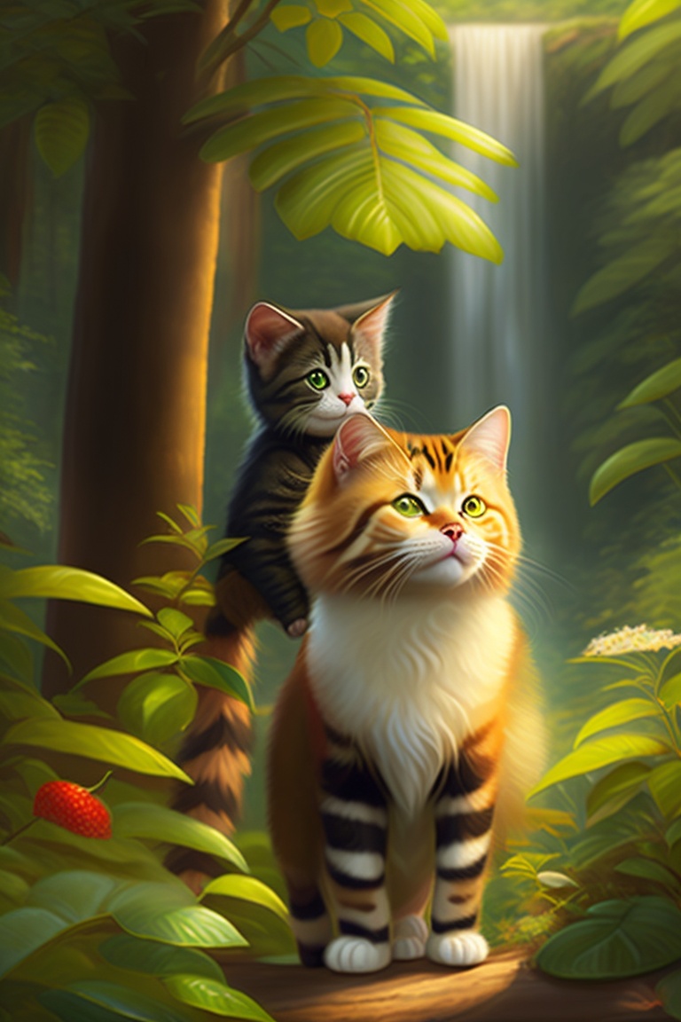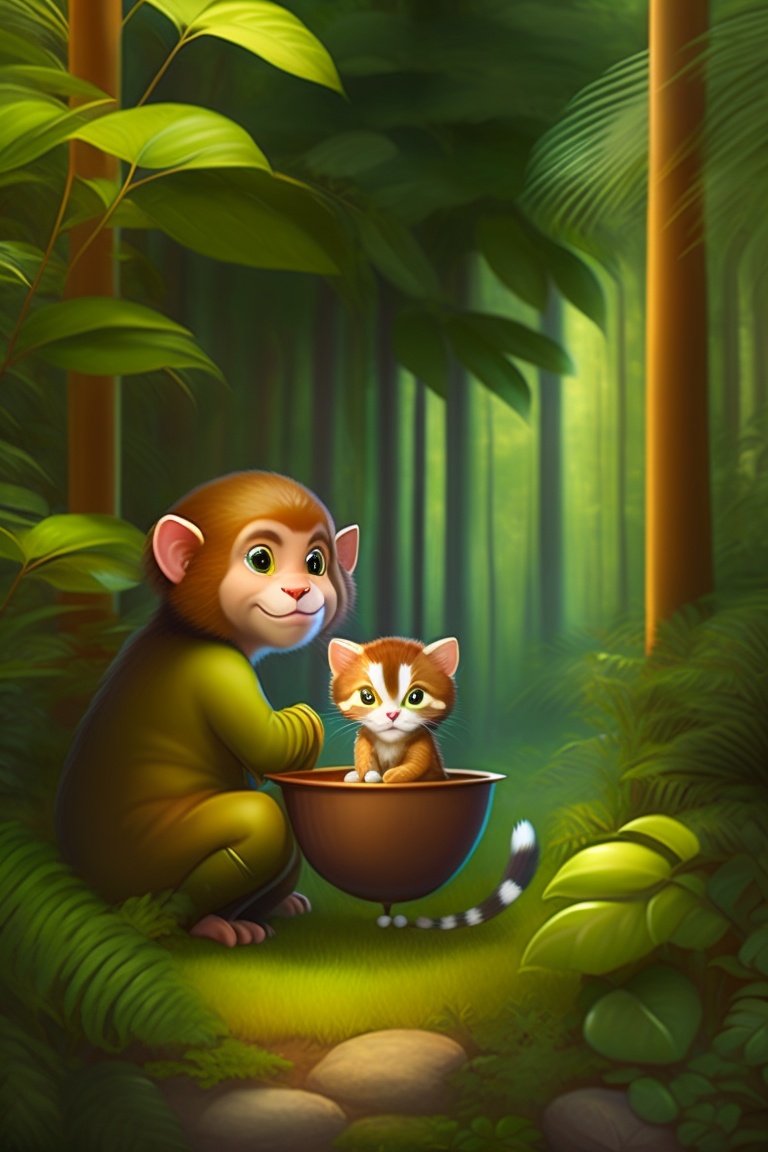 Once upon a time, in a lush green forest, there lived a curious cat named whiskers and a mischievous monkey named coco