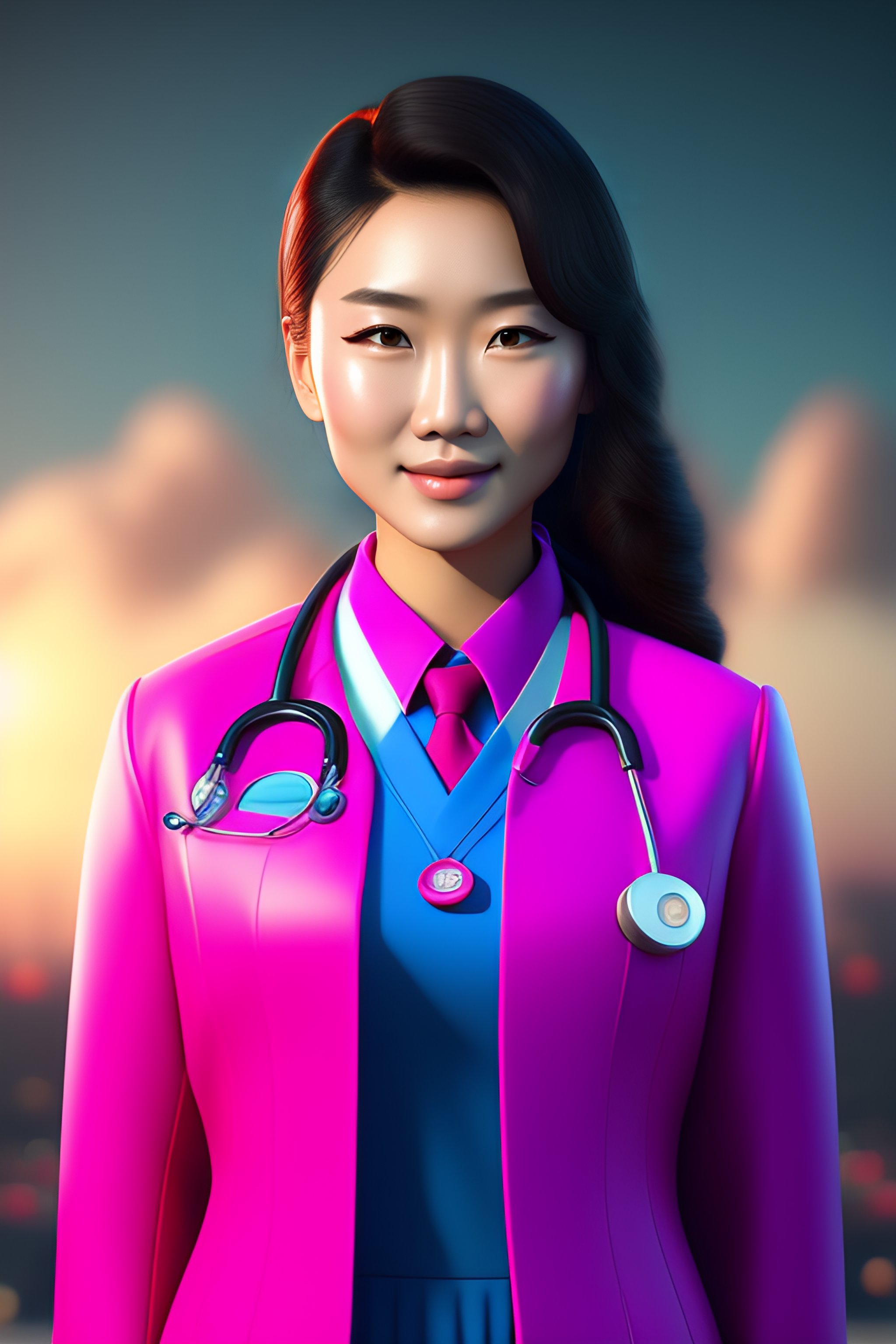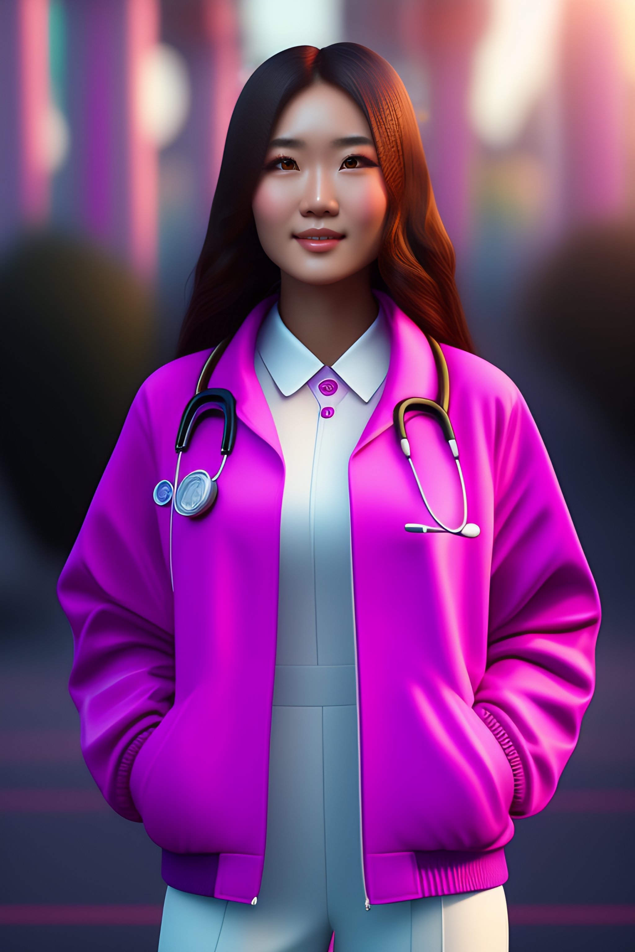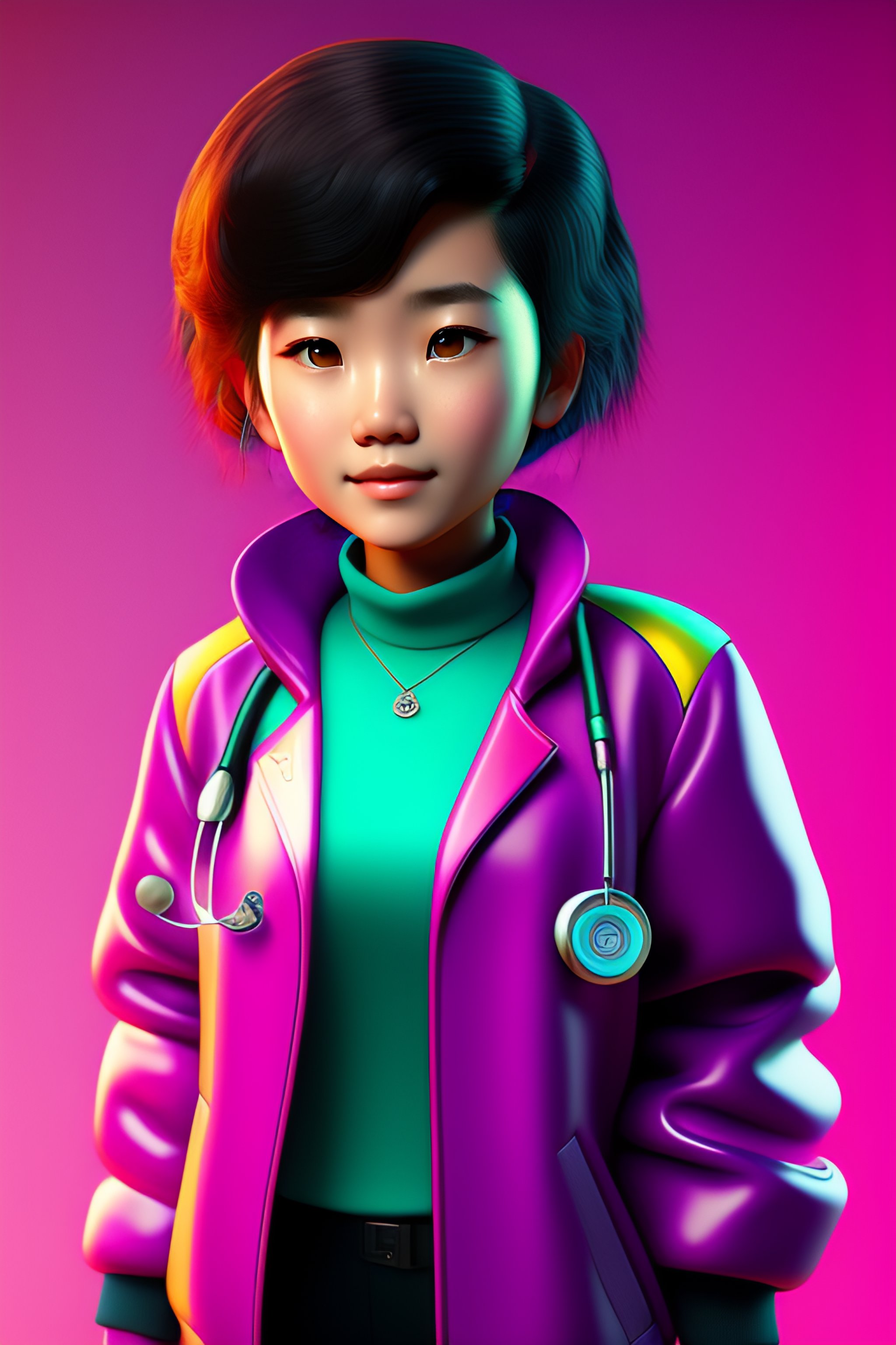 Doctor, character, pixar style, 3d style, disney style, 8k, beautiful, jacket, sports taiwan, student, high school, college, magenta