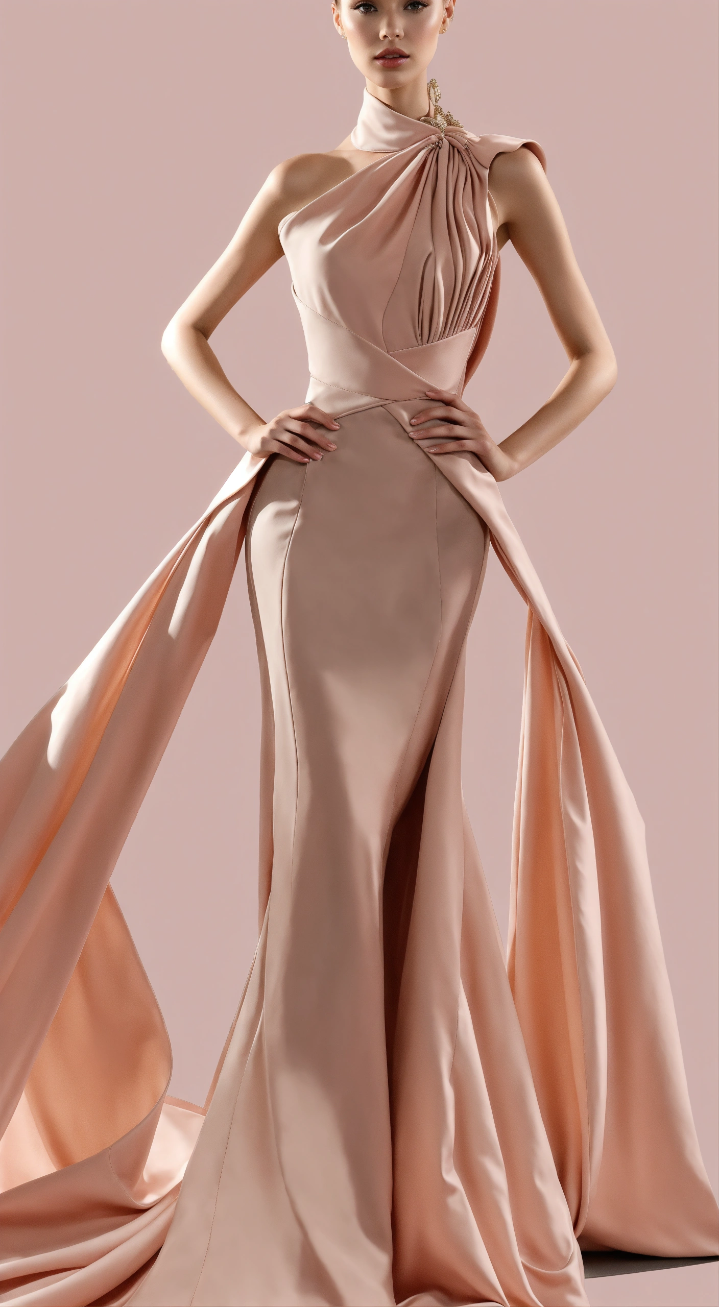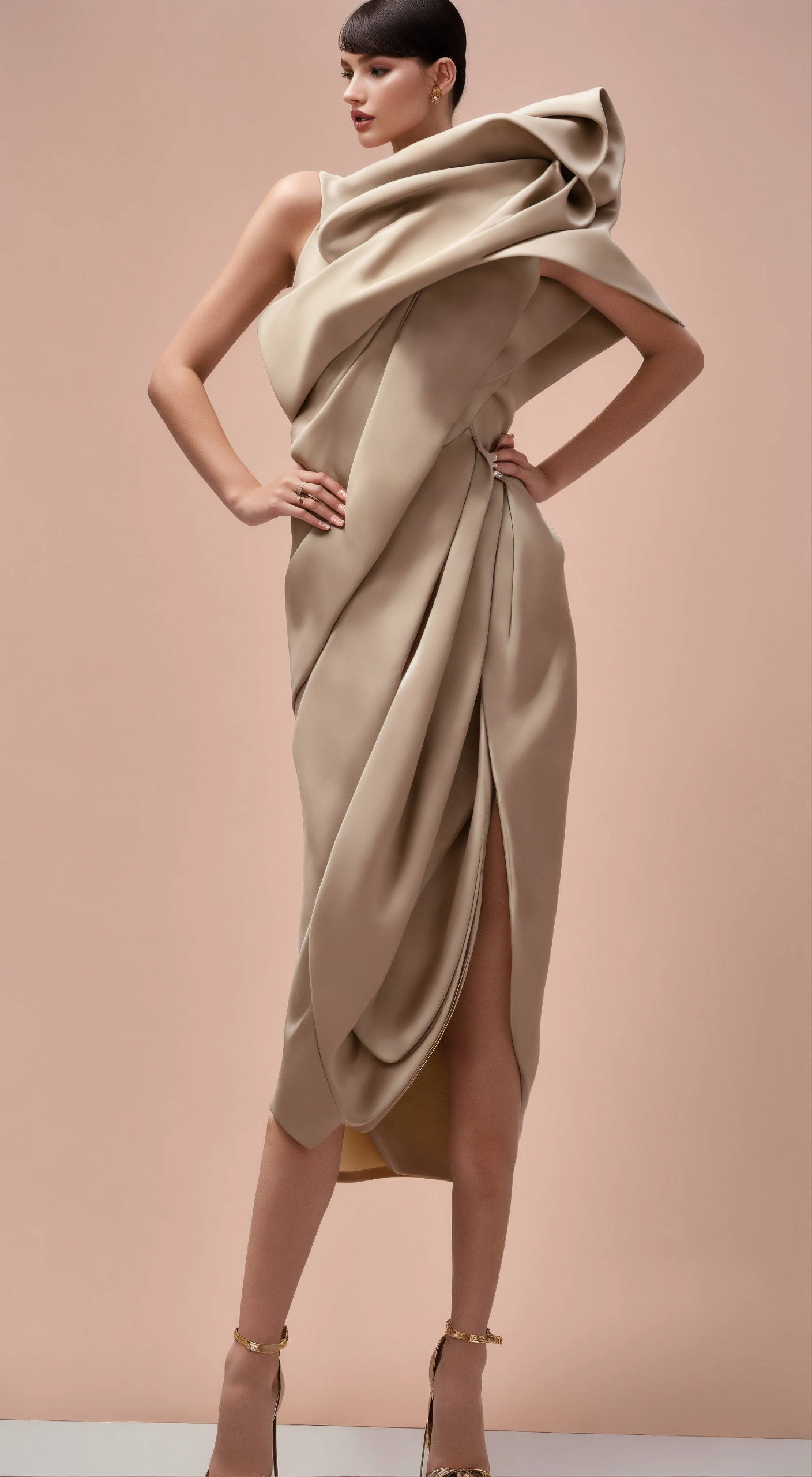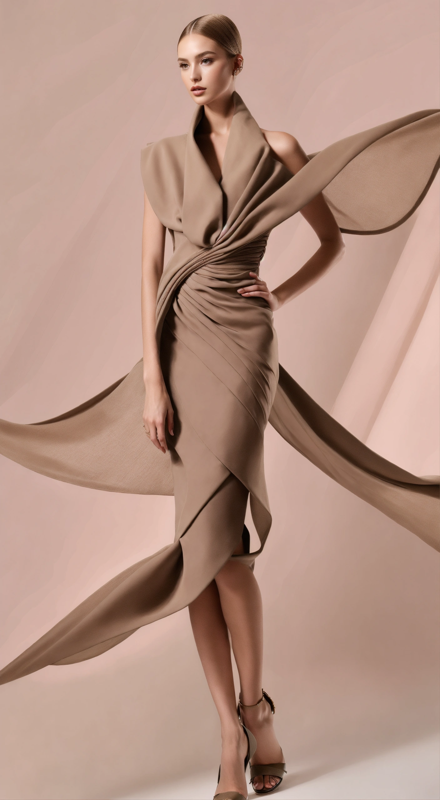Innovative haute couture fashion design wide sculptural draping neutrals colors sophisticated