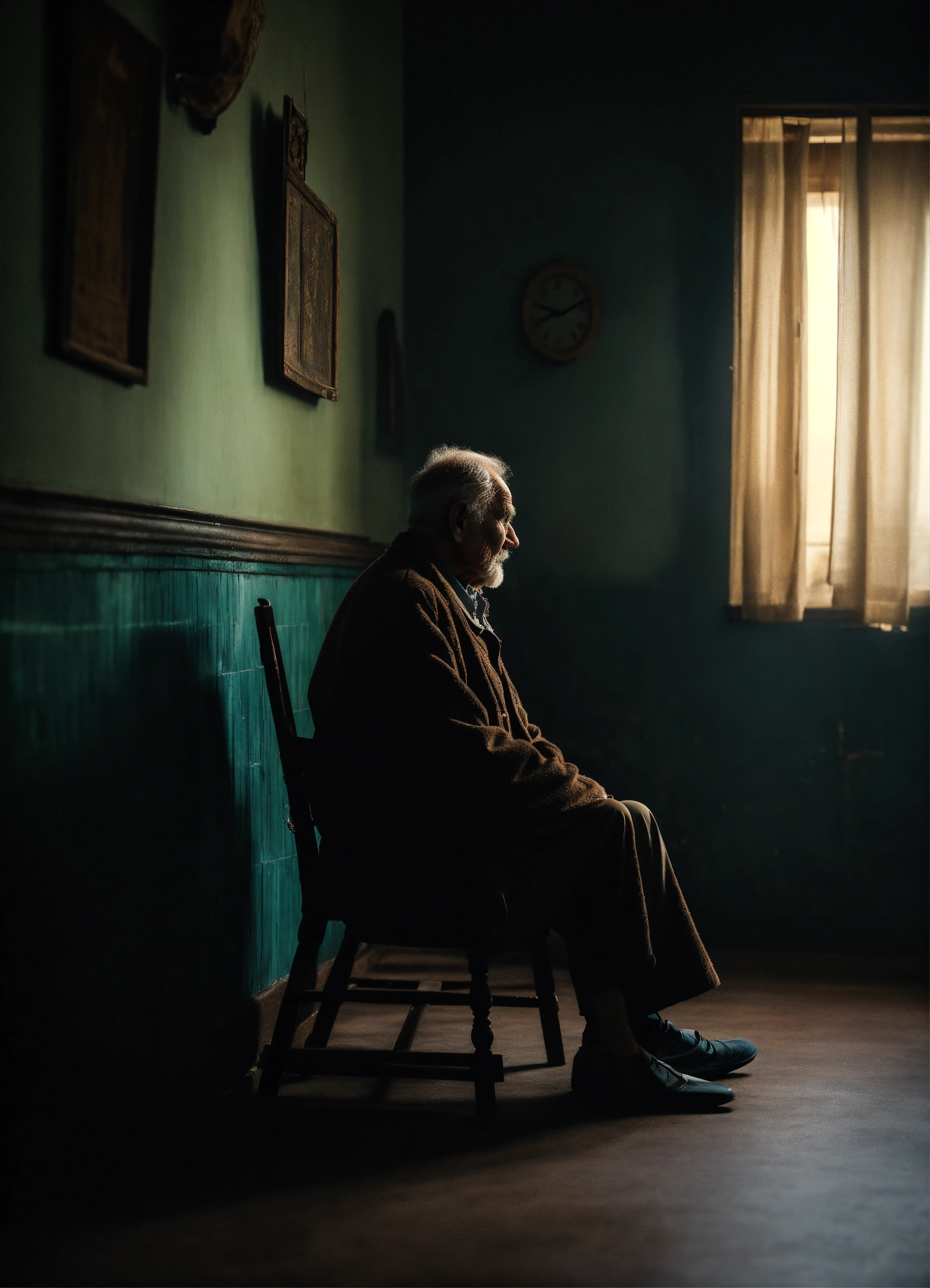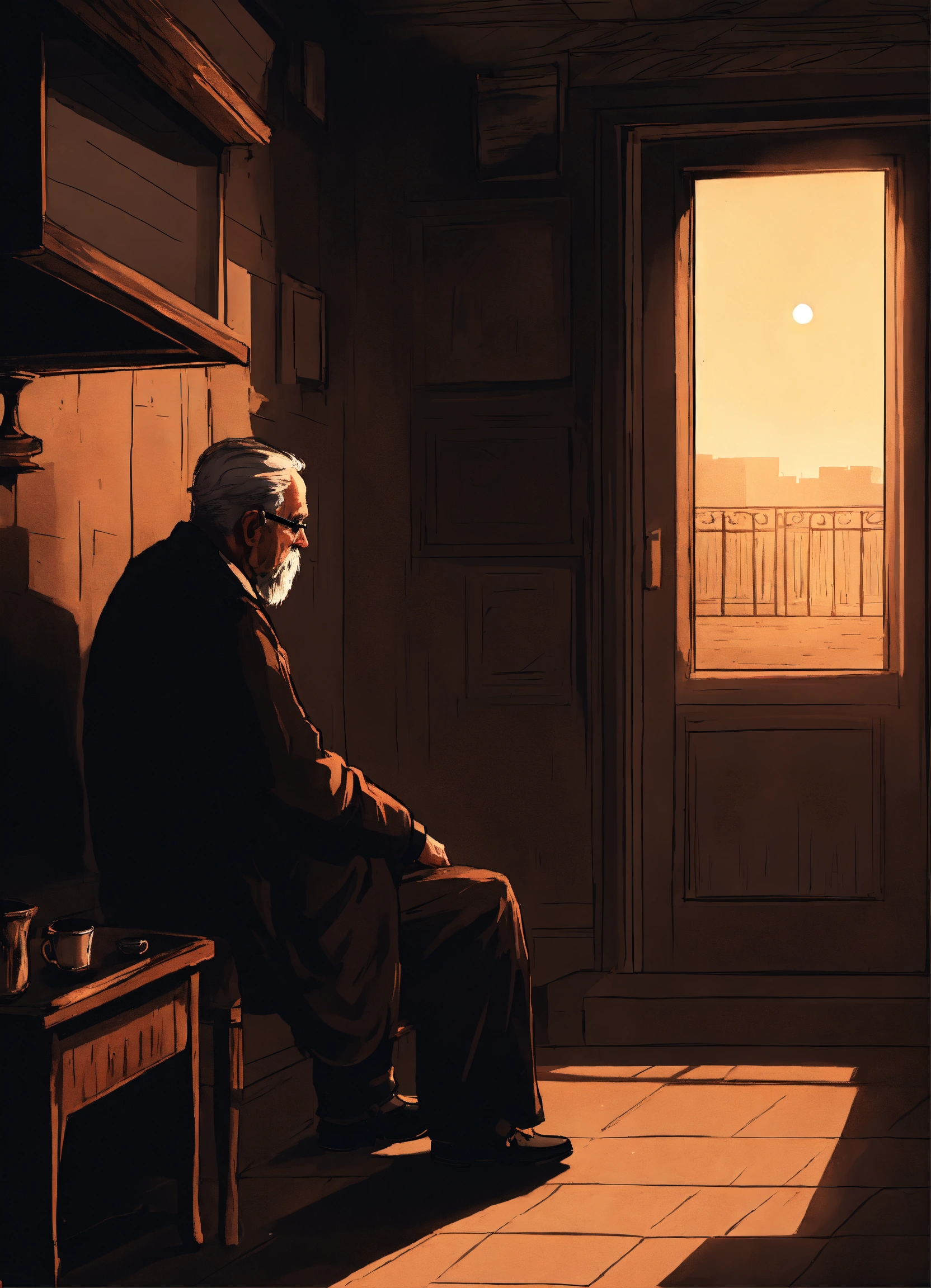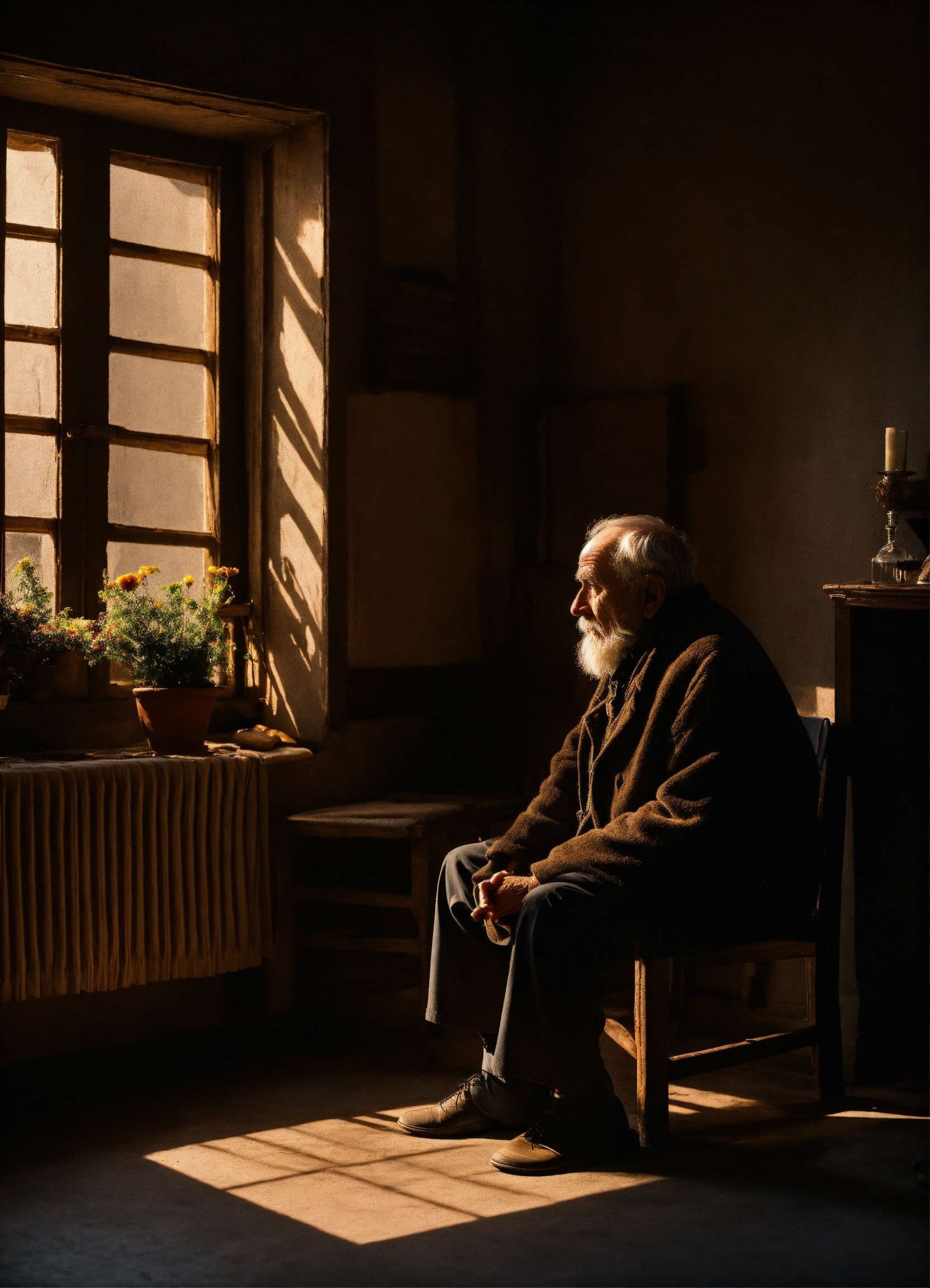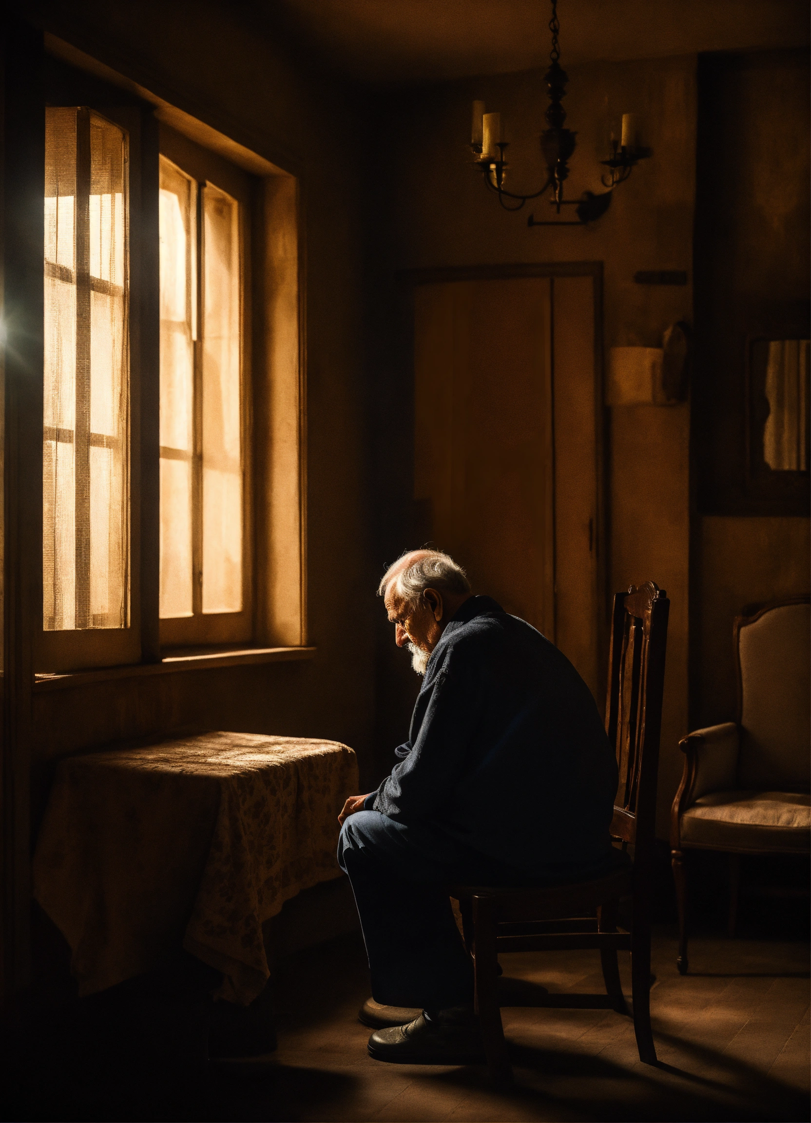 An old man sitting alone in his mysterious