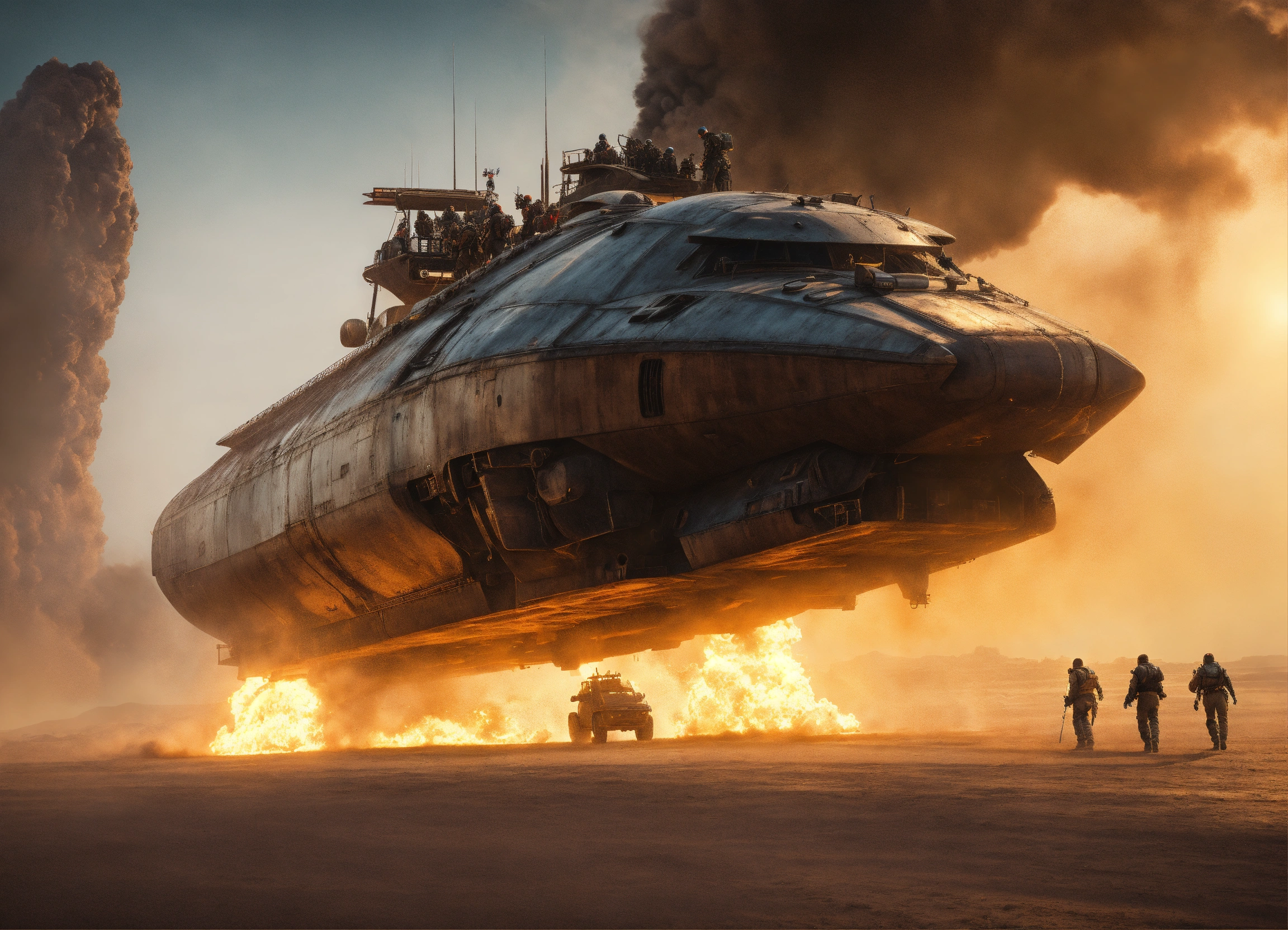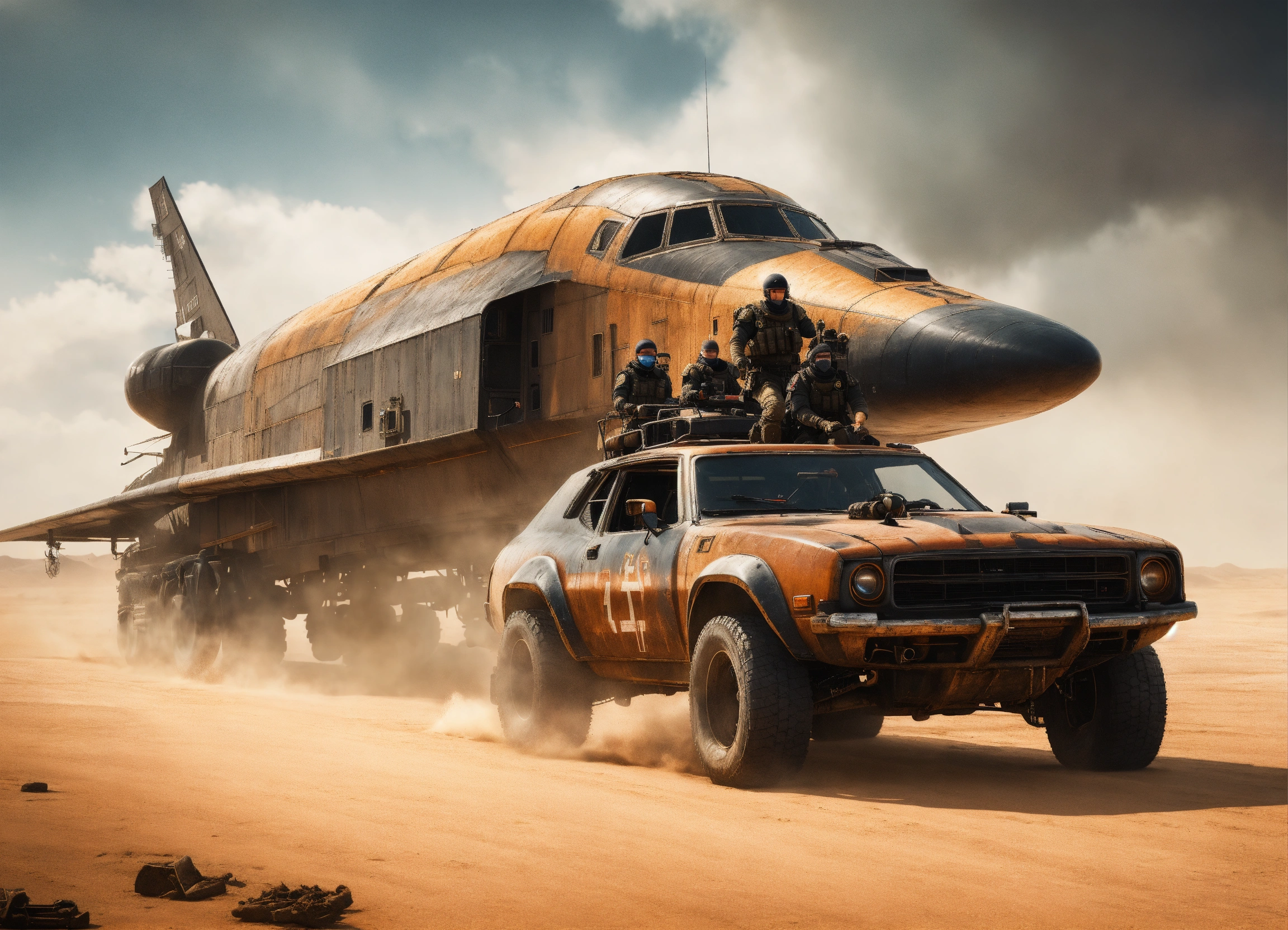 Mad max vehicles and special forces driving onto massive shuttle ship, trending on artstation, battle cinematic realism, rogue bobofet style shuttle station arrival