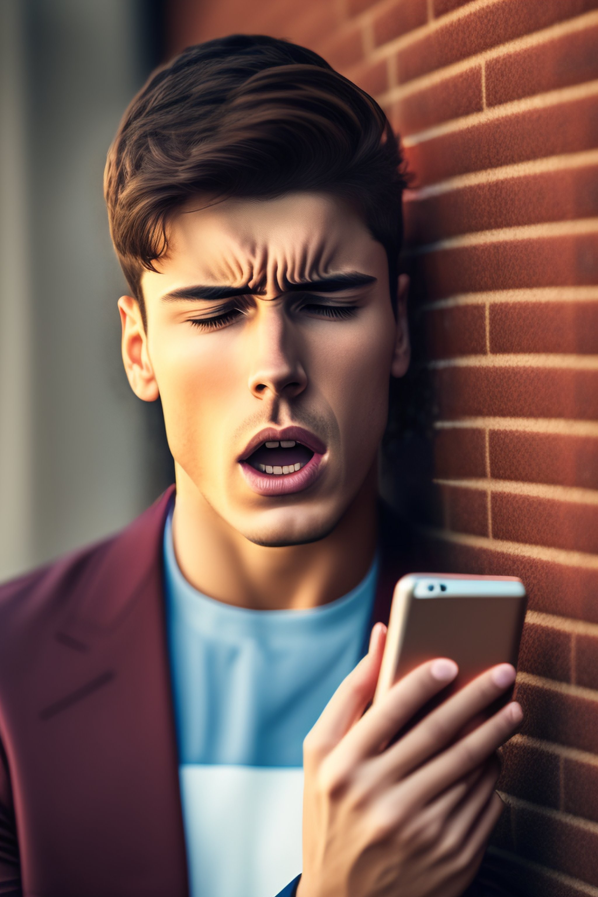 A young man frustrated with his phone