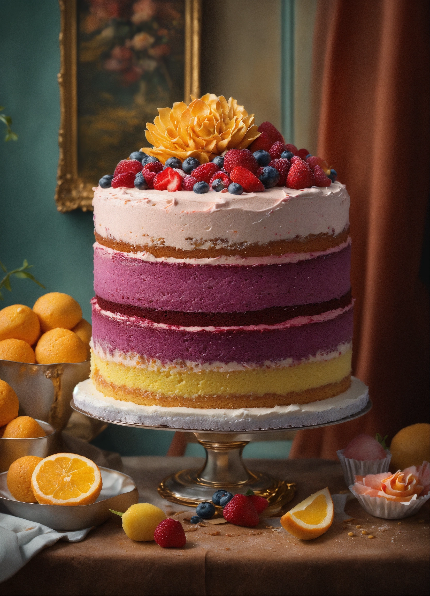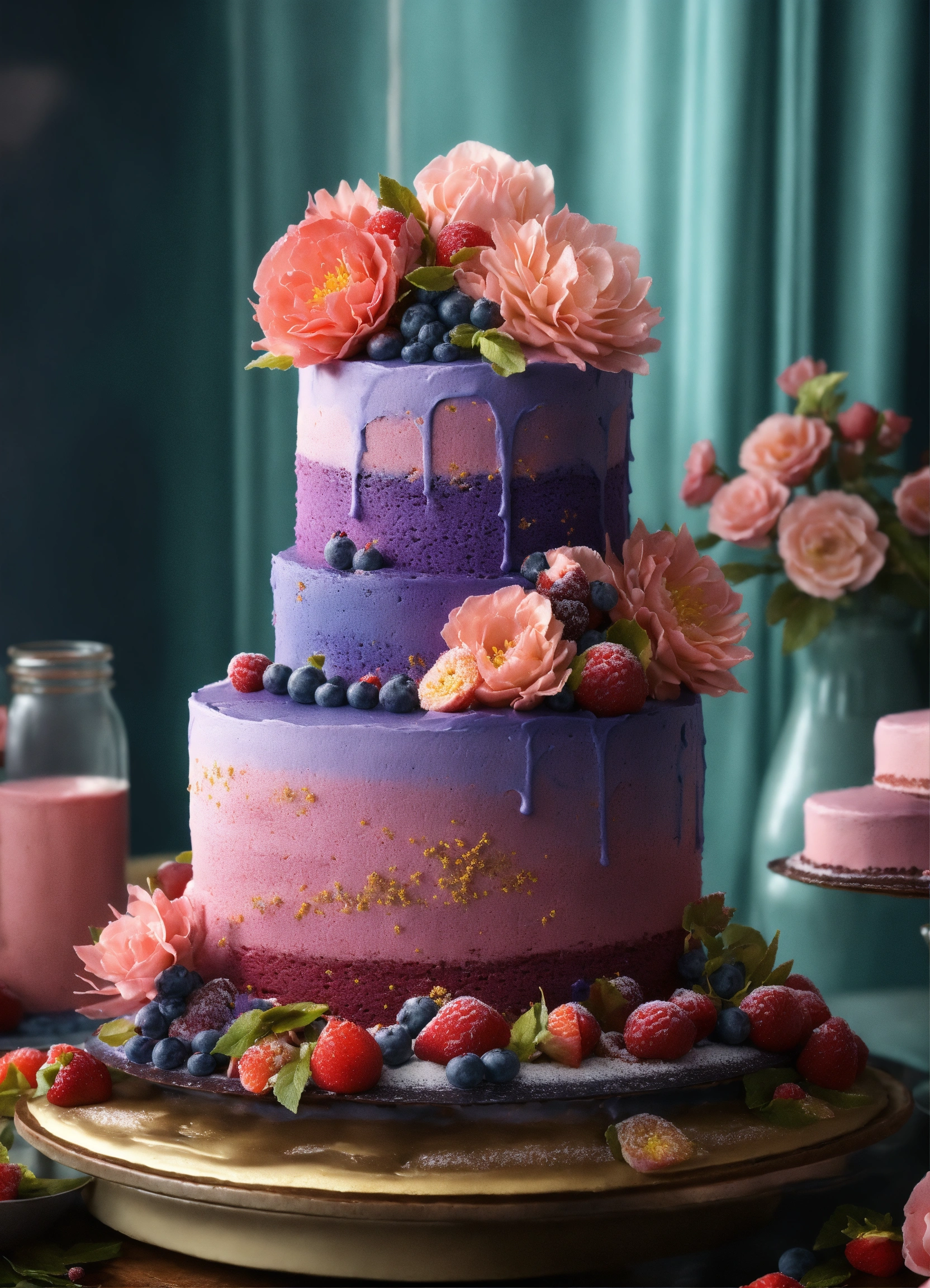 Fabulous beautiful cakes, rich colours, realistic photo, high detail, digital painting, cinematic, stunning, hyper-realistic, sharp focus, high resolution 8k, insanely detailed