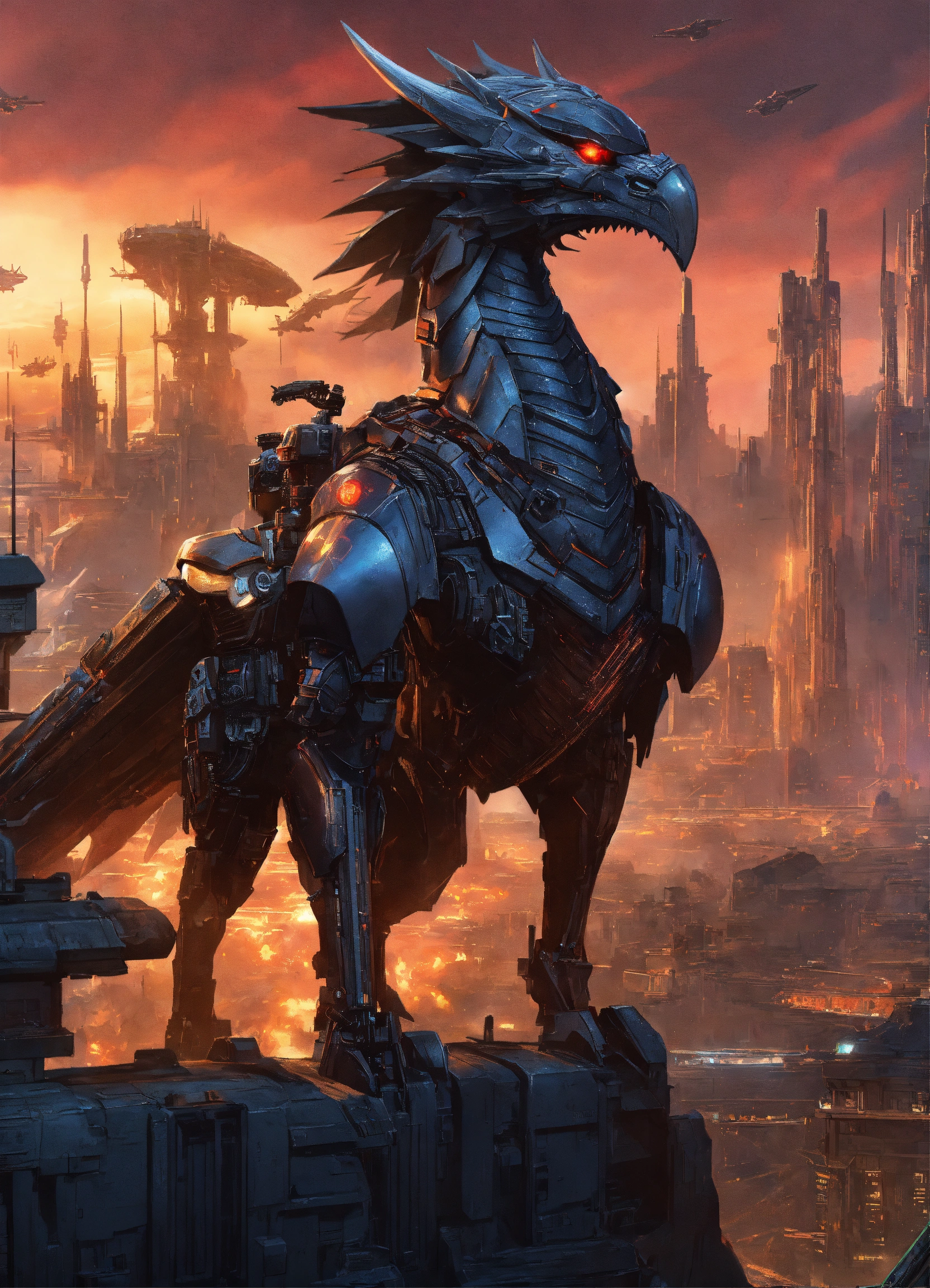 Dragon hybrid mutated male & female werewolves\raven batman, dracula, vampire, superhero athletic cyborg men & women in 60th century dragon-like muscular humanoid in full body armor scenes or mega future blade runner cities scenarios holding 5965 a.d. advanced star wars blasters, laser rifles & ancient looking h. r. giger-like gears of war-like big gun weapons in a photo of a quetzal armored figure fighting on a detailed advanced futuristic civilized back-drop densely or heavily populated worlds with metallic chrome wolf & raven vampire dragons on land & in space vs rom the space knight, battlestar galactica meta-hybrid cylons vs alien cyborg kaiju space predators in style of laurie greasley, studio ghibli, akira, kryptonian, galvatron movie version, tomiyama, gene roddenberry, george lucas, james gilliard, genshin impact, pixiv fanbox, acrylic palette light sabers, 4k, chrome, vibrant colors, deviantart, trending on artstation, rendered in highly detailed cinematic studio quality gci