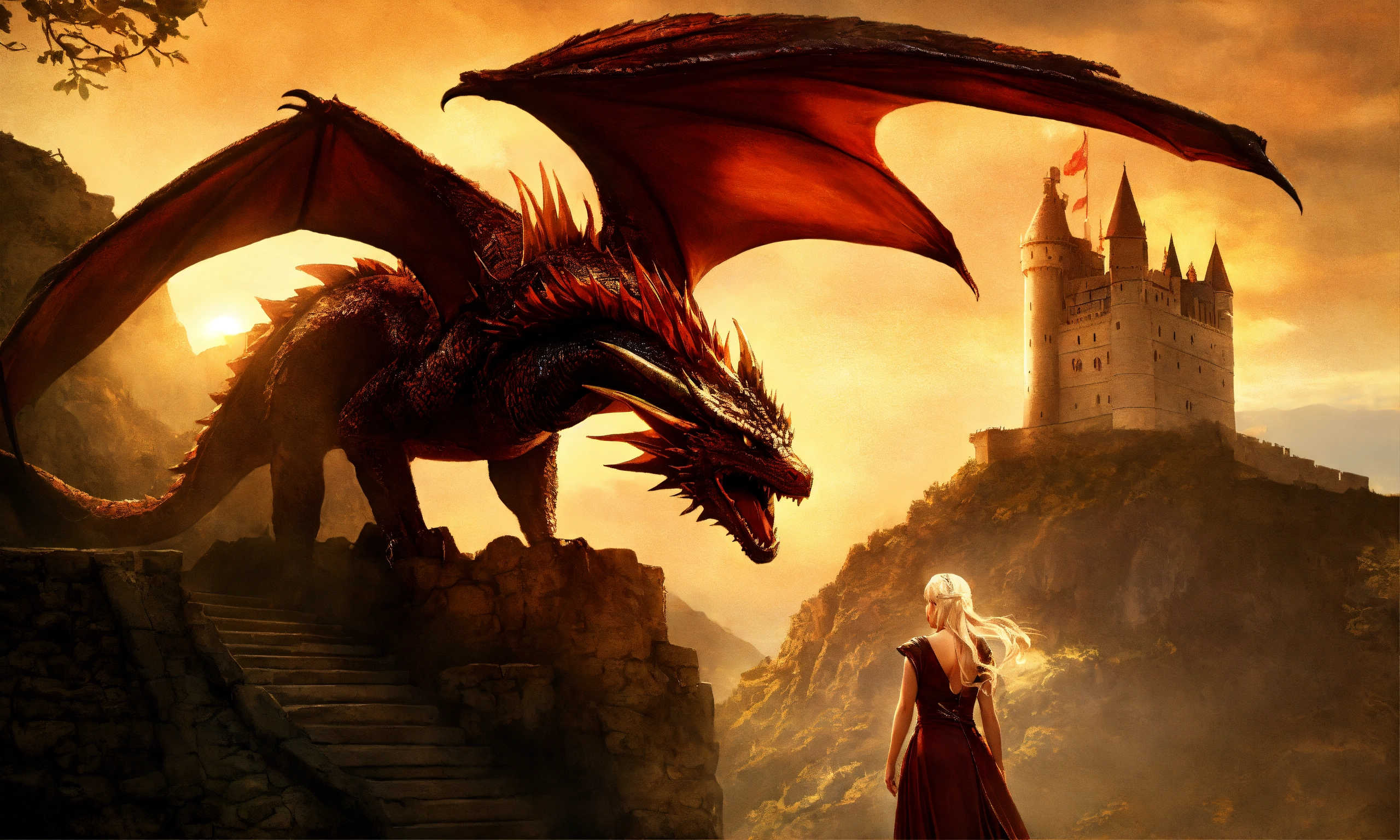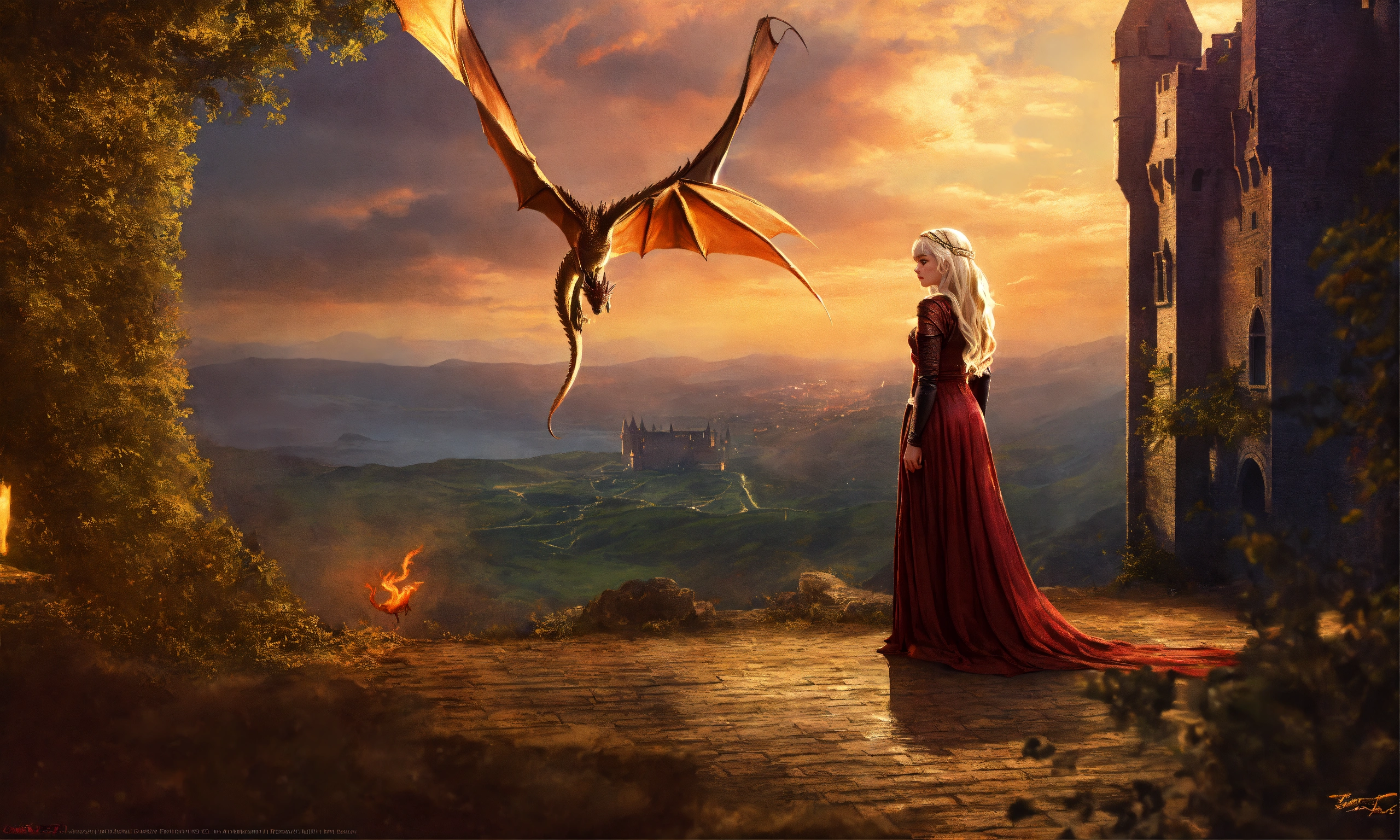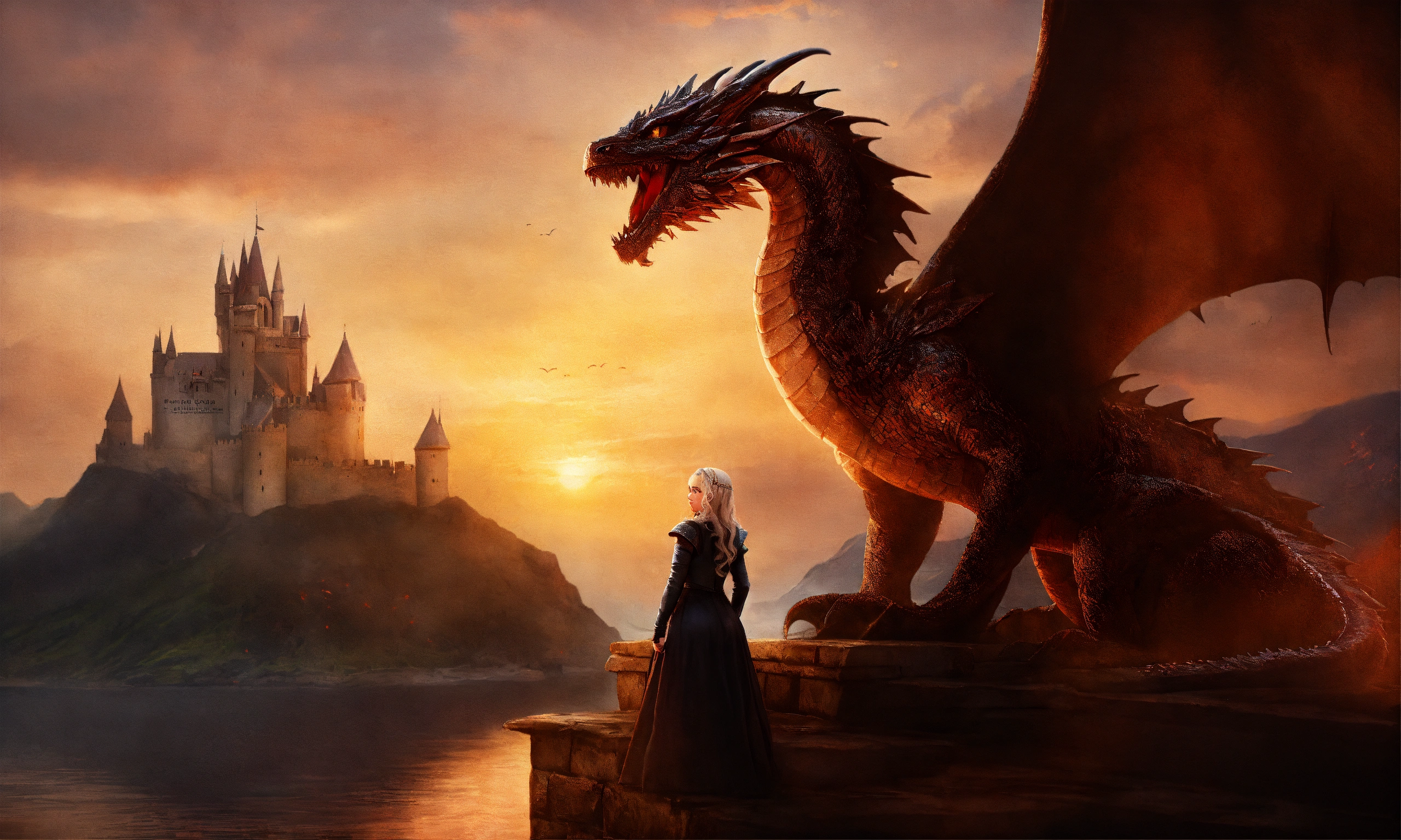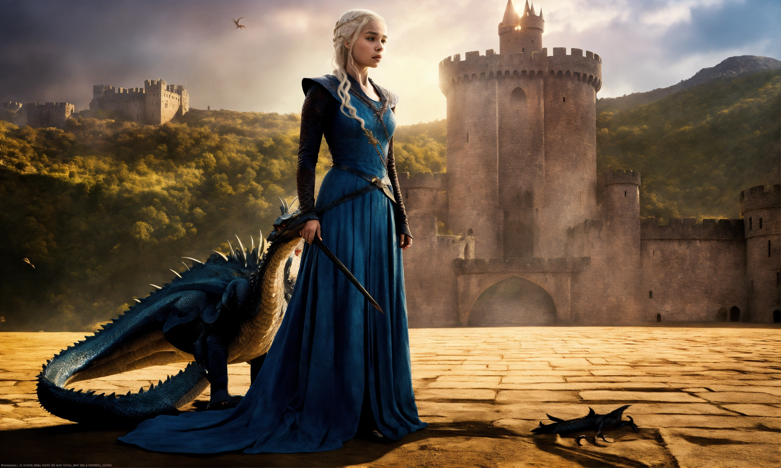 Daenerys targaryen with a dragon in the castle digital art