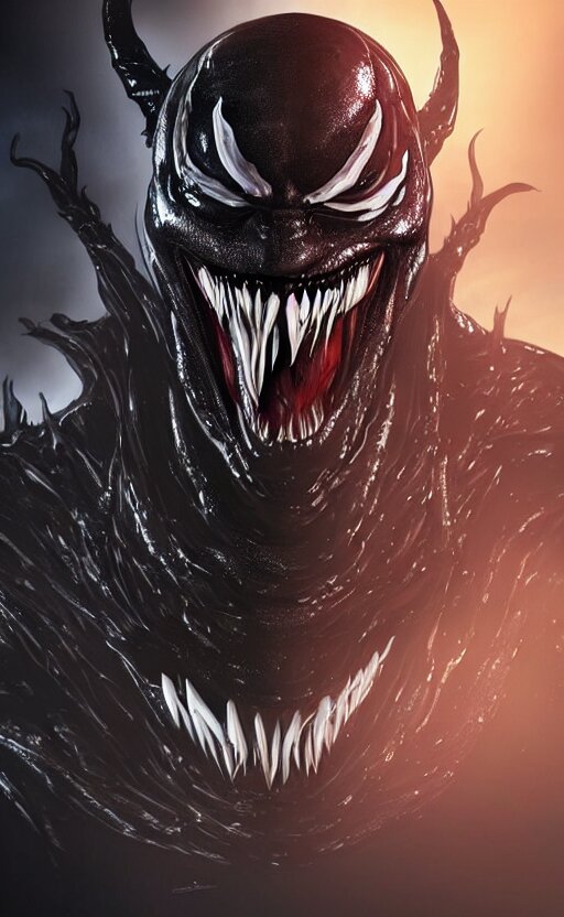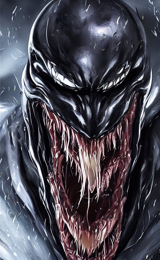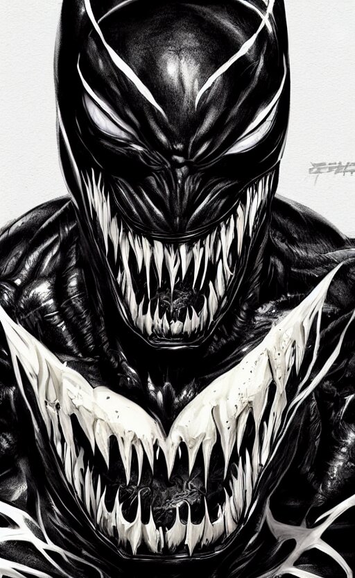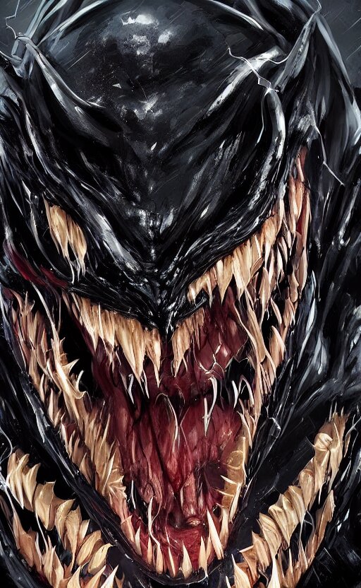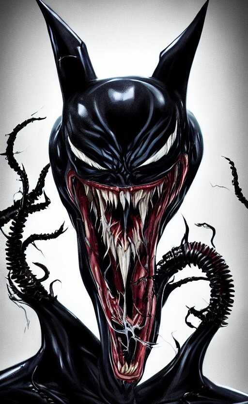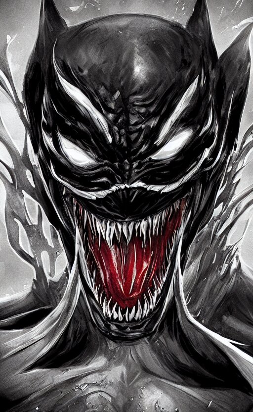 Venom combined with batman, venomized, creepy art, hyperrealistic art, digital art, cinematographic, concept art, artstation, 8 k