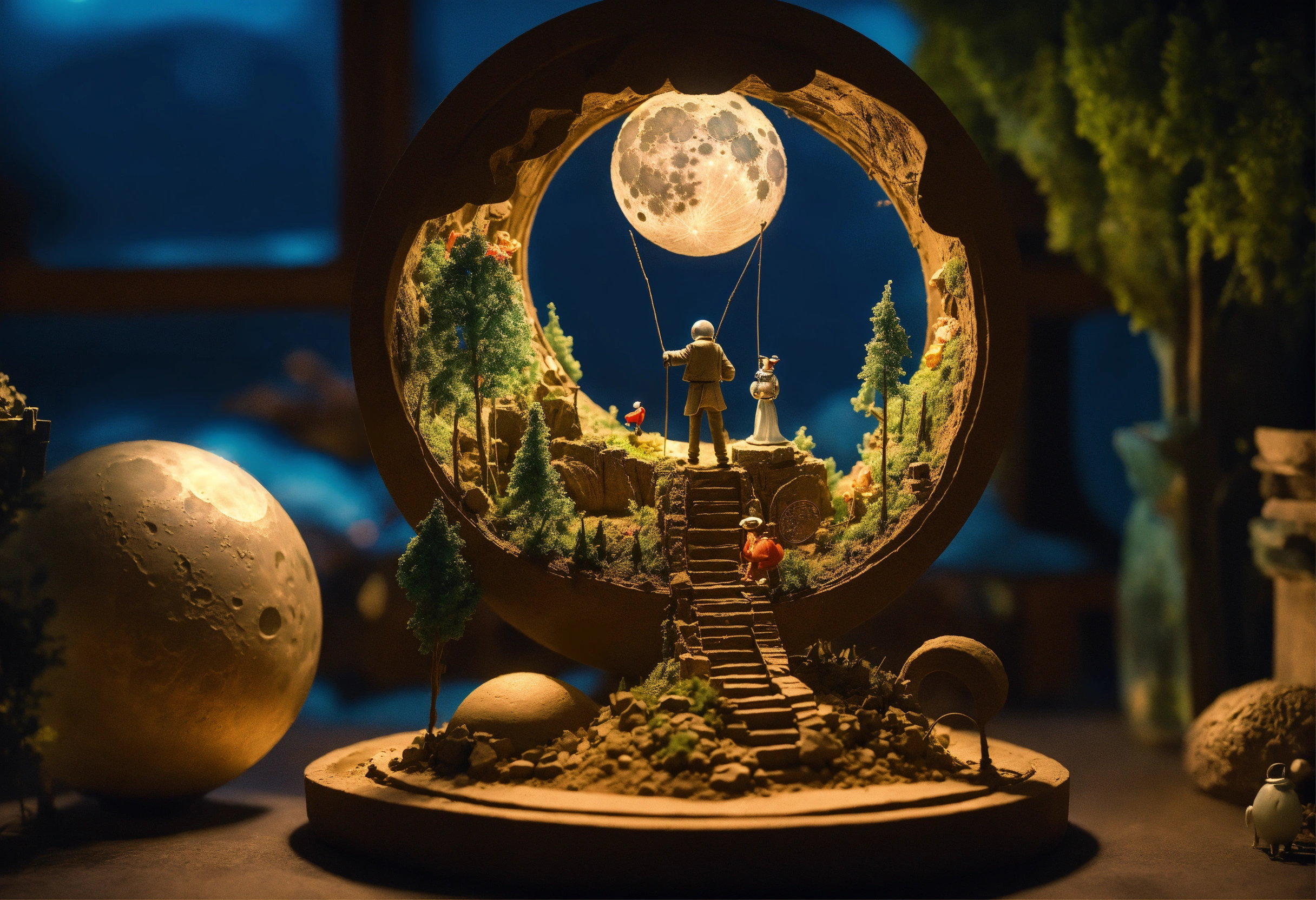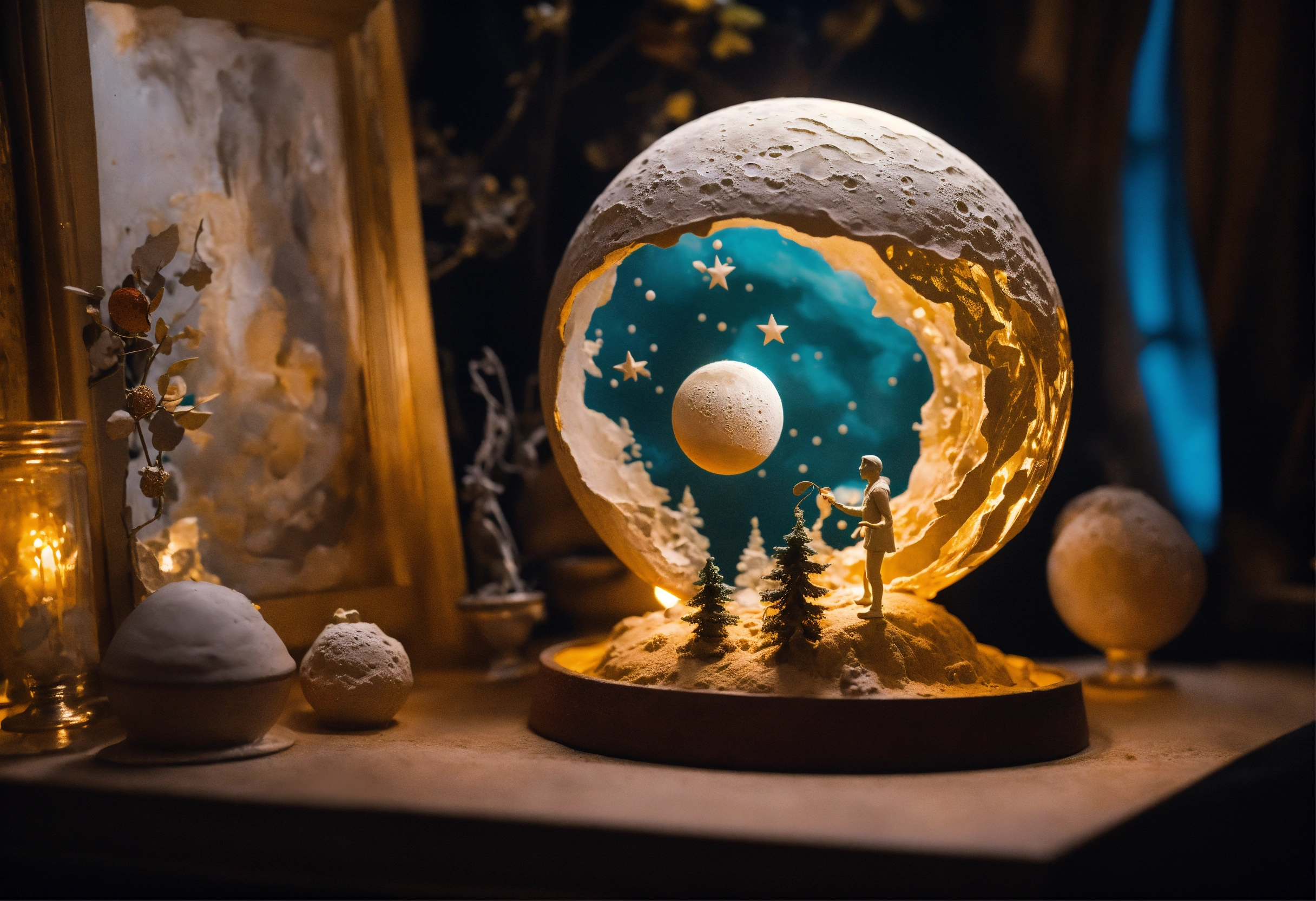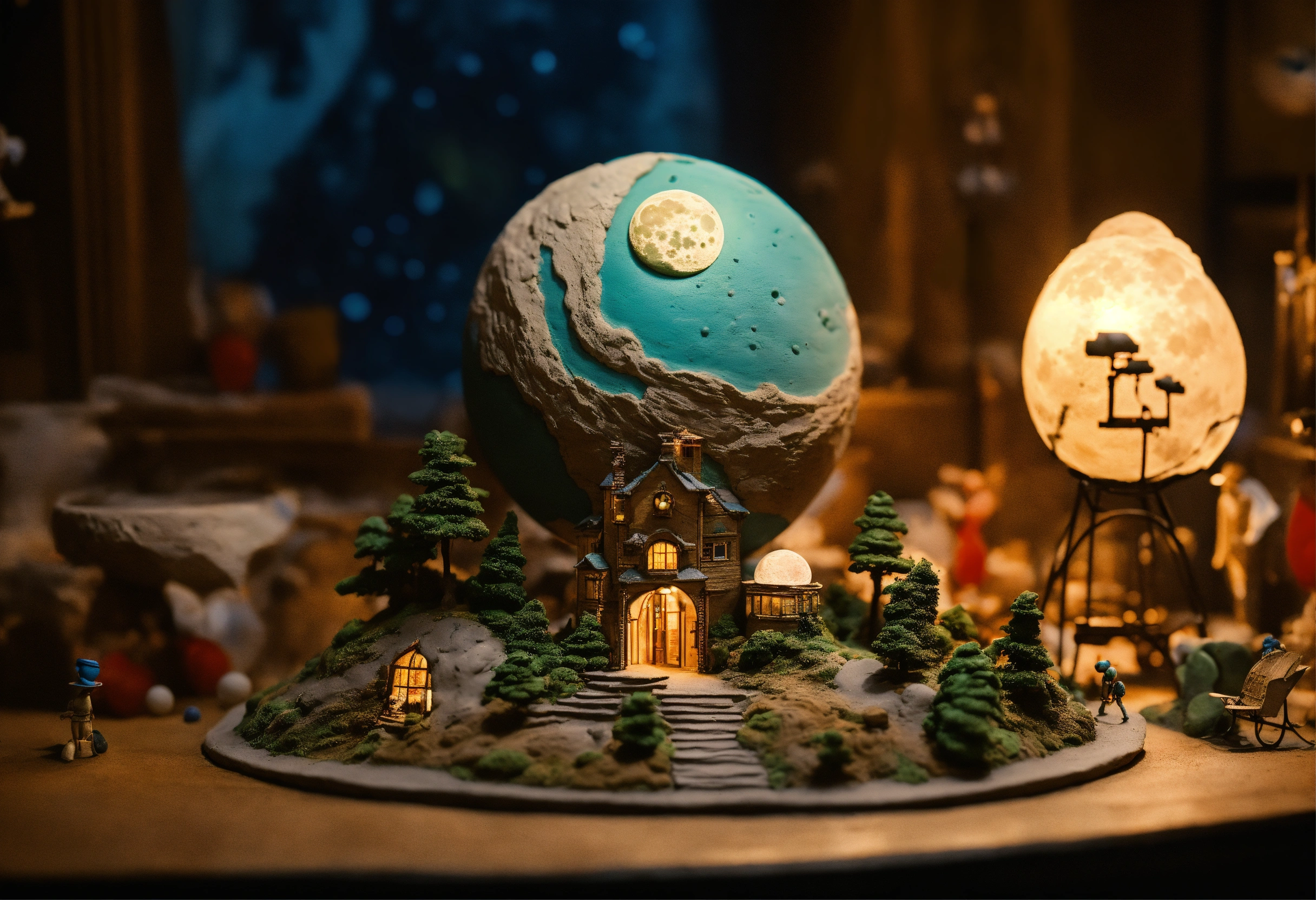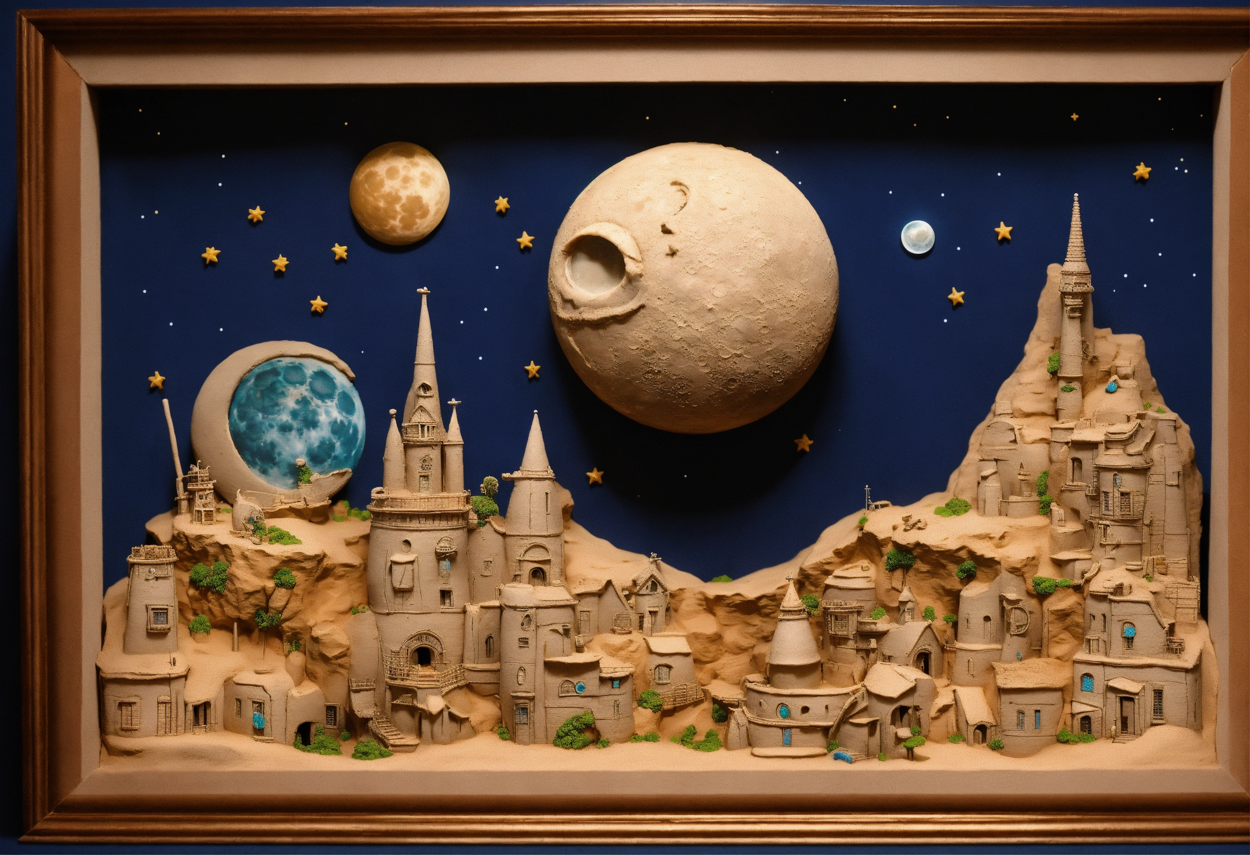 Hand-made artwork 3d, modeling clay, iconic moon-in-the-eye scene appears, georges melies inspiration