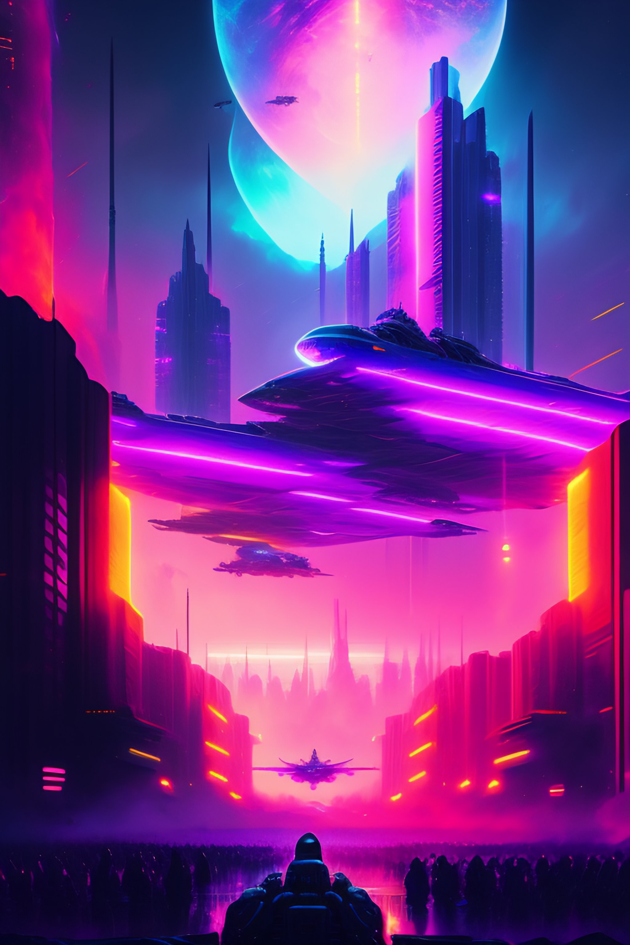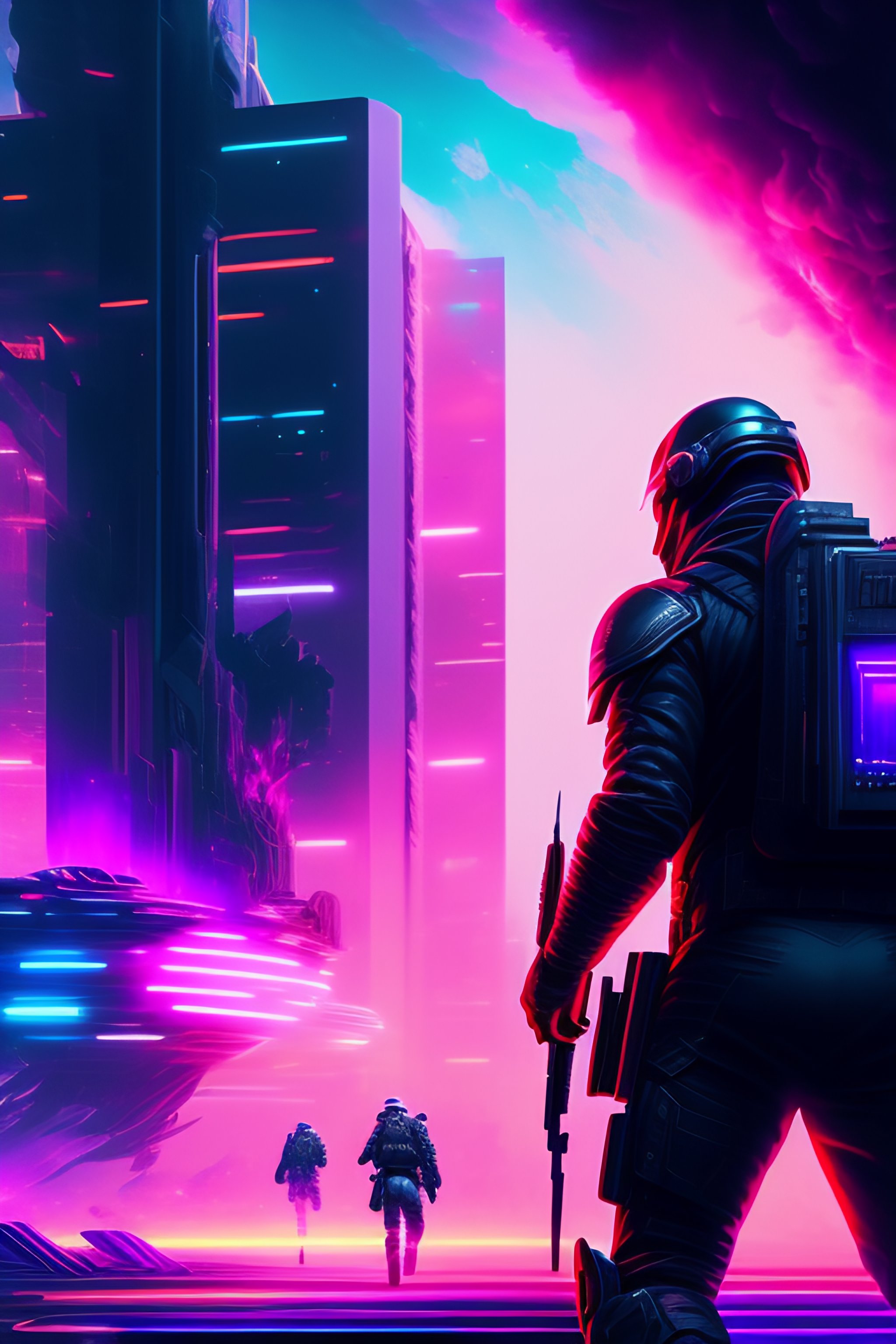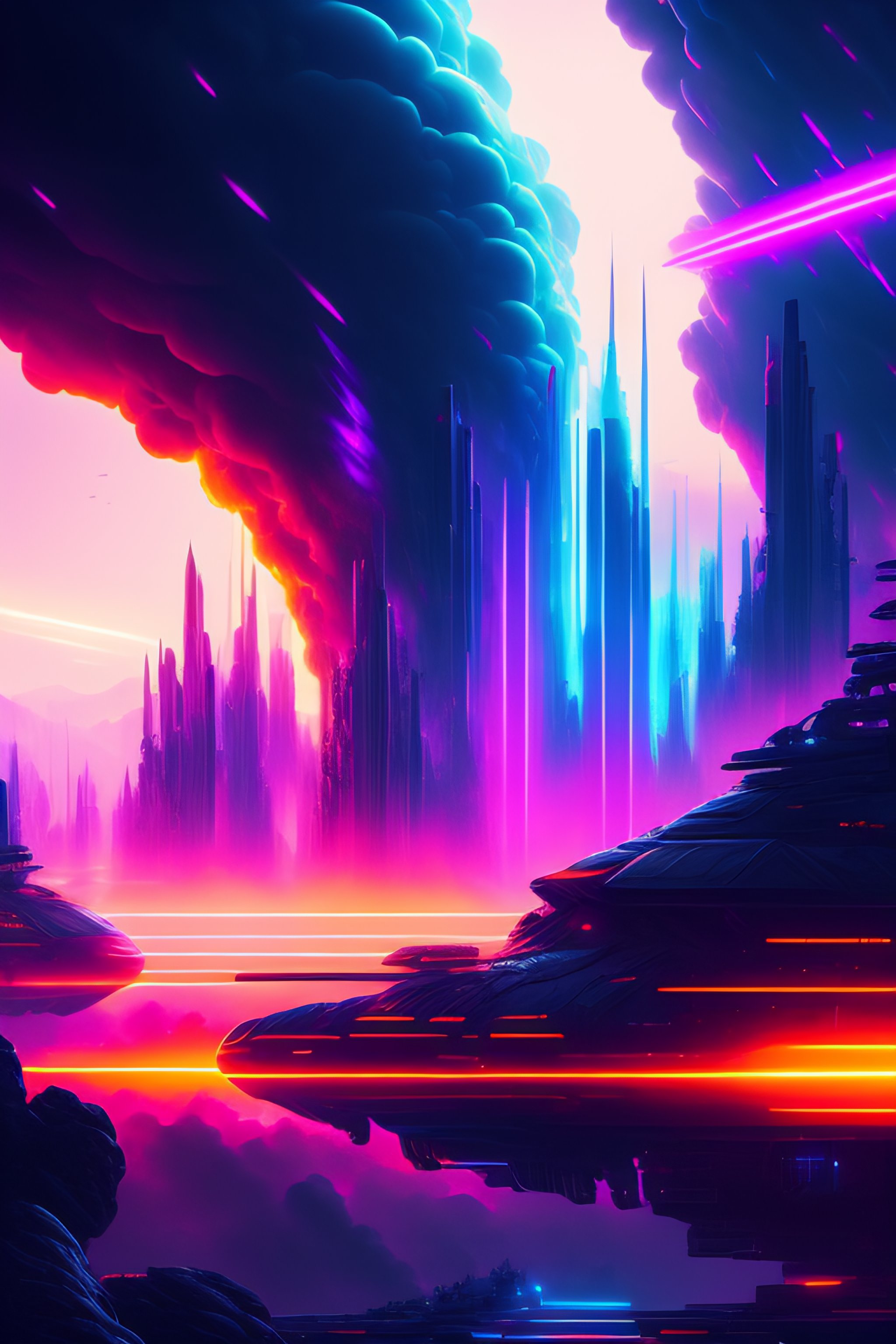 Epic battleground, beautiful synthwave new wars painting, digital illustration, extreme detail, digital art, 4k, ultra hd, futurewave, explosions, deepspacing