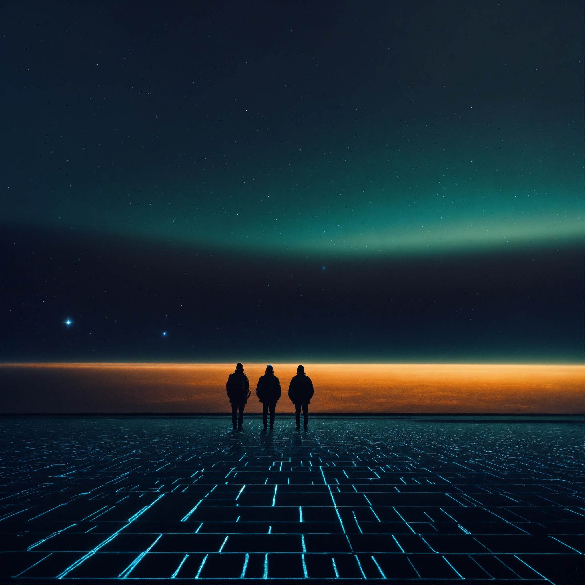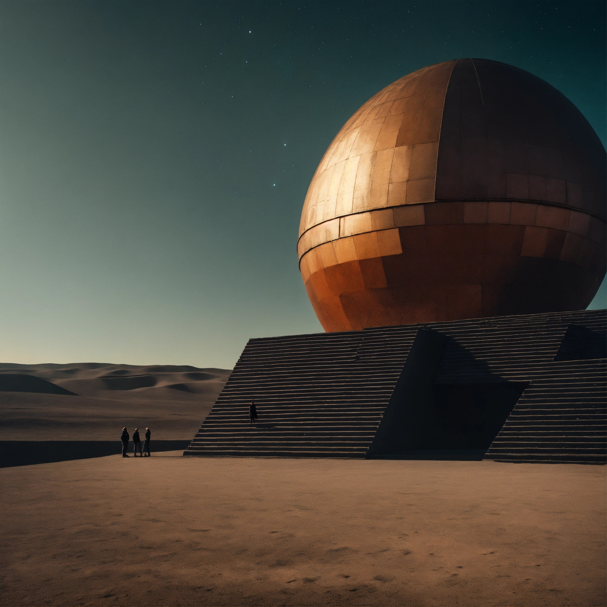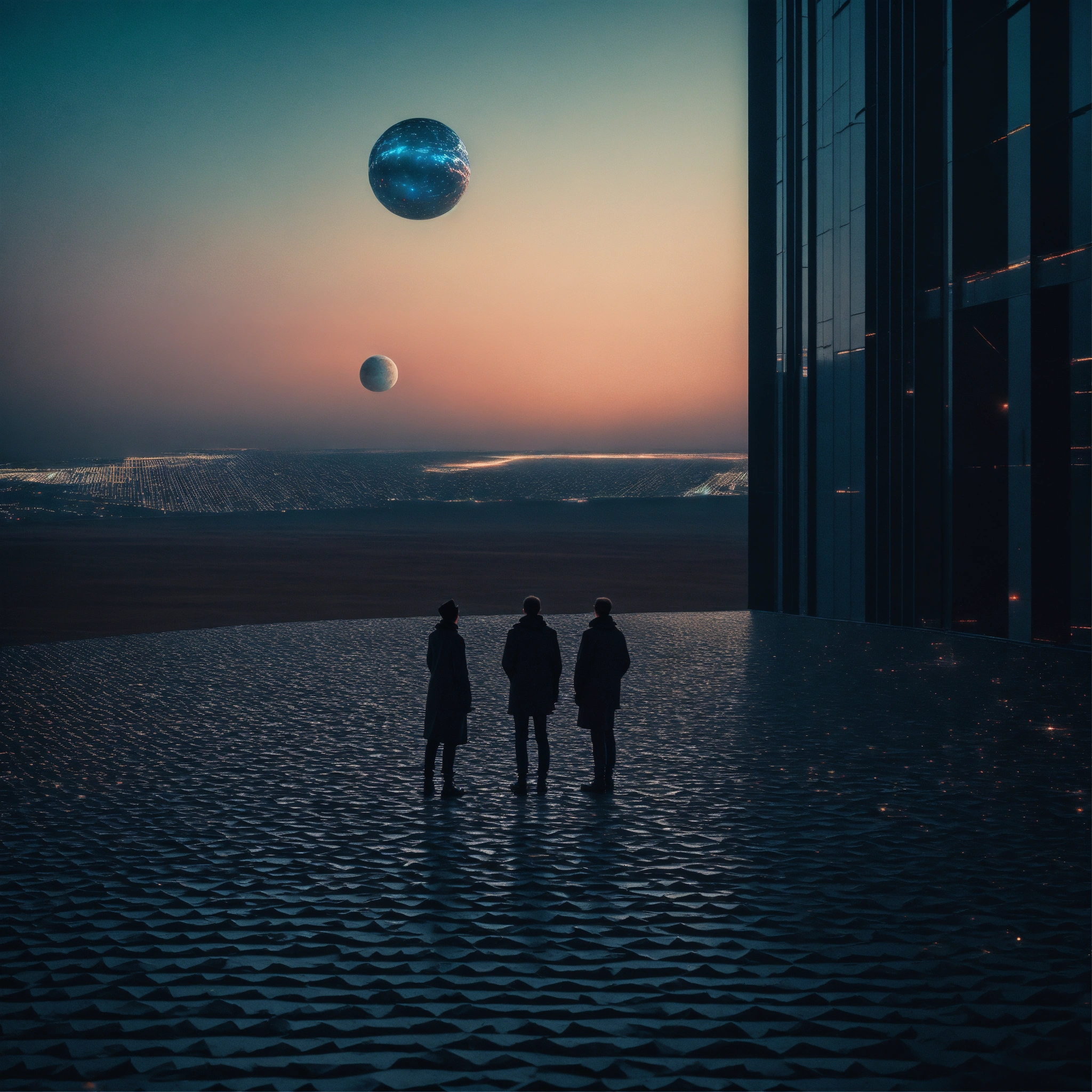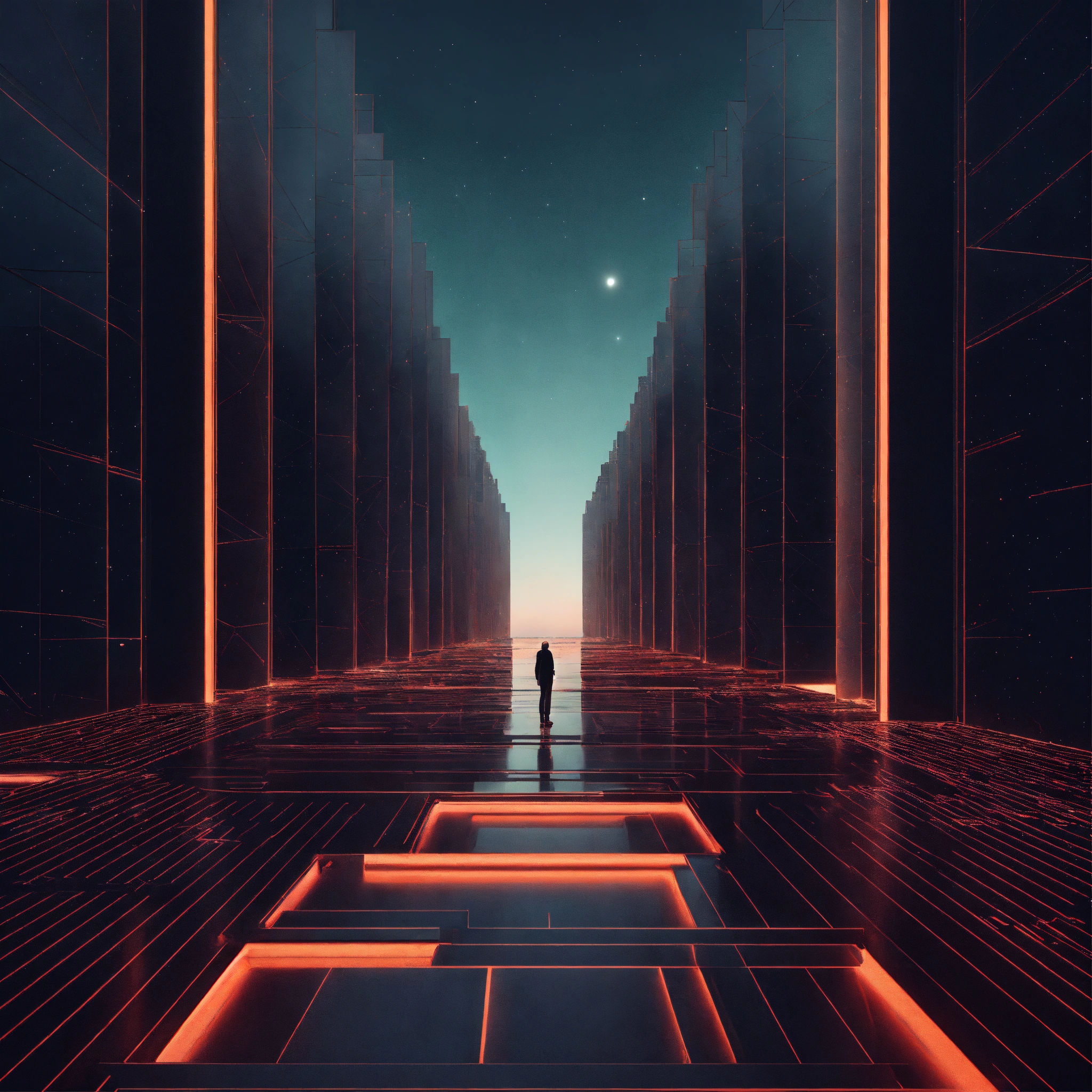 Space, galaxi, geometric shapes, minimalistic, stunning photo, vast expanse, surreal, 8k photo (isolated humans) look over, in the style of dark hues, coded patterns, sparse and simple, uhd image, urbancore, sovietwave, vastness of space, negative space, award-winning design, leica