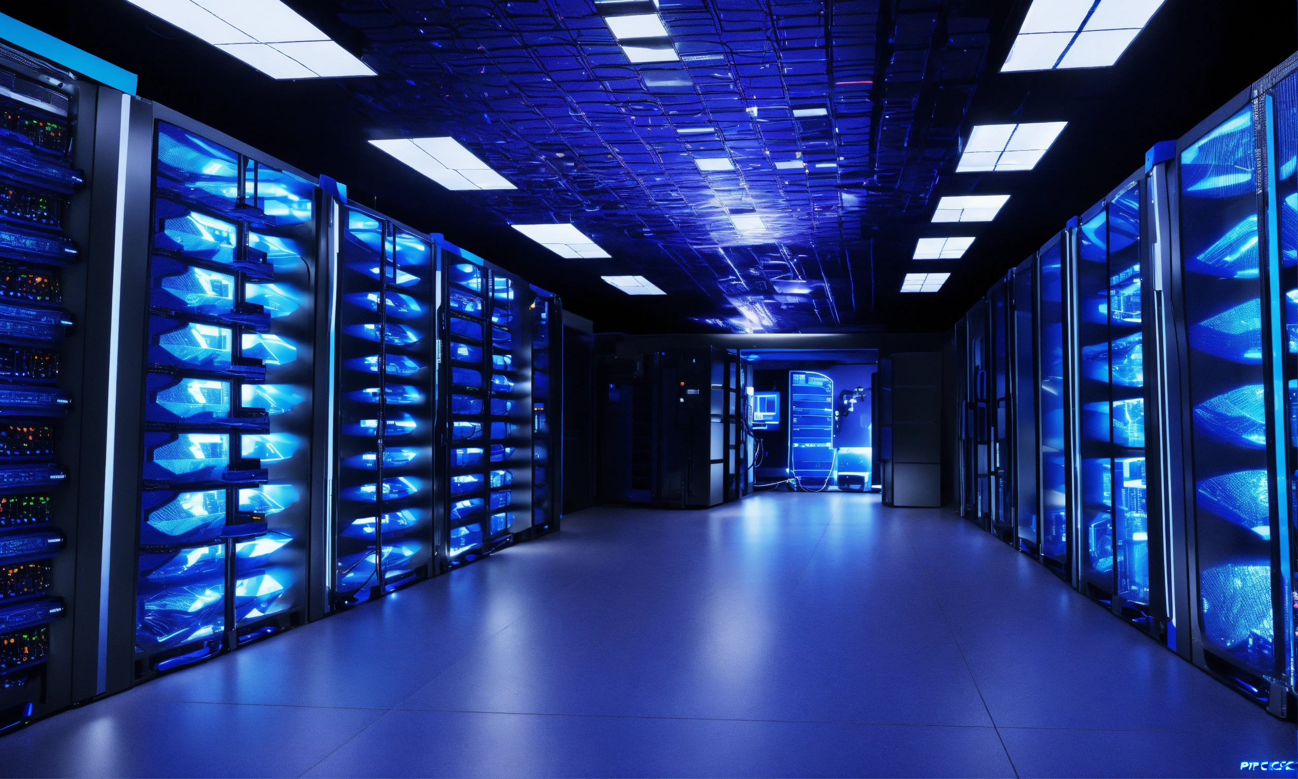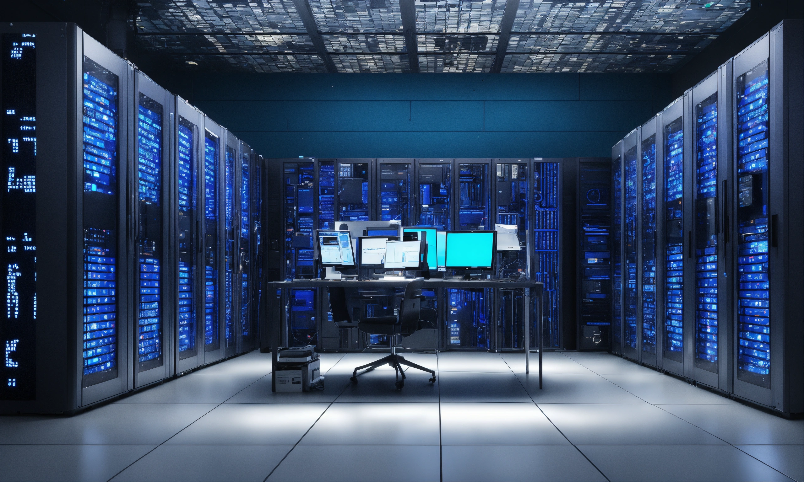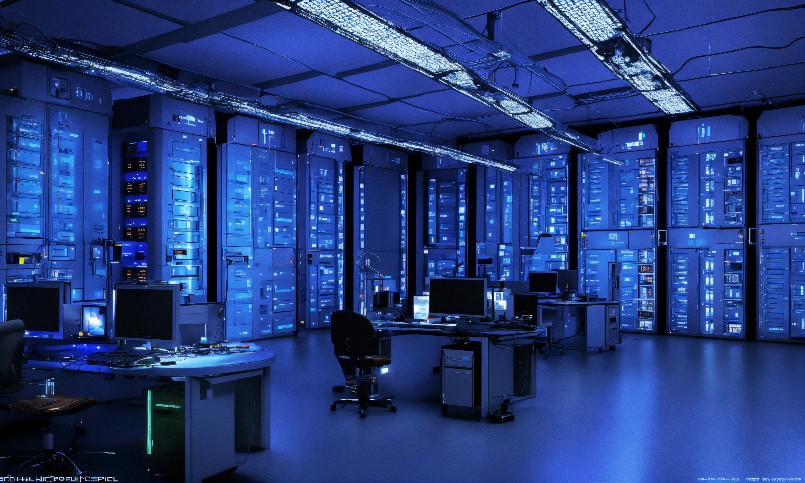 Blue wallpaper many techn experts in futuristic state server room hacking on pcs epic wallpaper