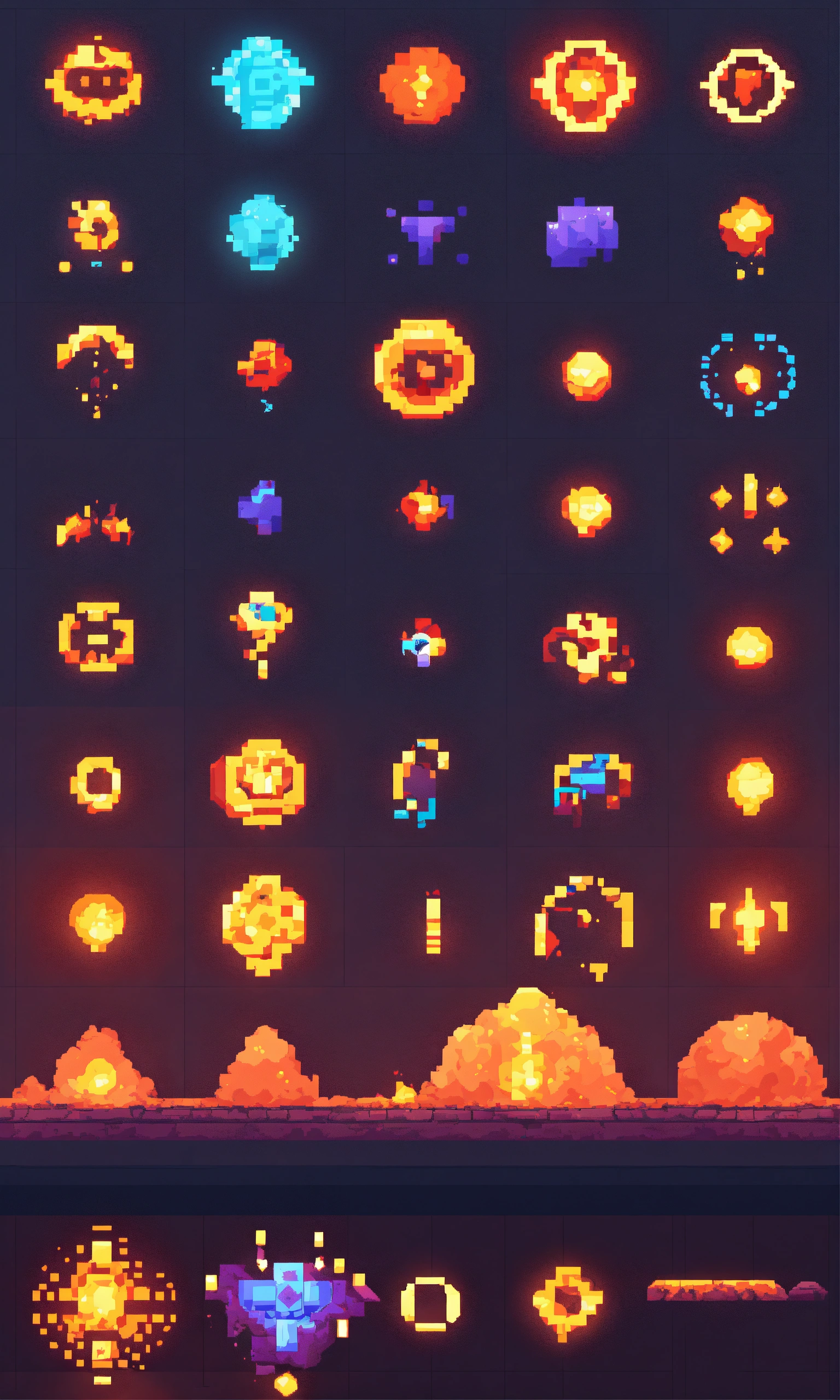 Simple electric circle attack graphic concept art samples for a game. pixel art, low poly, simplistic pixel art. plain background
