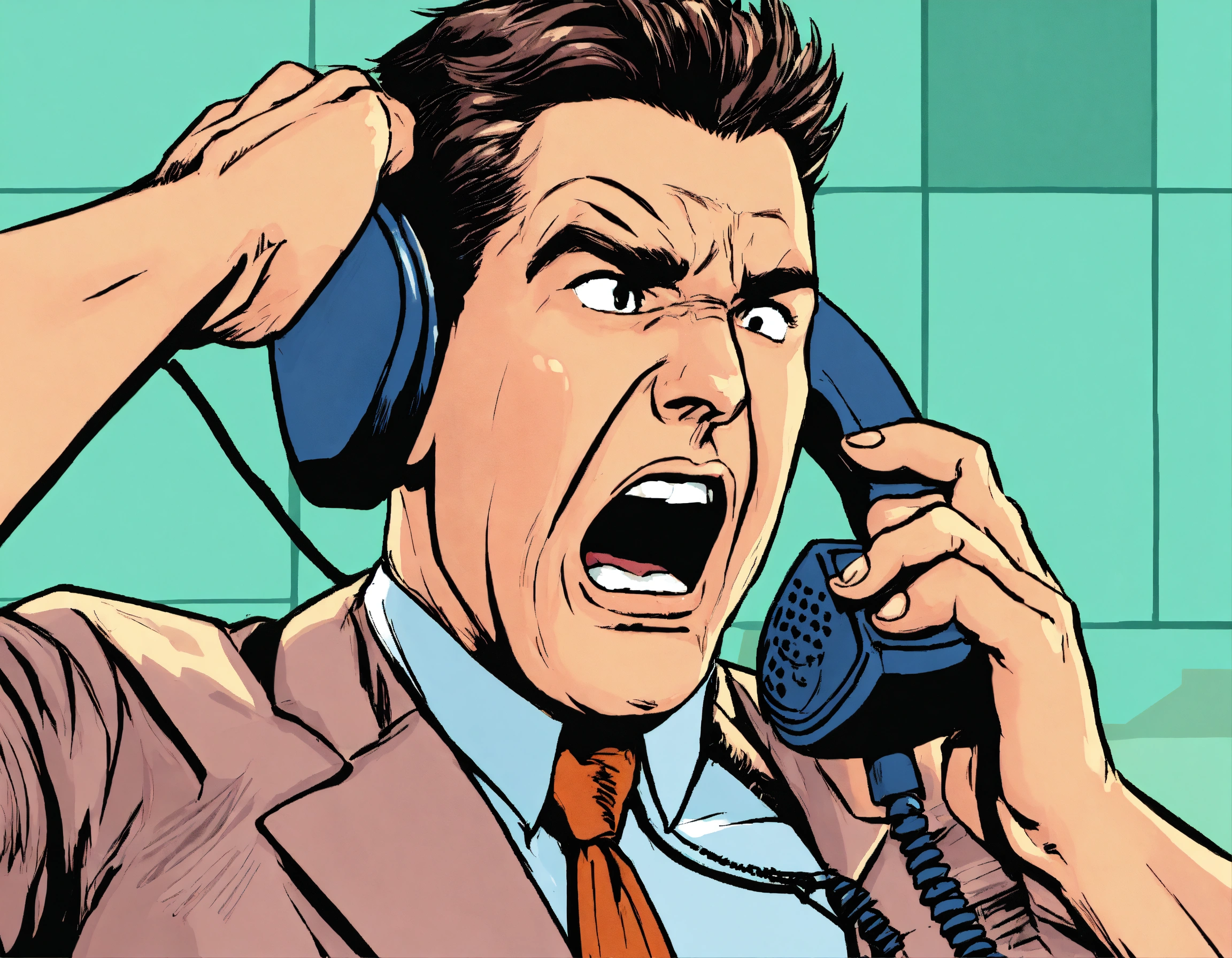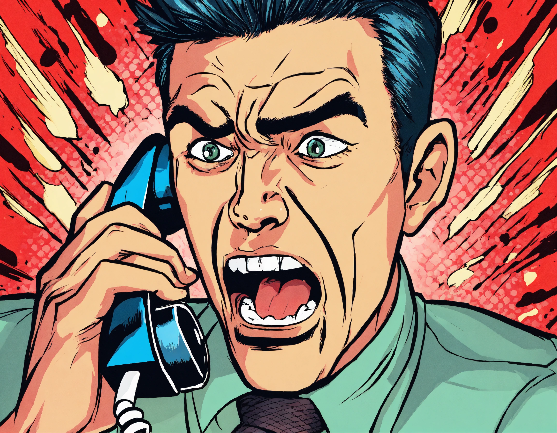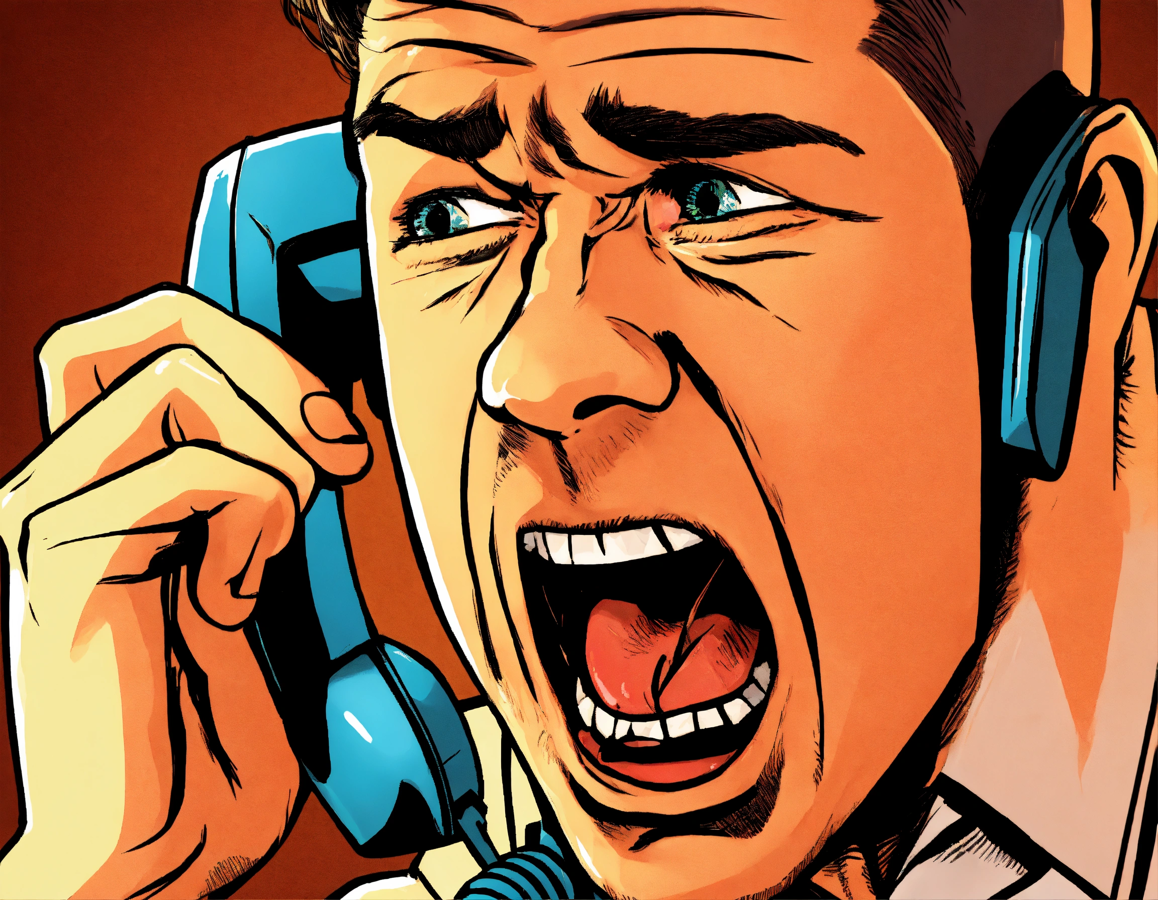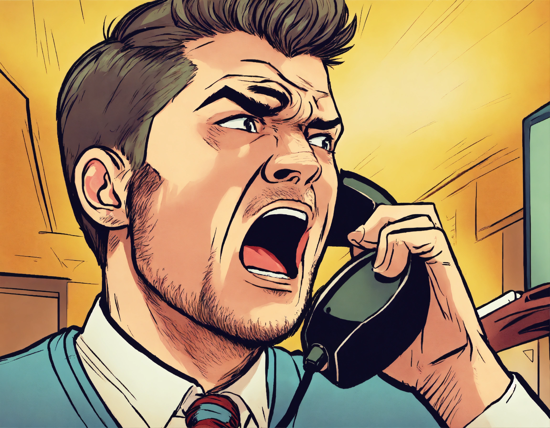a man is yelling into a telephone