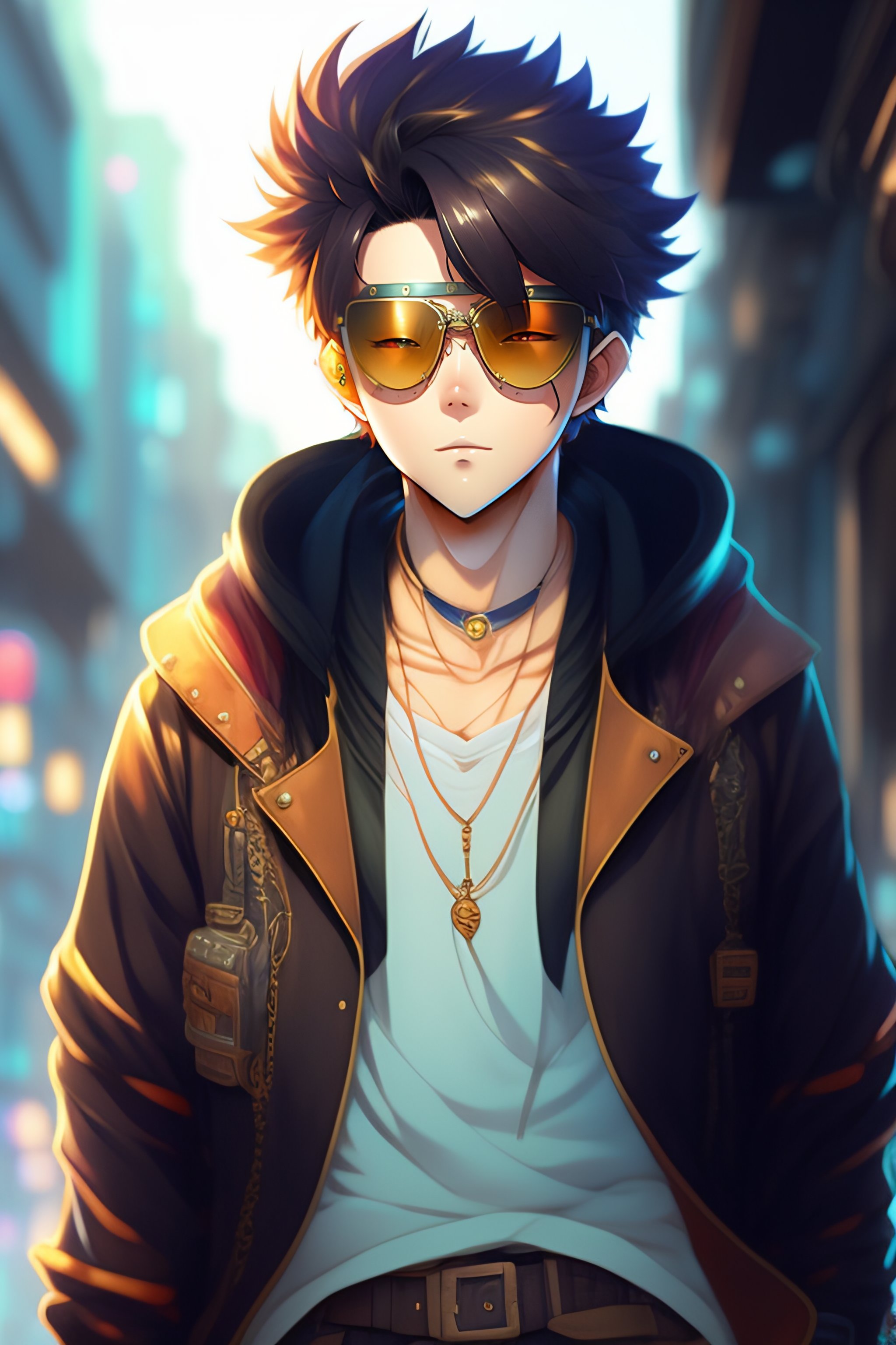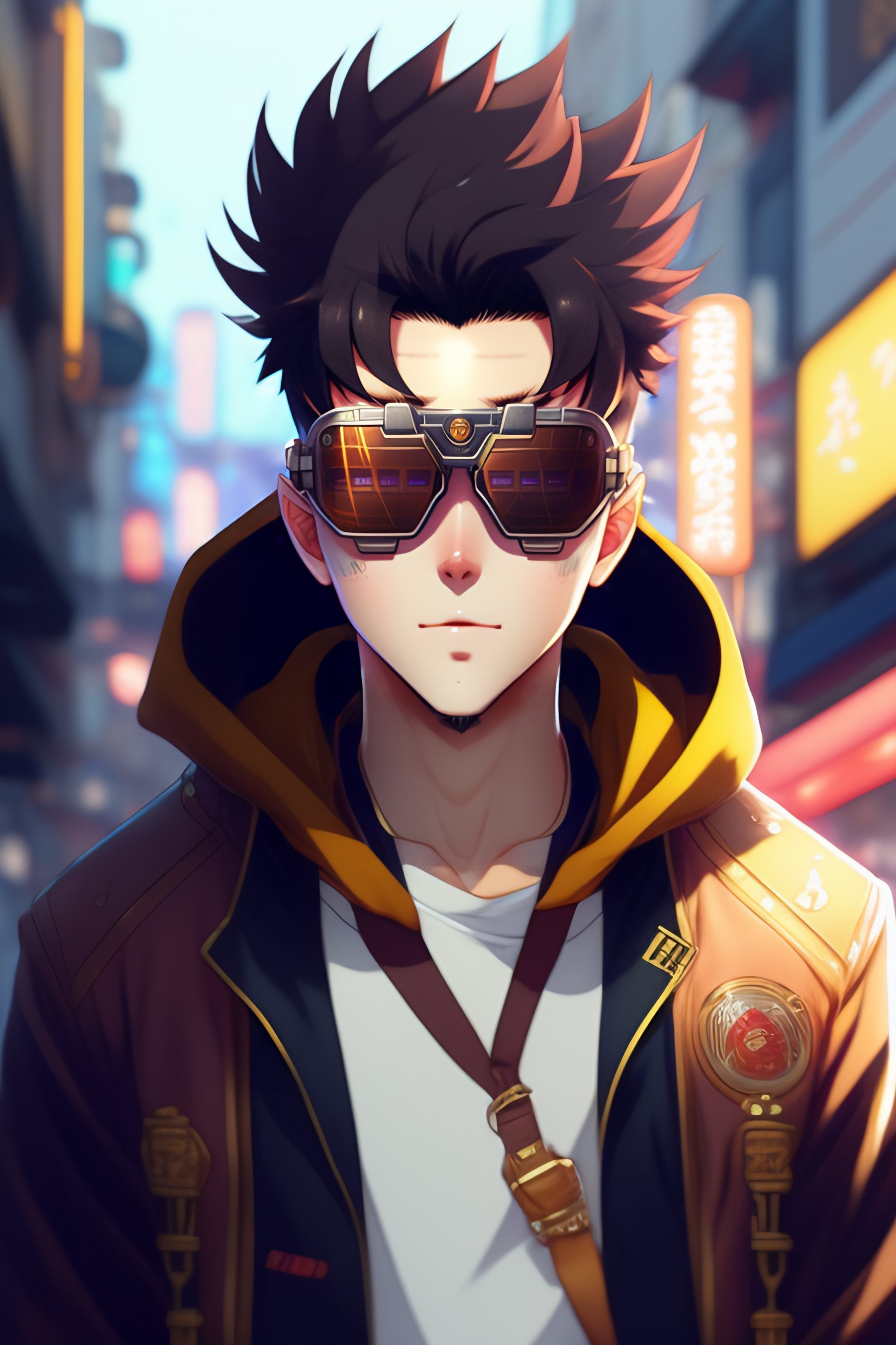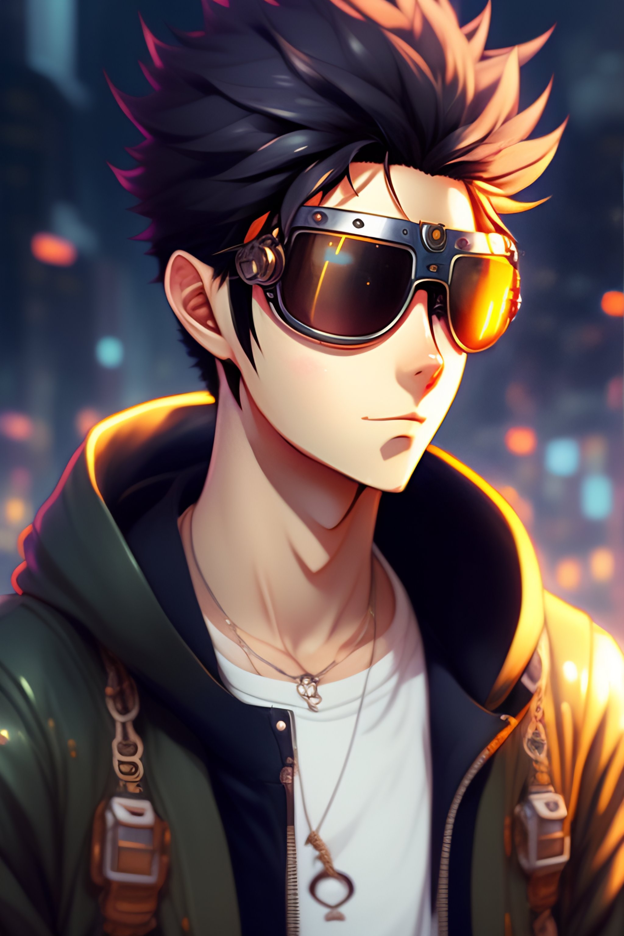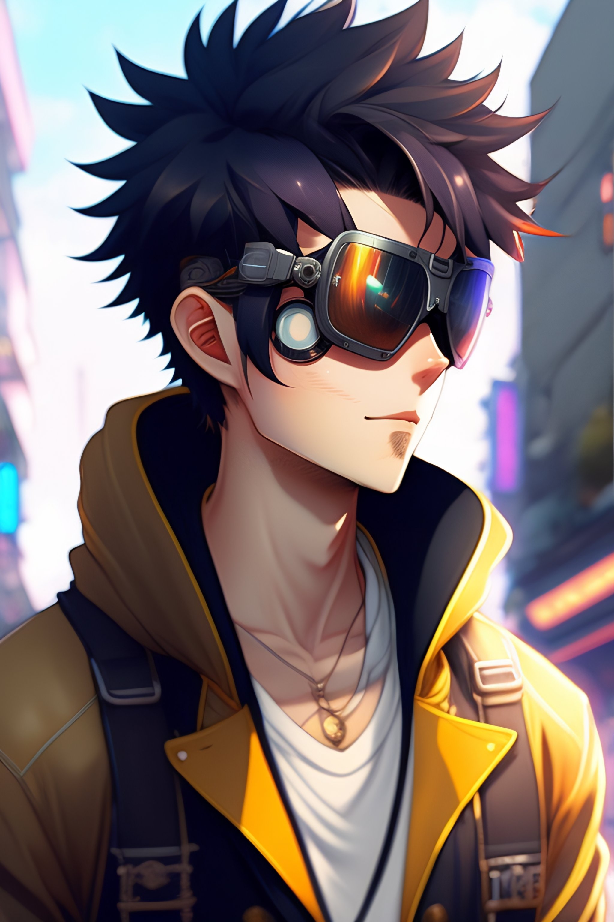 Anime boy with messy hair and full beard wearing steampunk goggles, hoodie, programmer, modern anime style art, shinkai makoto vibrant studio ghibli kyoto animation hideaki anno sakimichan stanley artgerm eiichiro oda lau rossdraws james jean marc simonetti elegant highly detailed digital painting artstation pixiv cyberpunk
