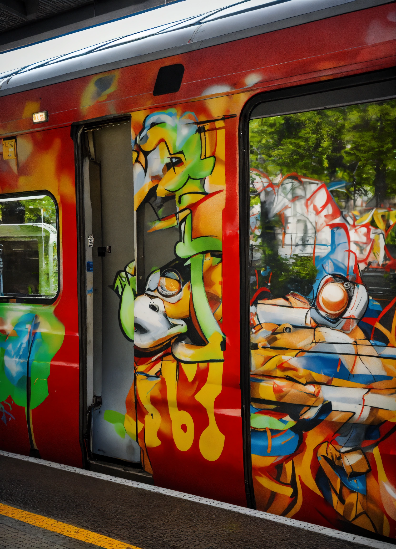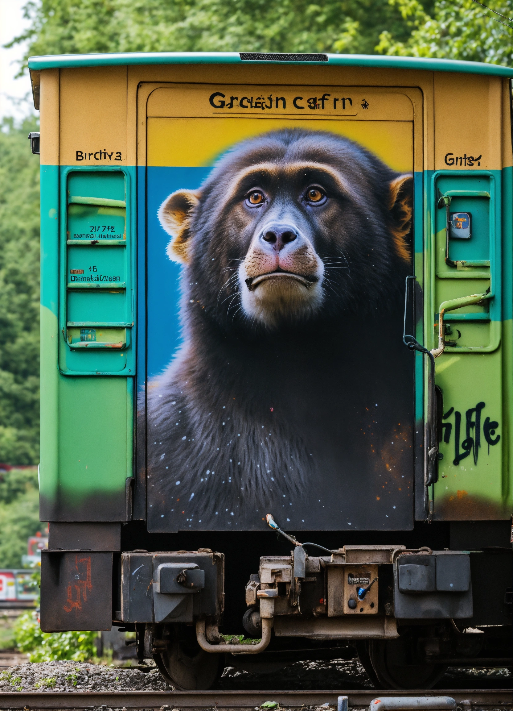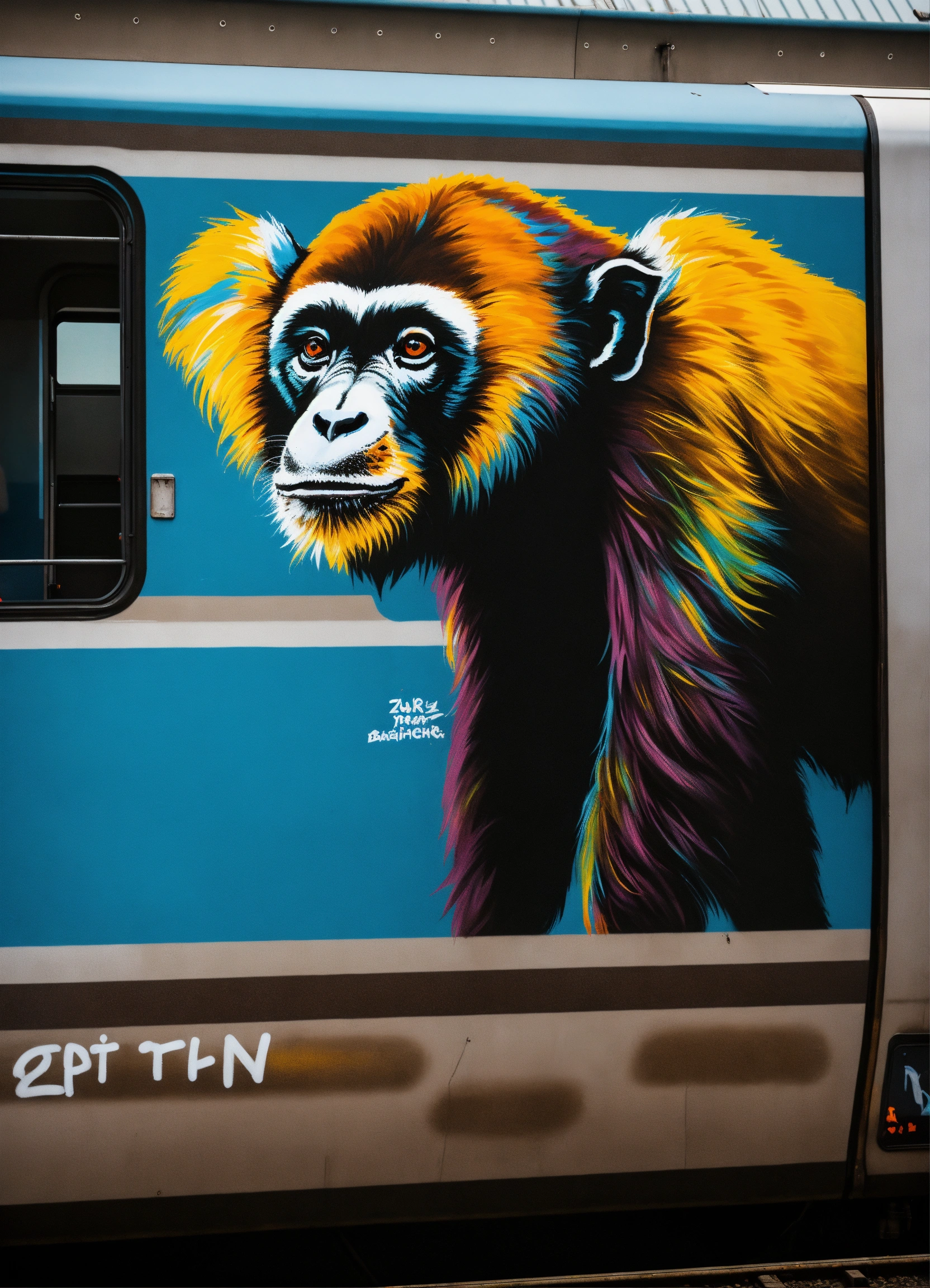 Ein affe macht grafitty an einem zug von der deutschen bahn