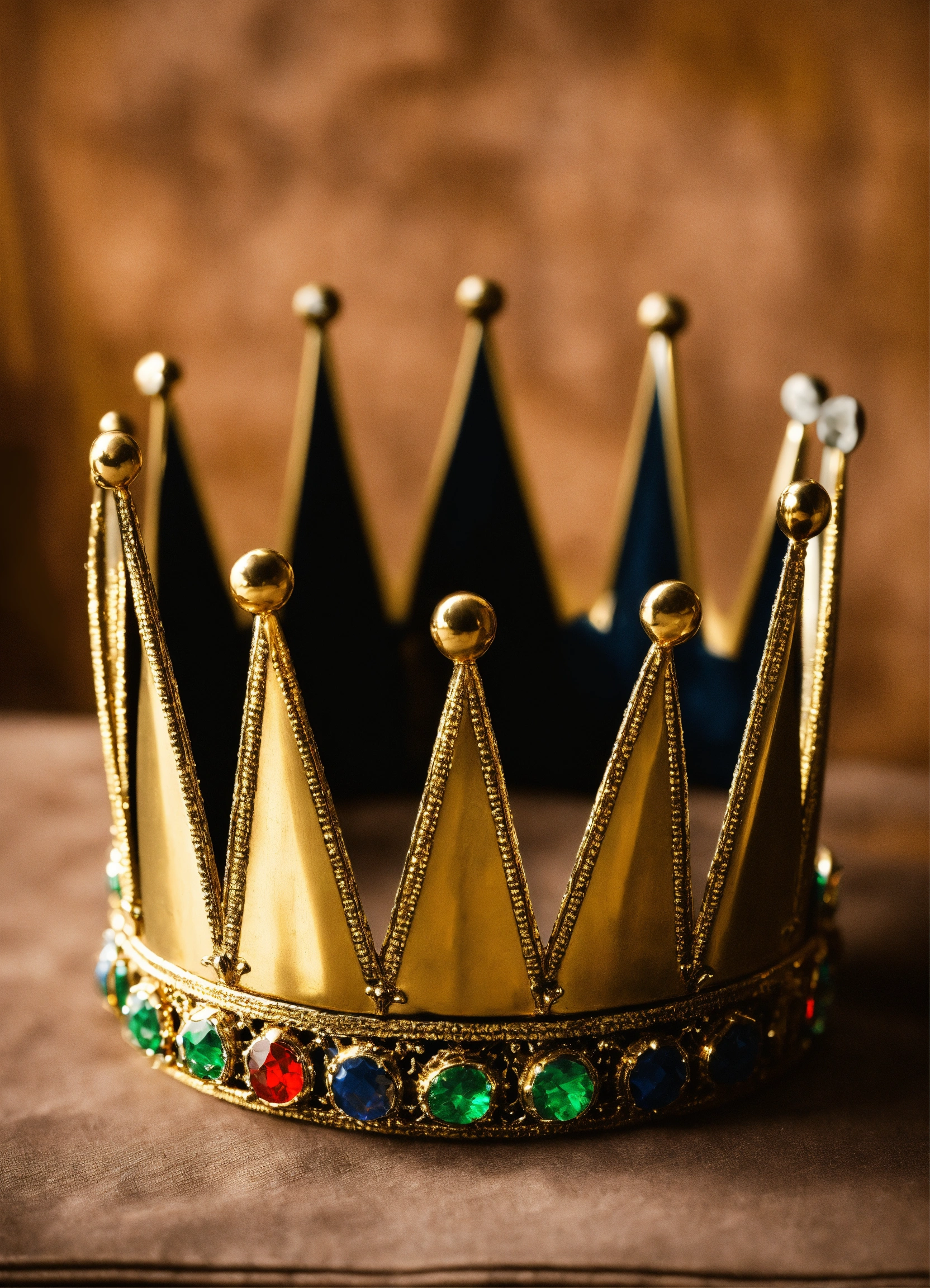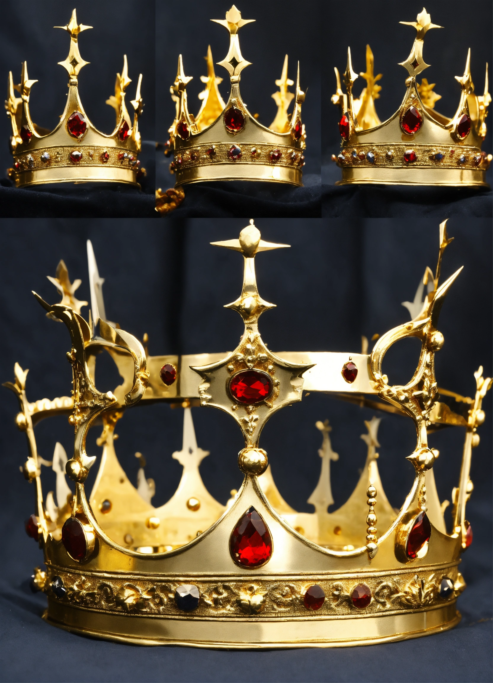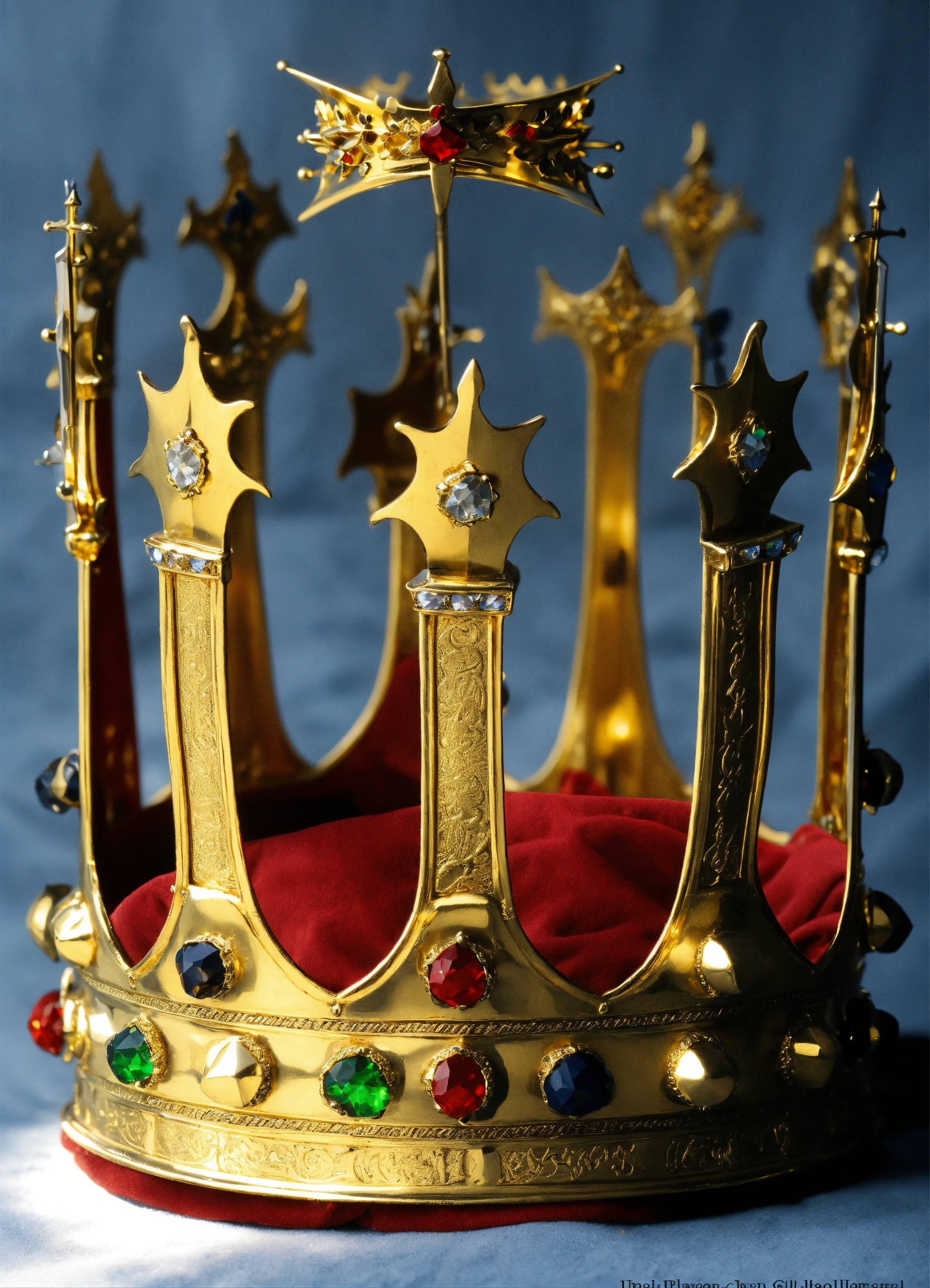 Medieval crown of king with 5 small sword tips crown, the crown should be smooth gold, a golden band with the 5 sword tips coming up. plain crown