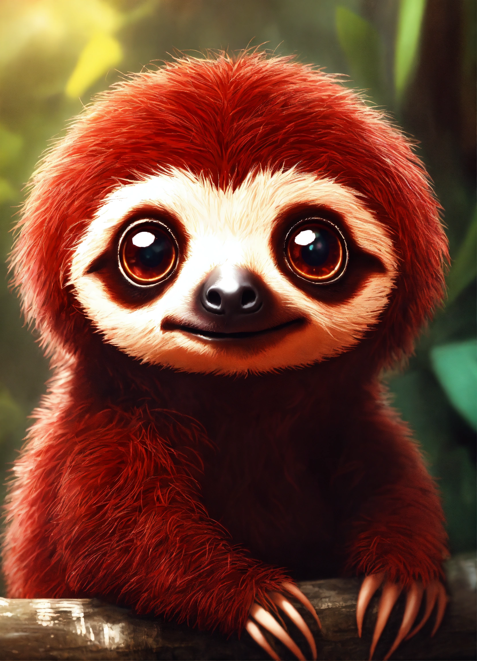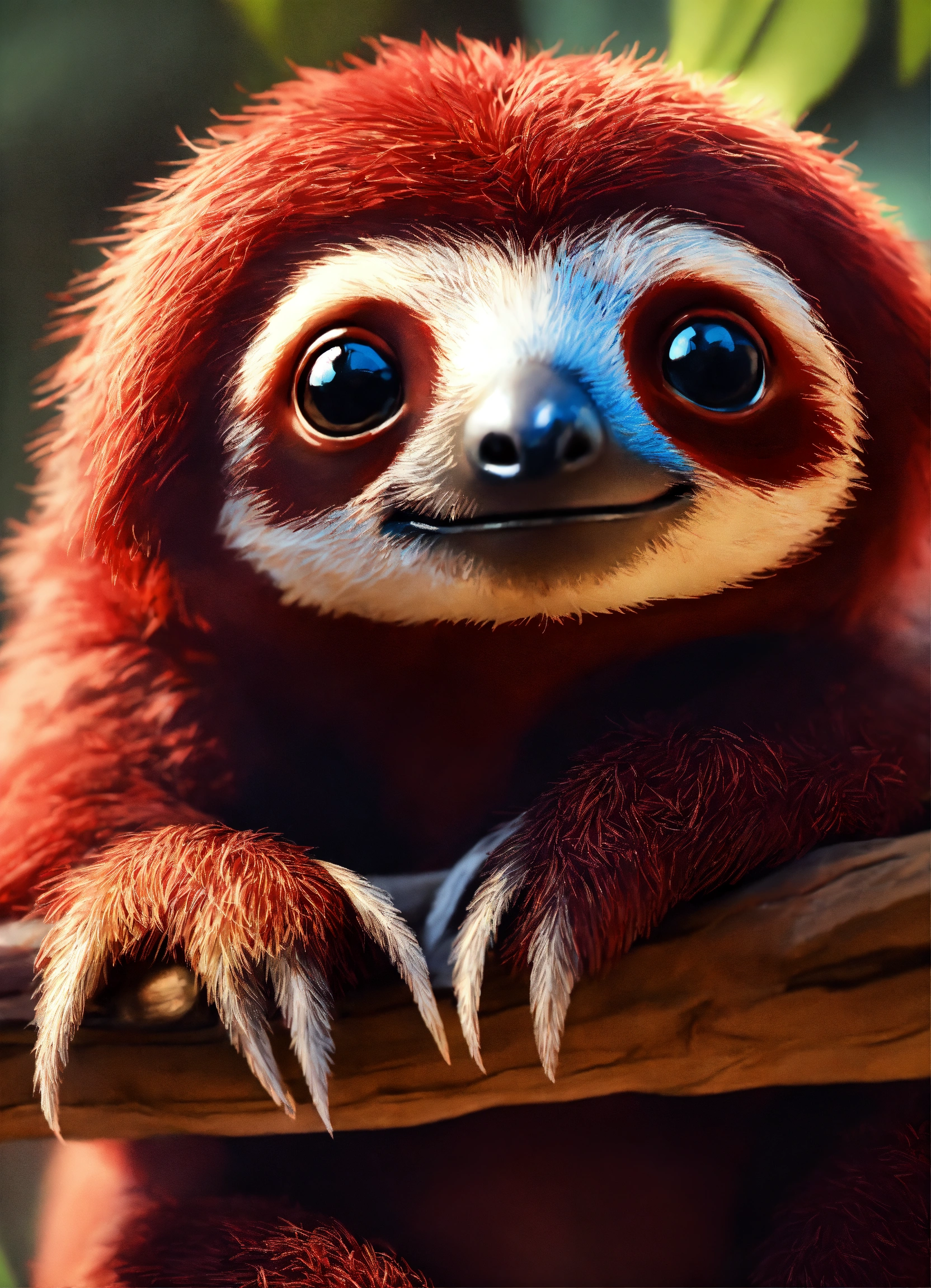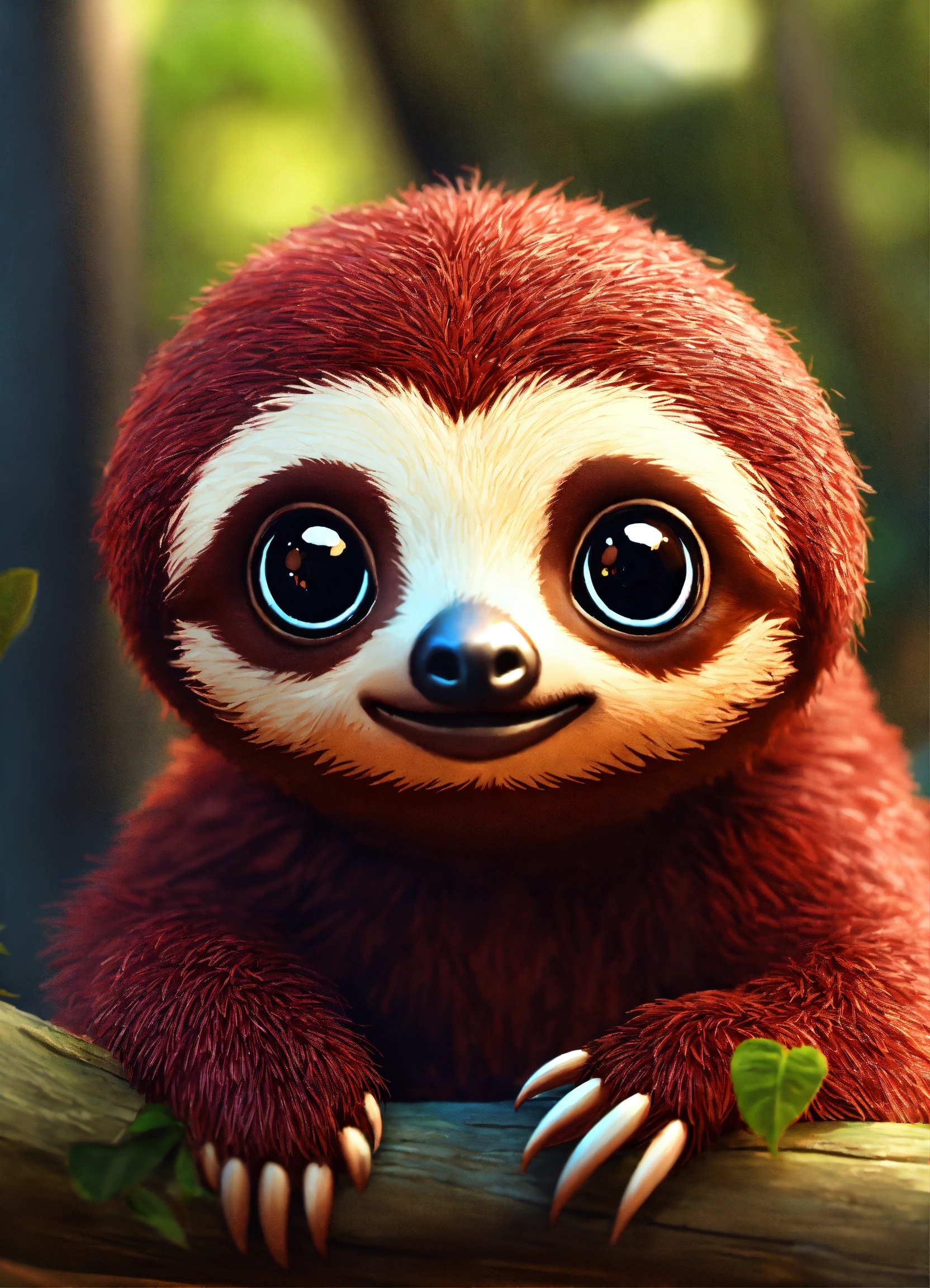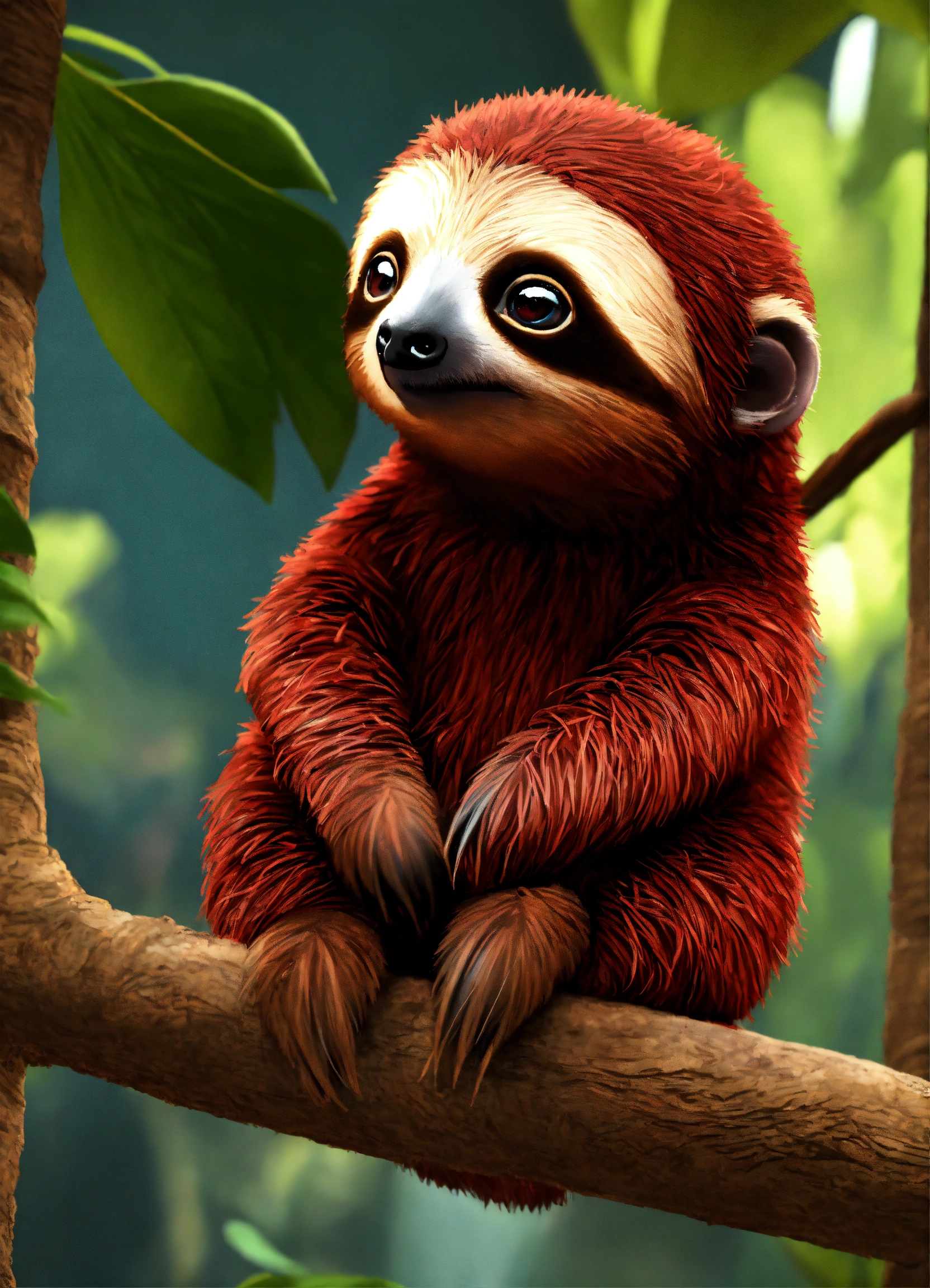 A cute dark red baby sloth with big eyes