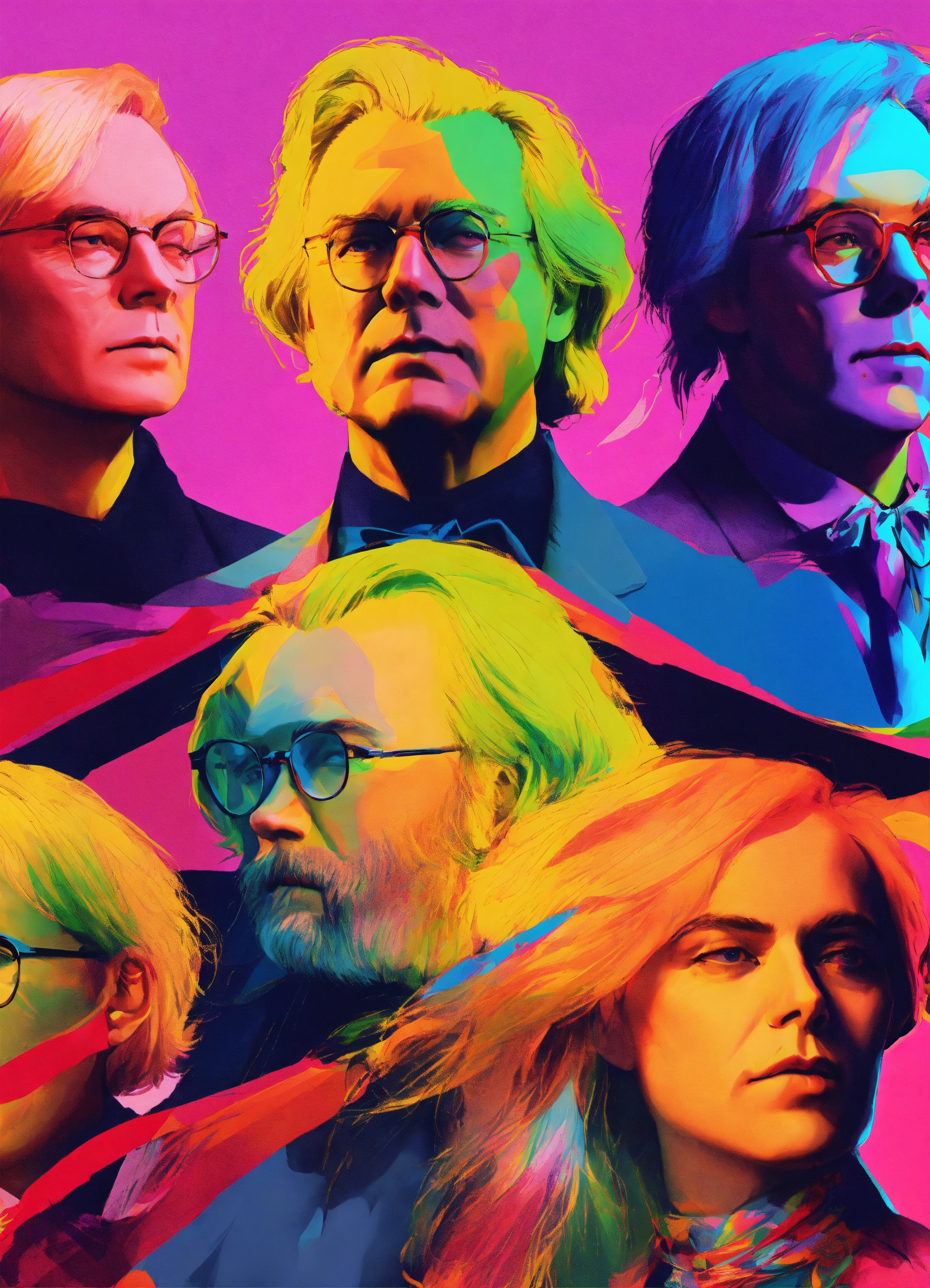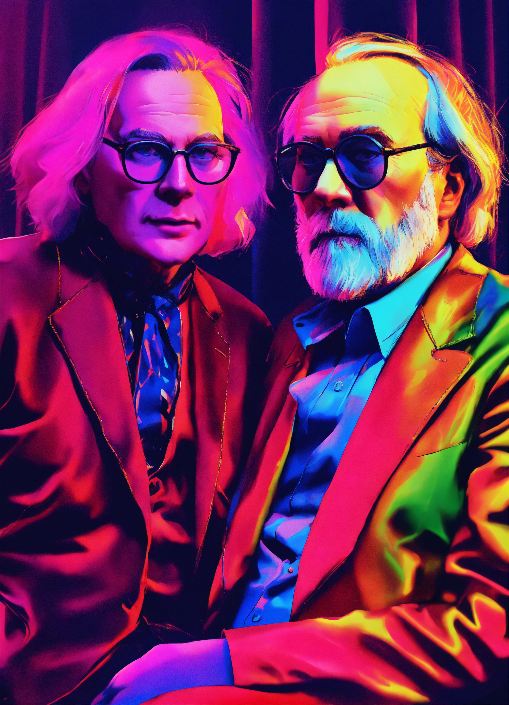 Art digital of brahms and marjan mozetich, andy warhol style, incredibly high detailed, bright color, natural light, 5 and octane render, trending on artstation, gorgeous, ultra wide angle, 8k, hd realistic, 8k hd