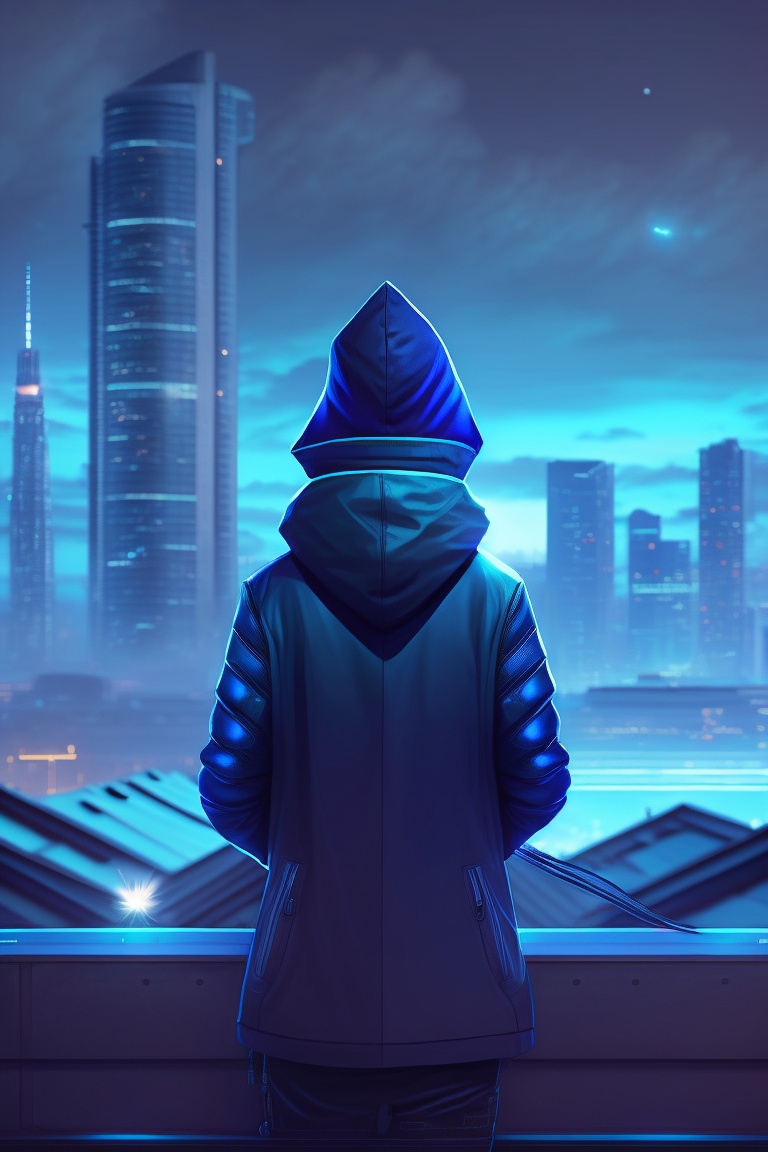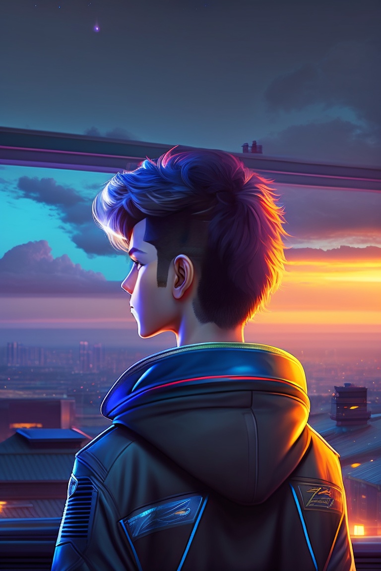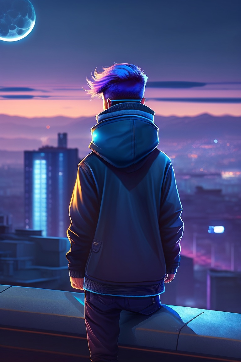 Alone boy avatar looking the might night on the house roof