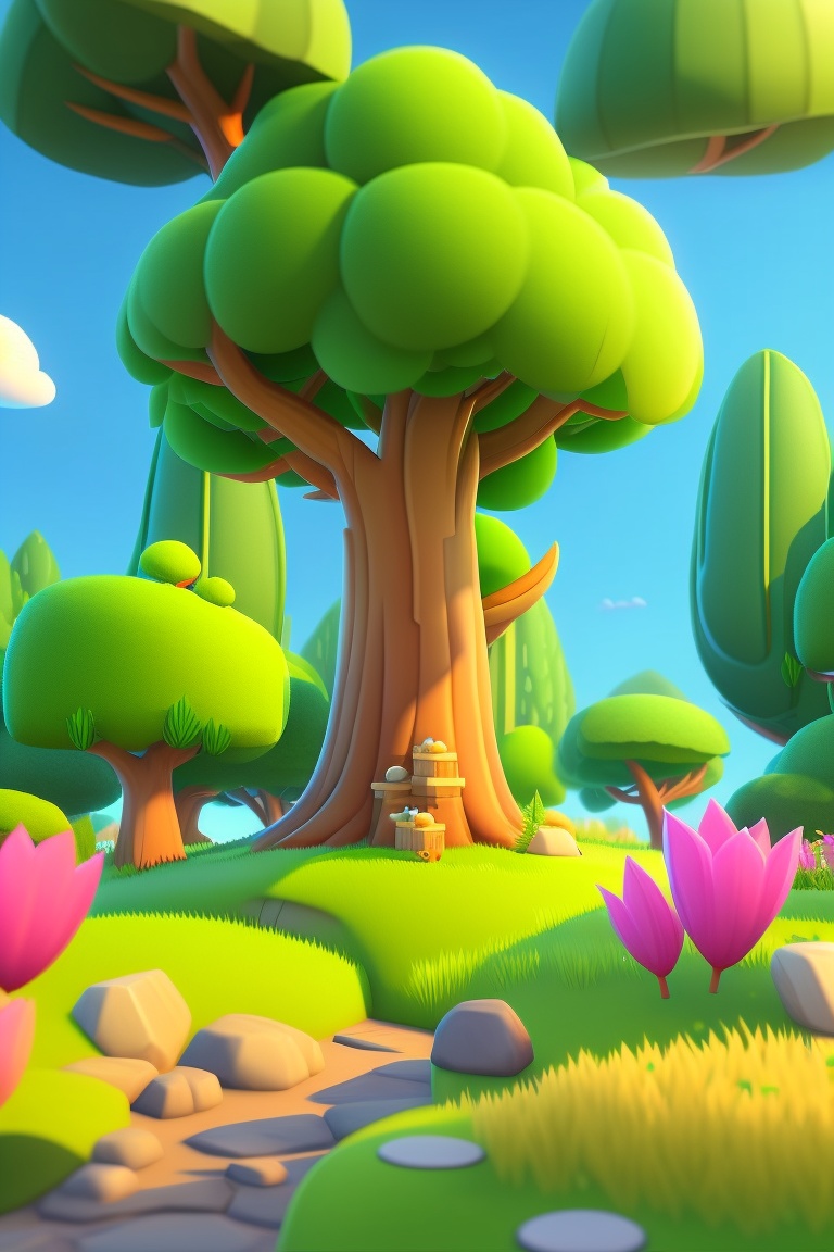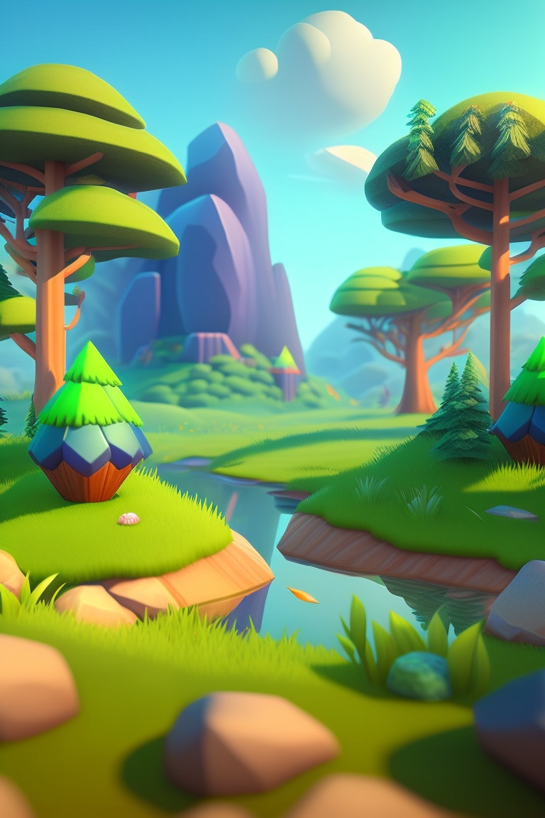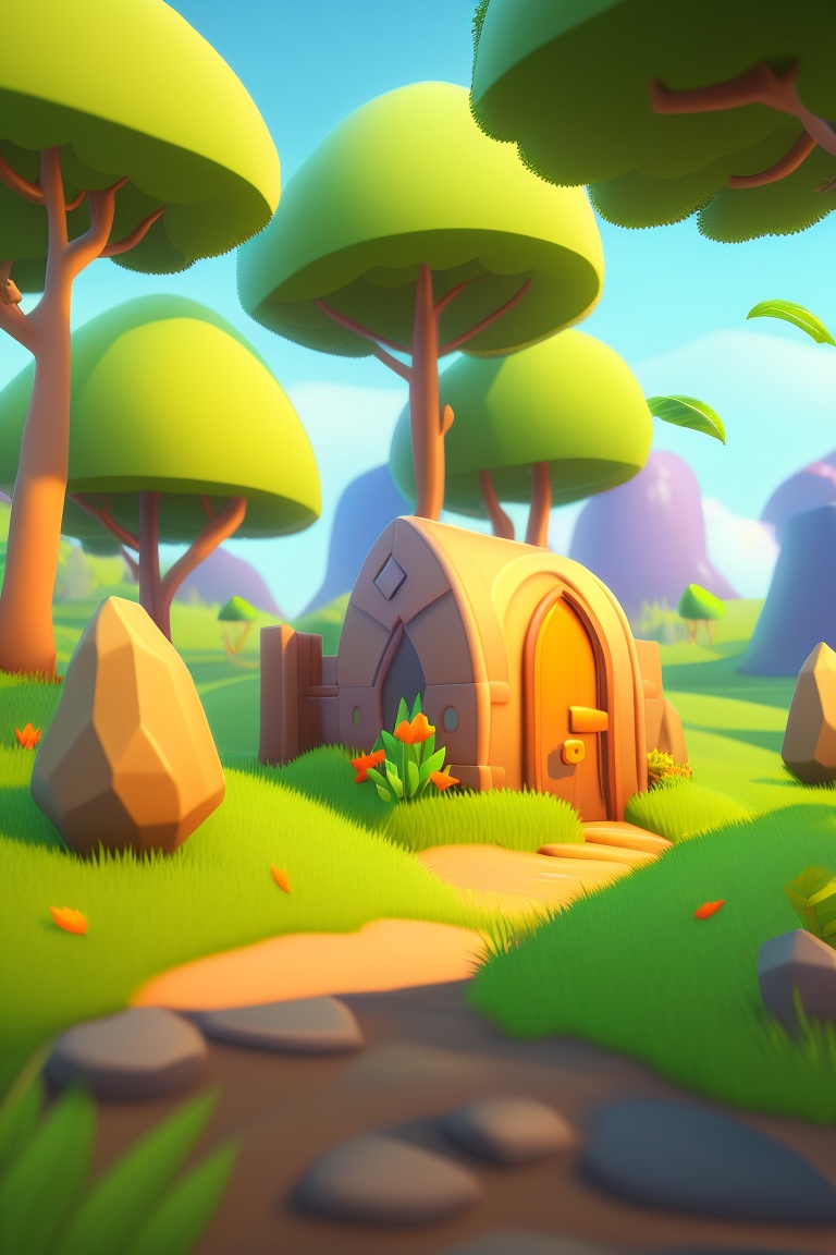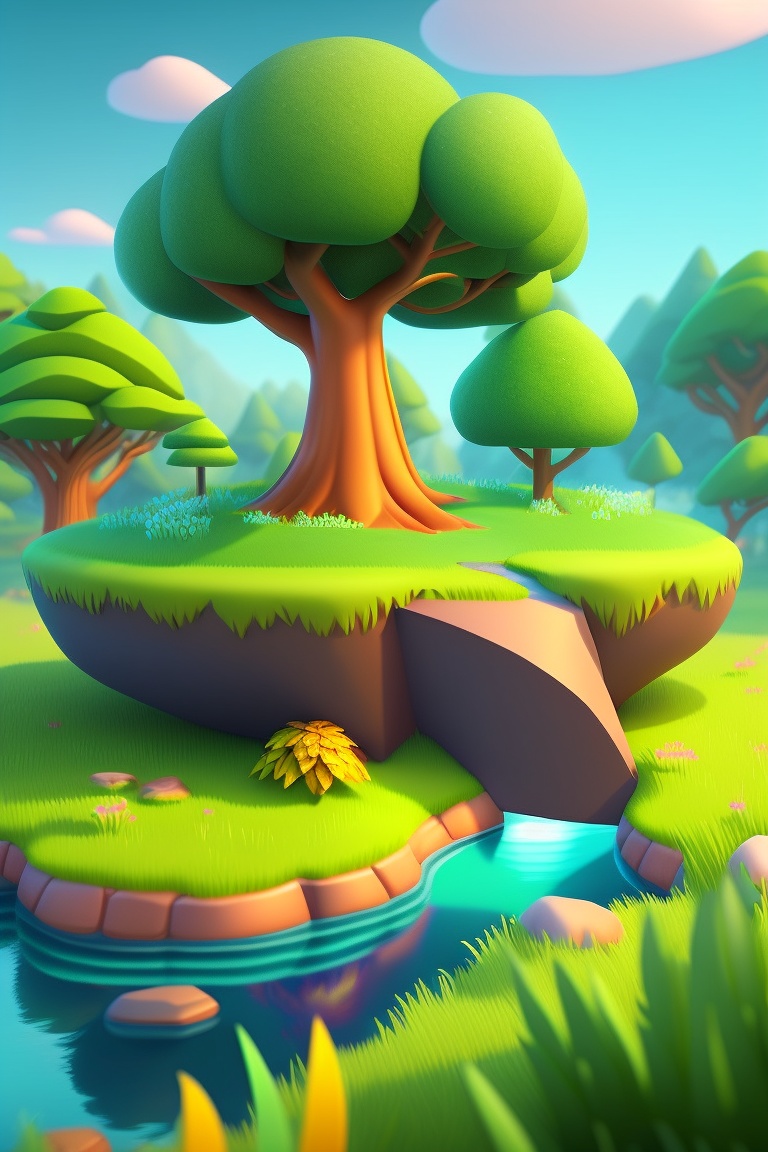 A 3d cartoon style game background, forest, green grass, sky, moblie game background, highly detailed, 4k