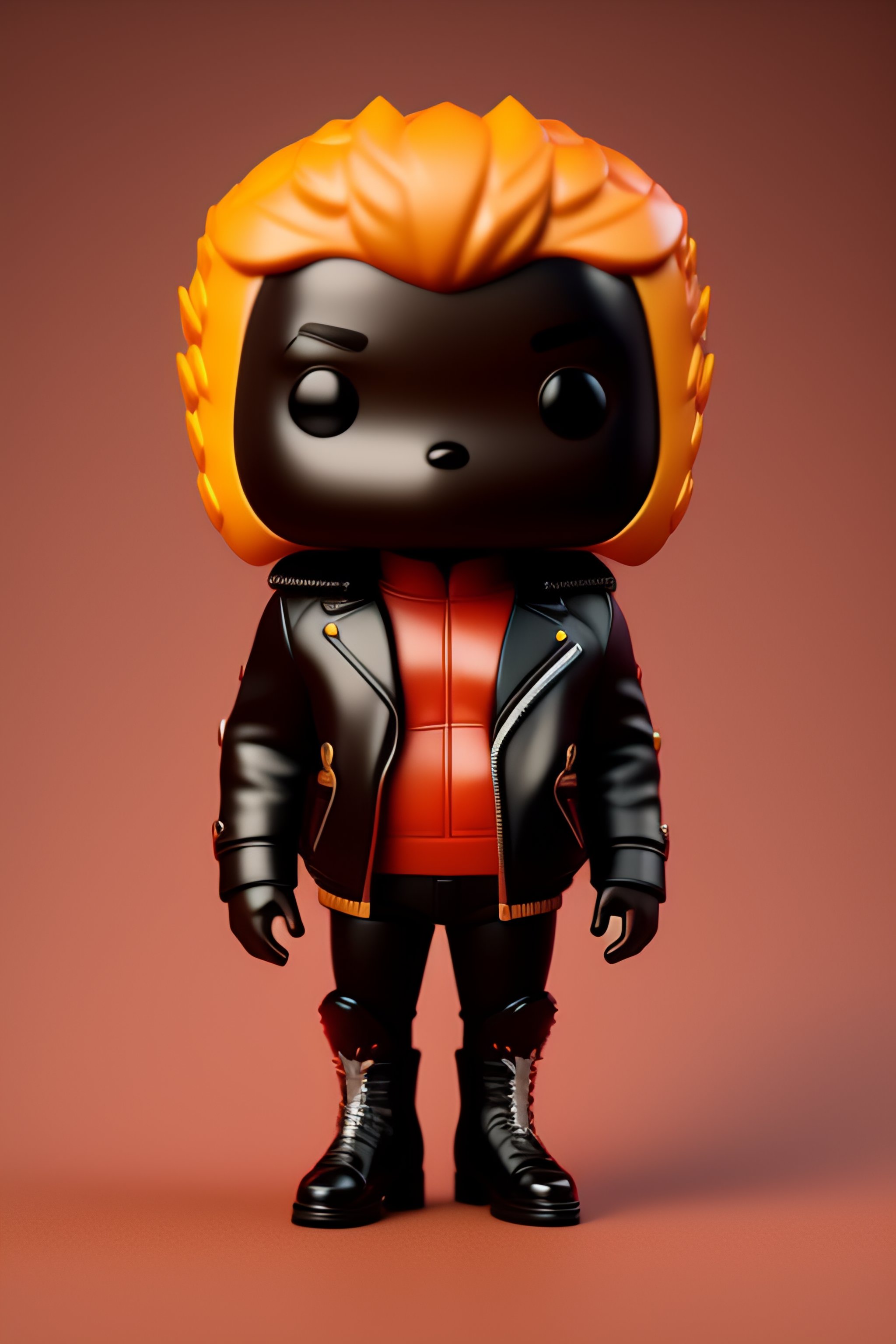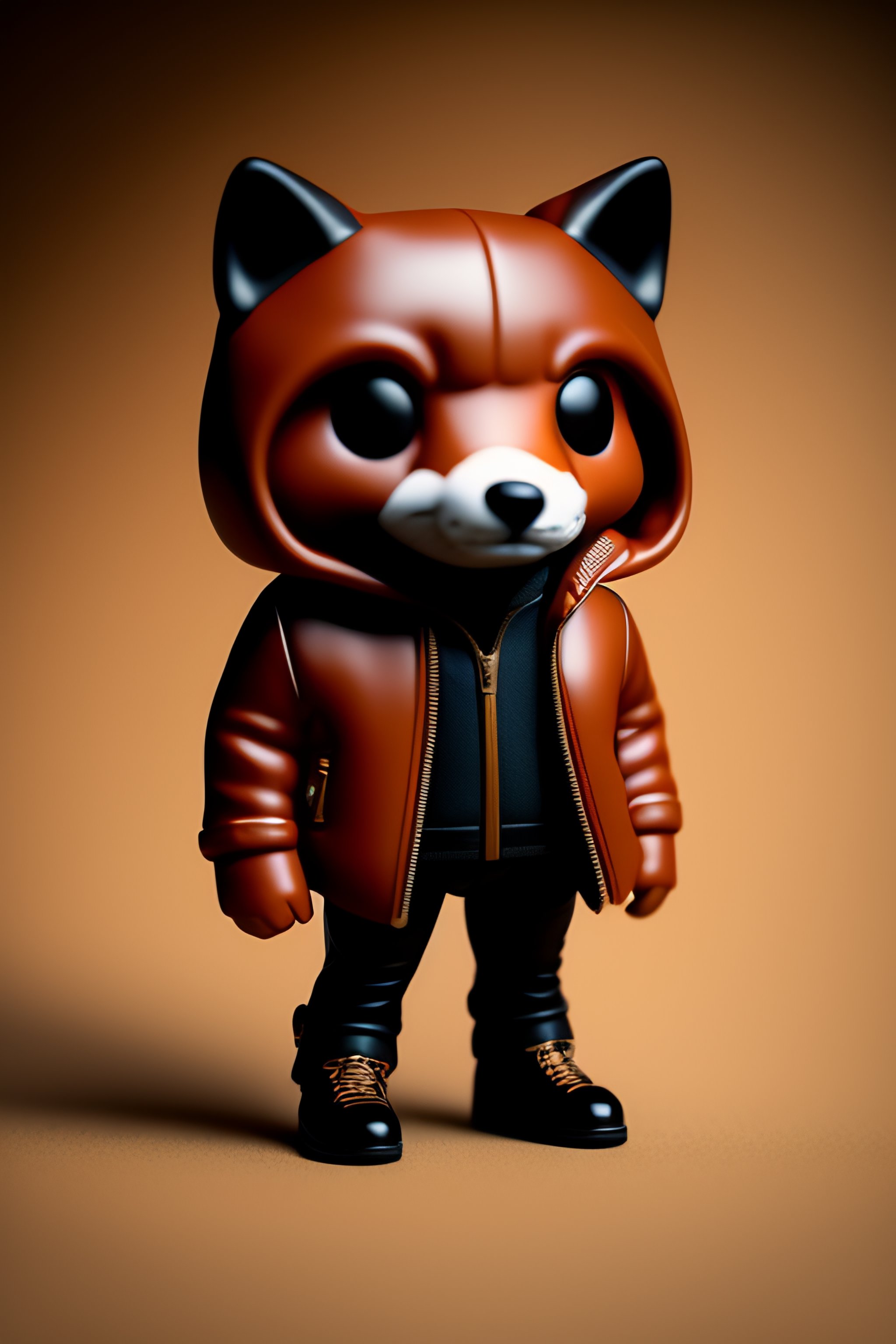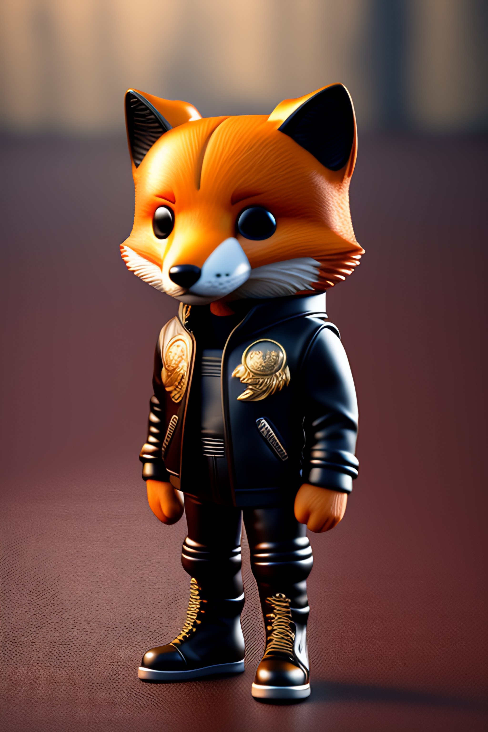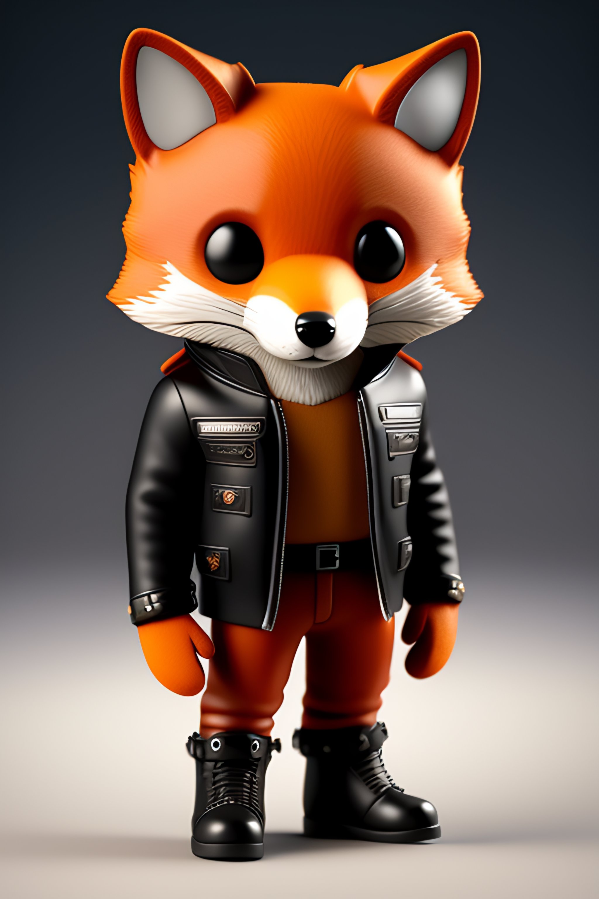 Full body 3d render of funko pop fox in a leather jacket