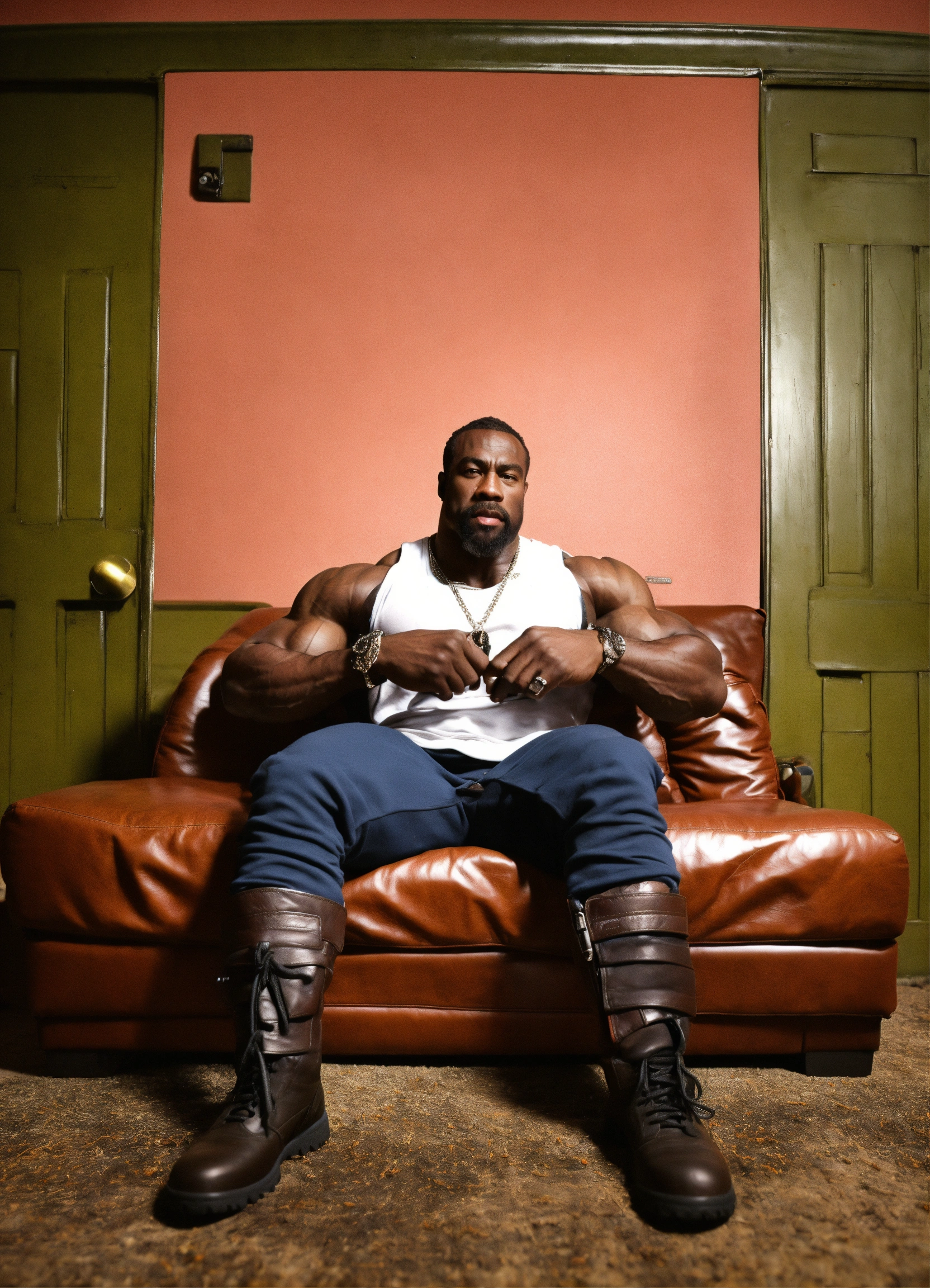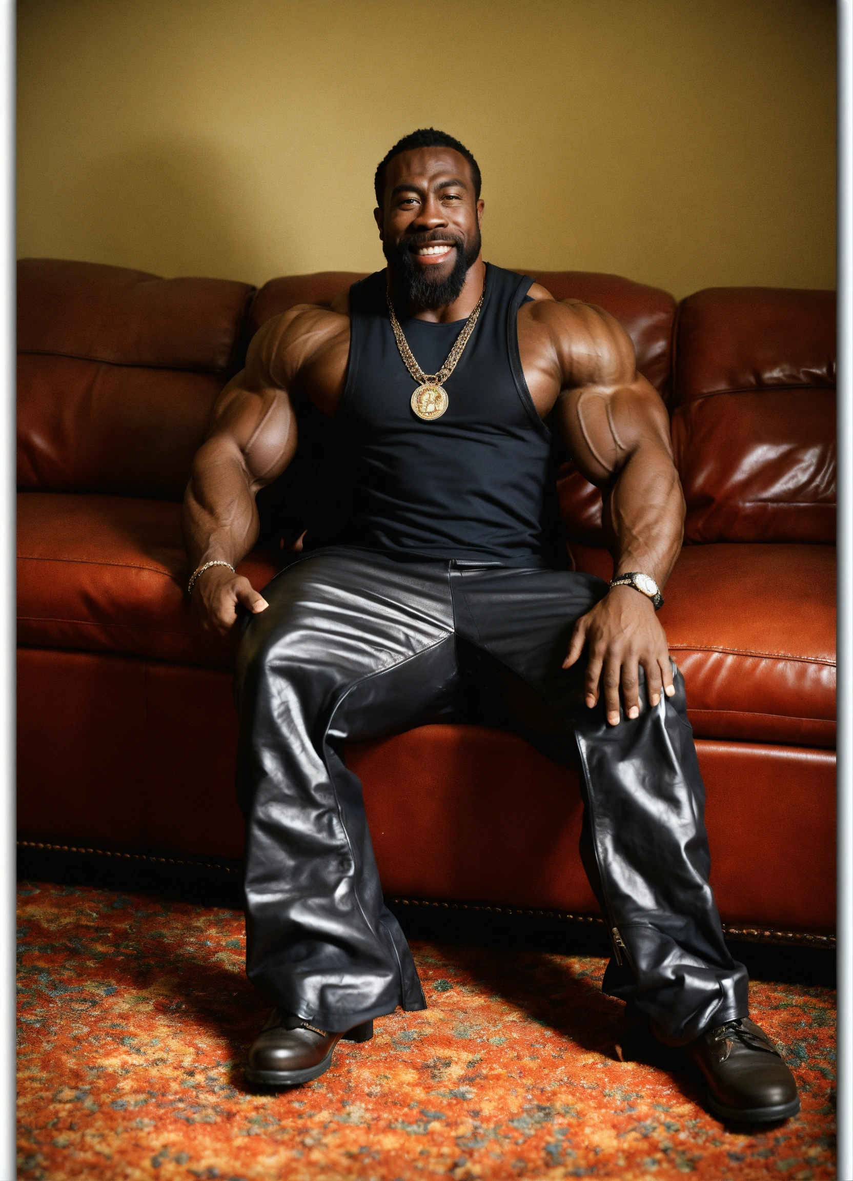Shrunk tiny shrinking micro rapper toy size kali muscle baggy clothes under leather couch on dirty floor