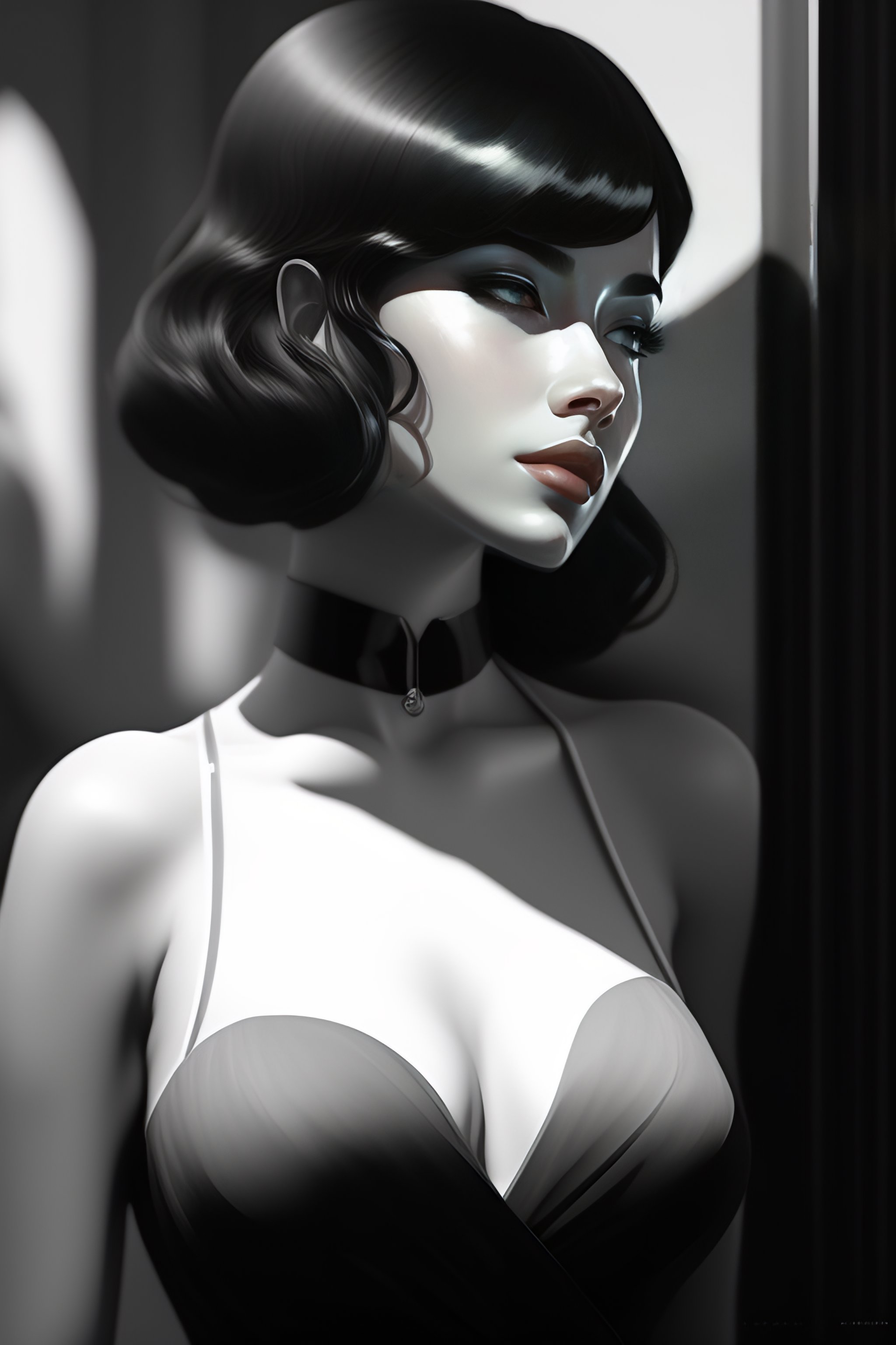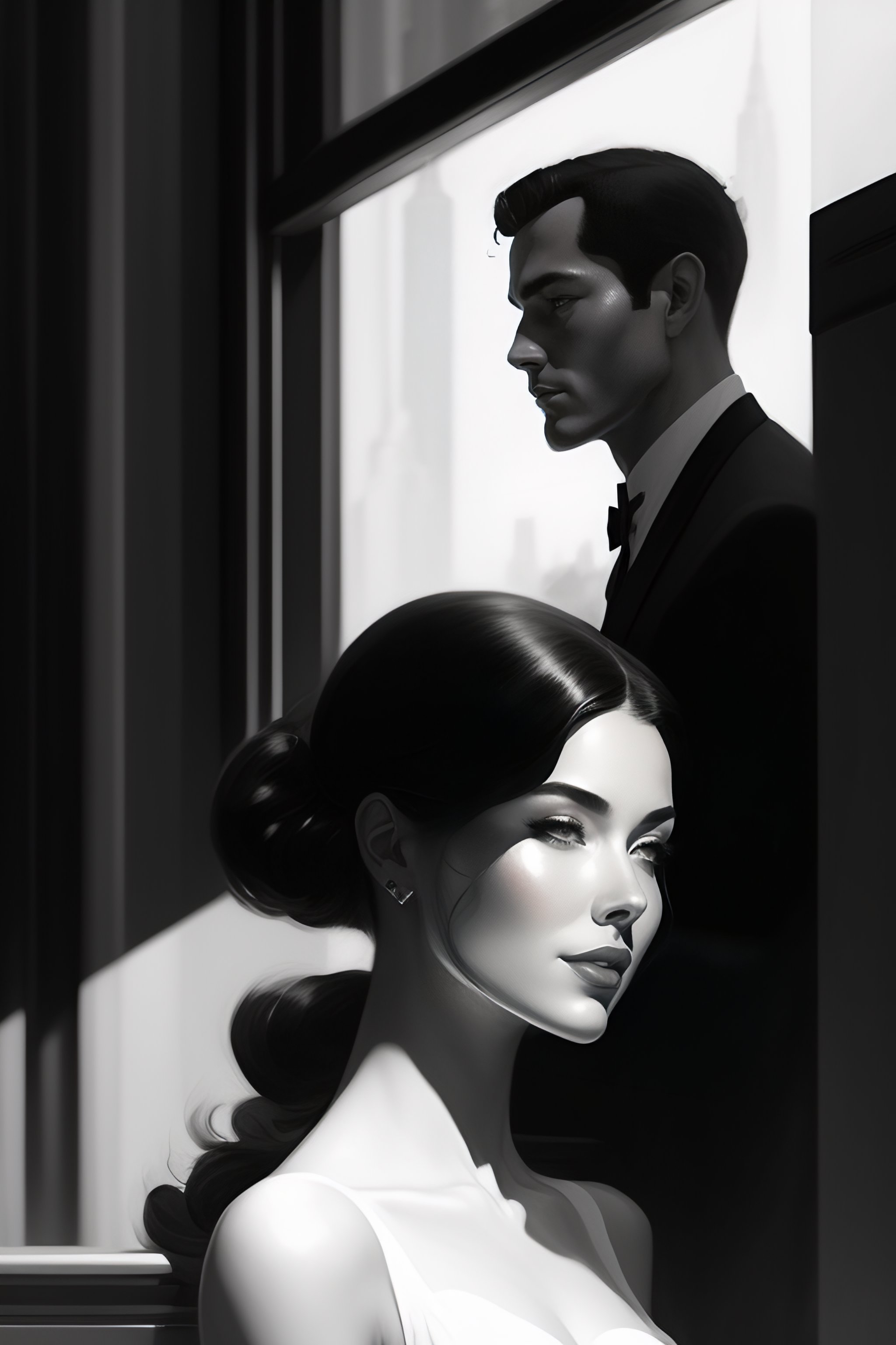 Black and white by craig mullins, ilya kuvshinov, krenz cushart, artgerm trending on artstation by edward hopper and dan mumford and wlop and rutkovsky, unreal engine 5, lumen, nanite