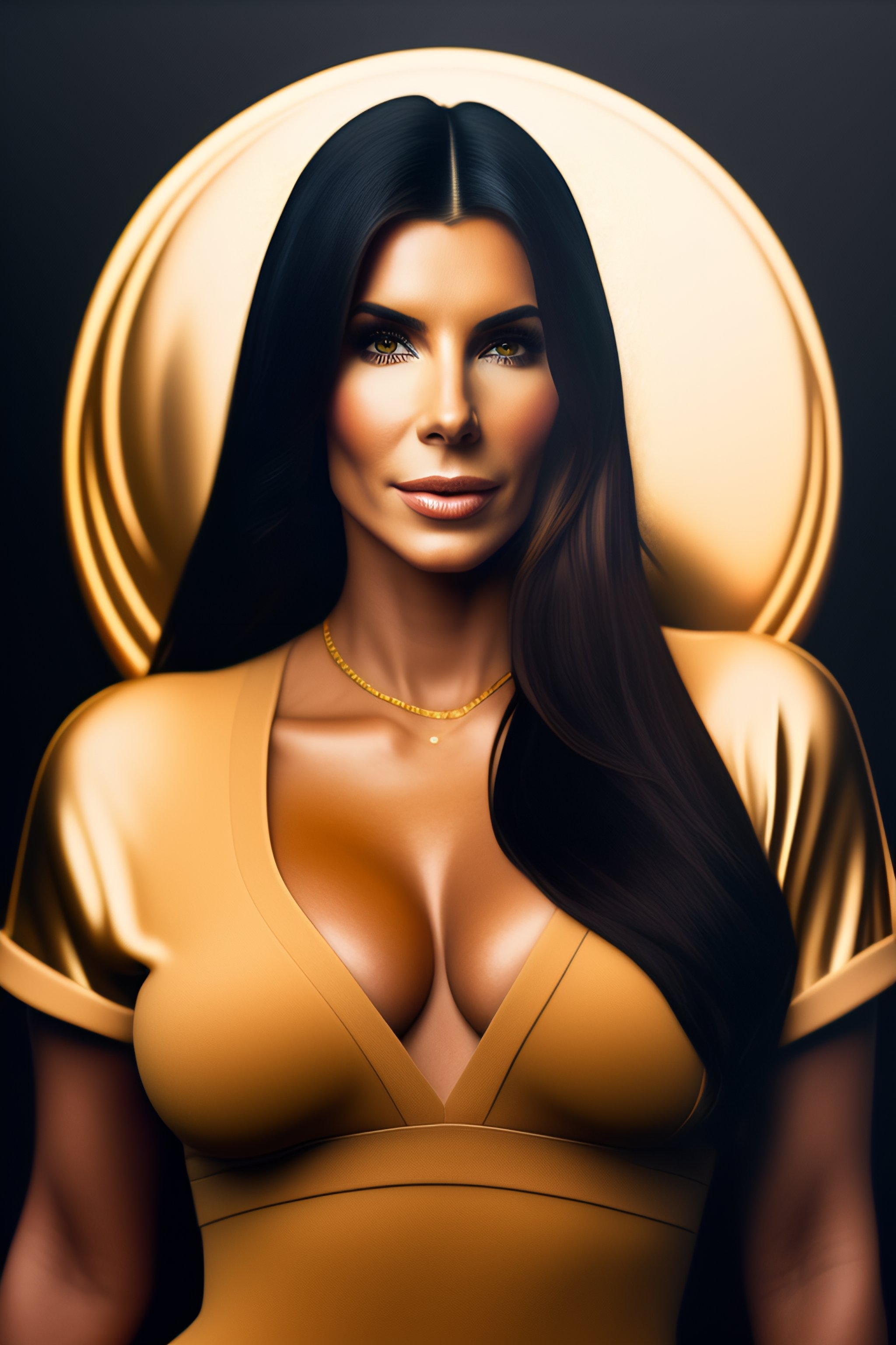 Kim kardashian perfect hourglass body, sandra bullock pretty face, blond wearing shirt and jeans, portra 400 medium format, plain background, futurstic concept art