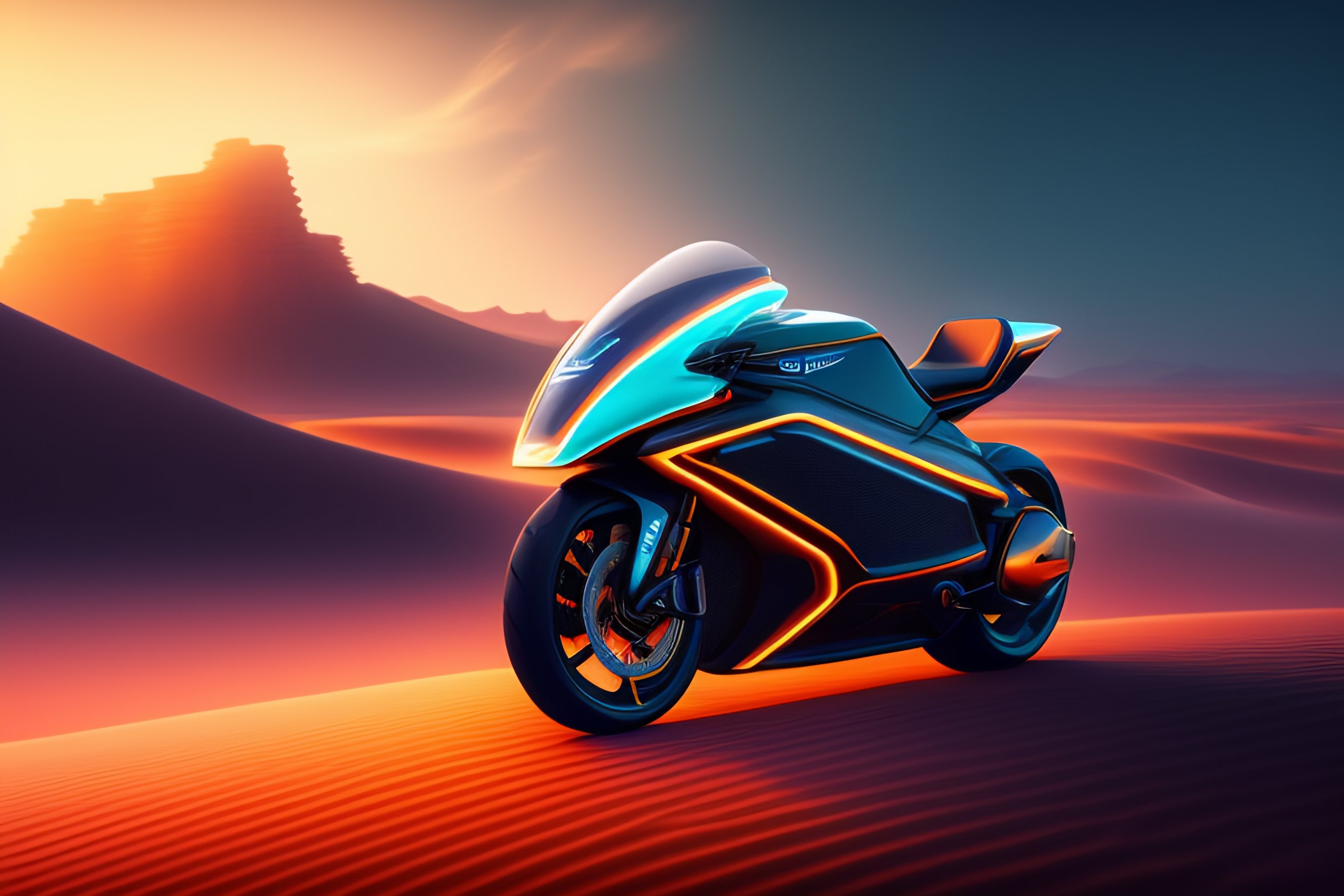 Cyberpunk hoover bike flying through the desert symmetry product render poster vivid colors classical proportion car, glowing fog intricate, elegant, highly detailed, digital painting, art station, concept art, smooth, sharp focus, illustration art by royocano