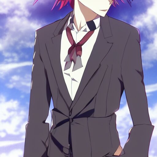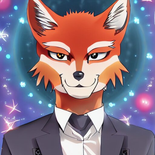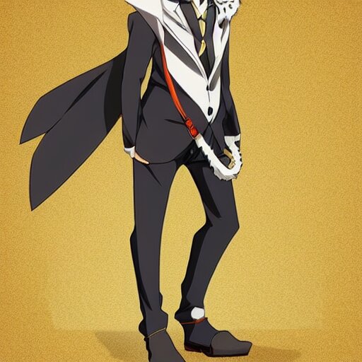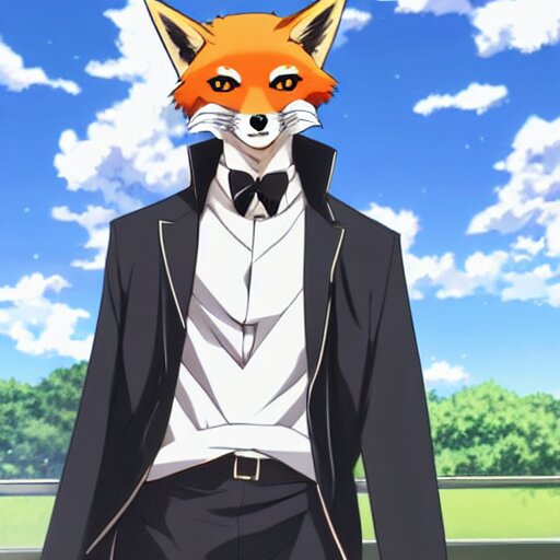 Modern anime still an anthro male fox furry fursona in a formal outfit, handsome anime eyes, key anime visuals