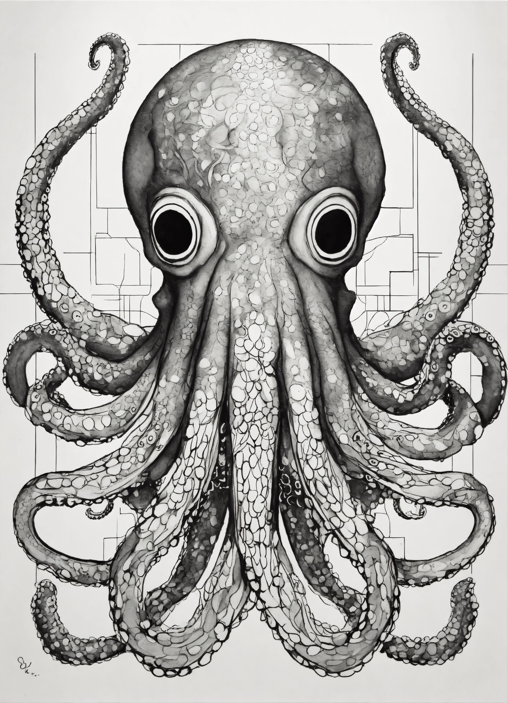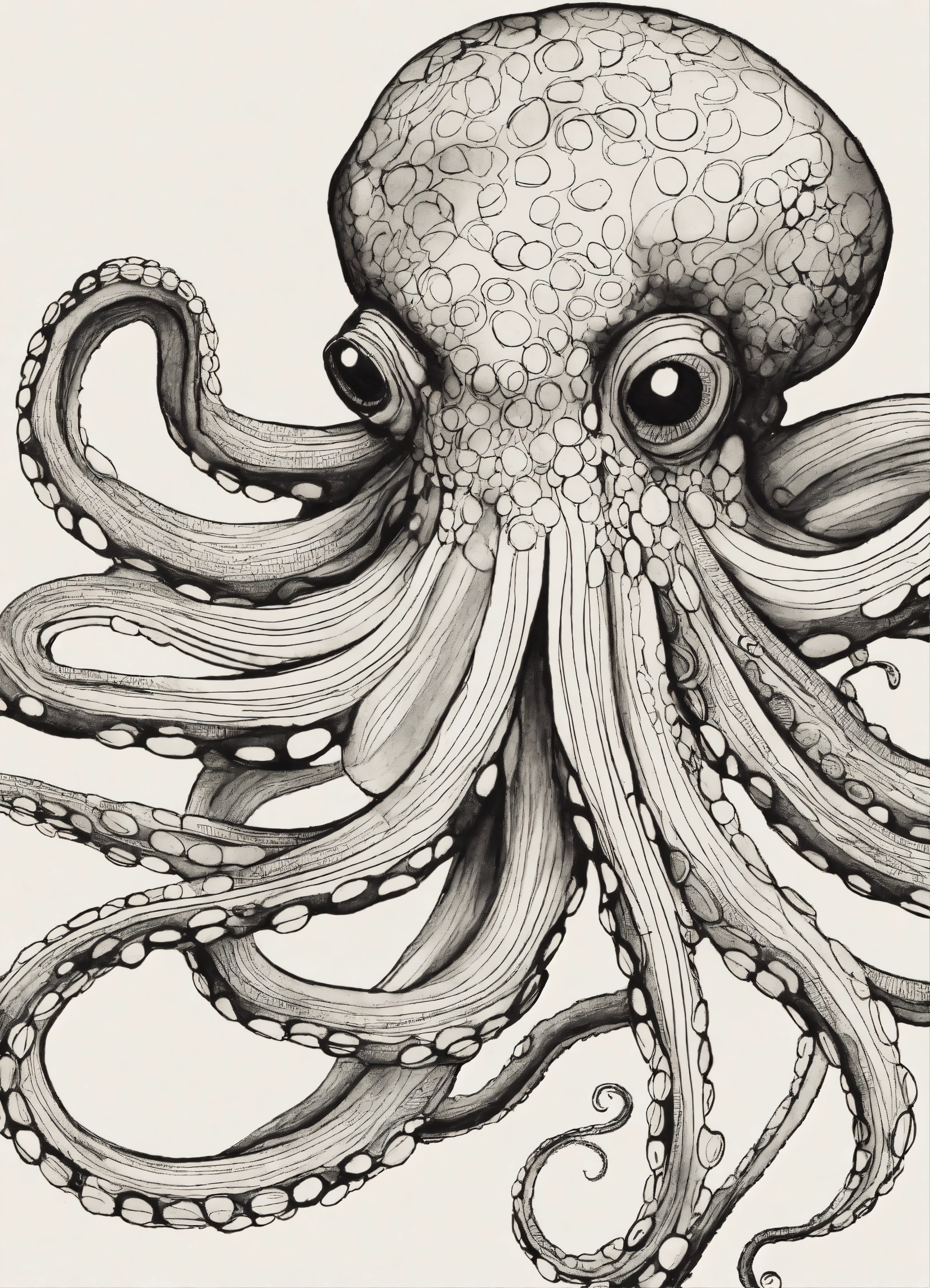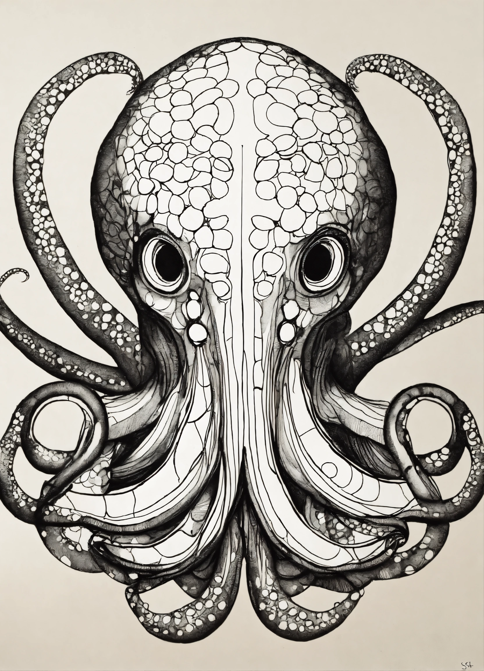 Beautiful detailed octopus portrait, one line drawing, bold sketch inspired by bauhaus and henri matisse. si scott