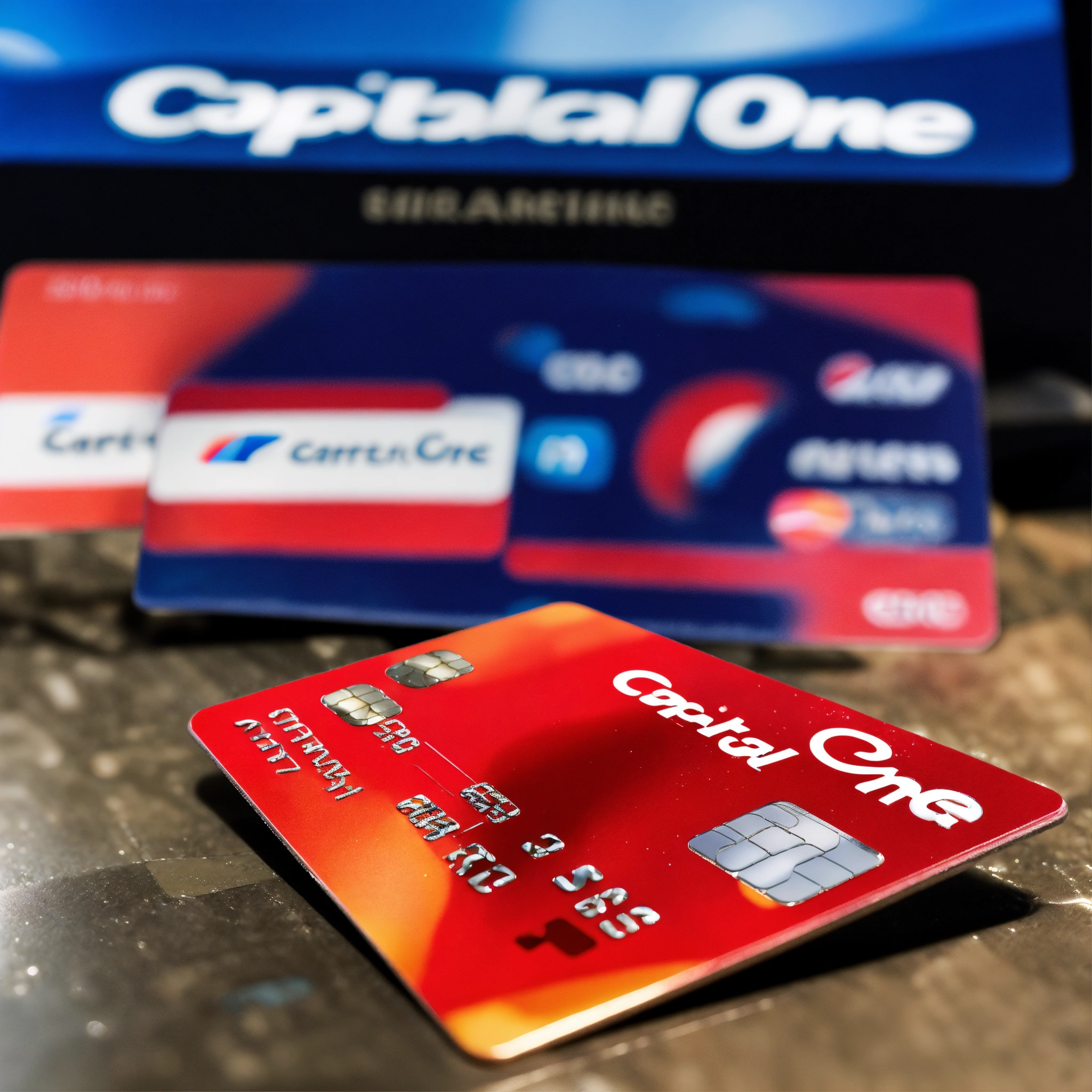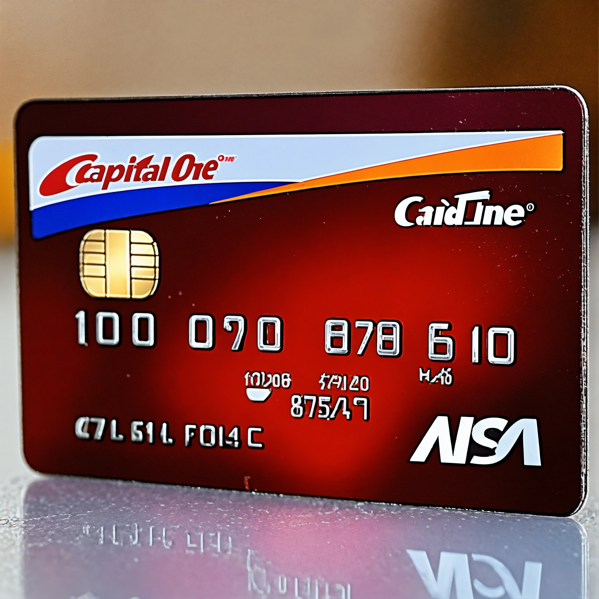 A photo of a capital one credit card, the card is in good condition with no scratches or marks on it, the card is in the foreground with a white background