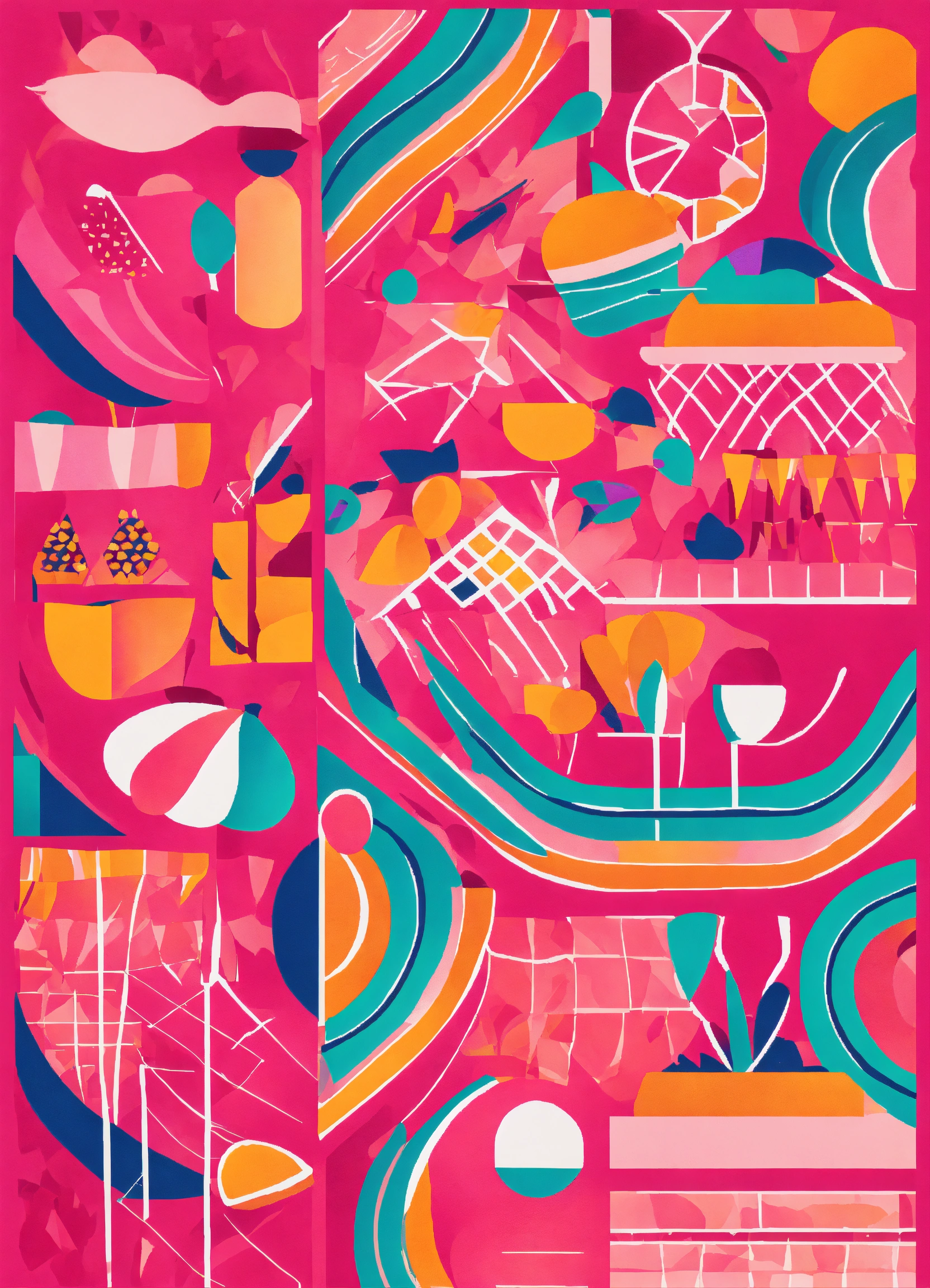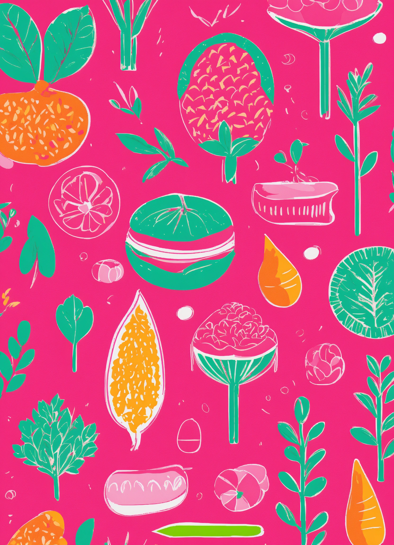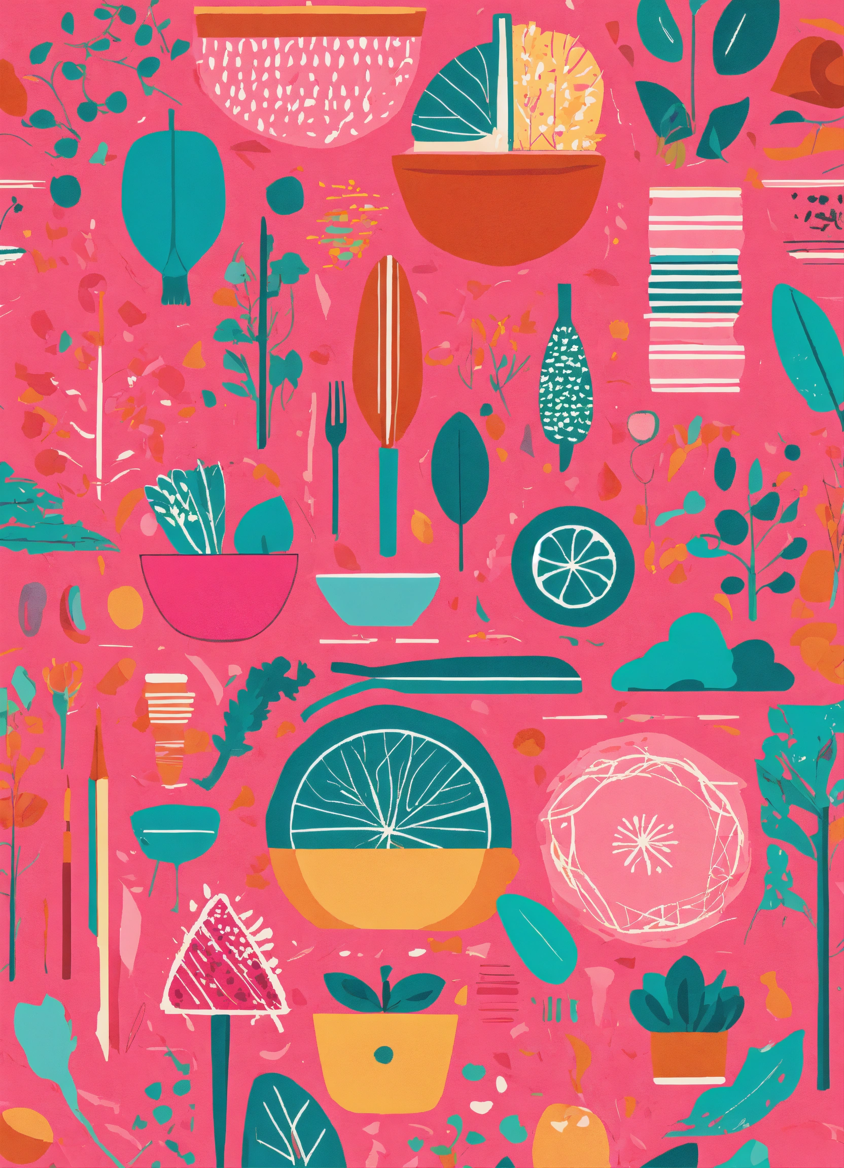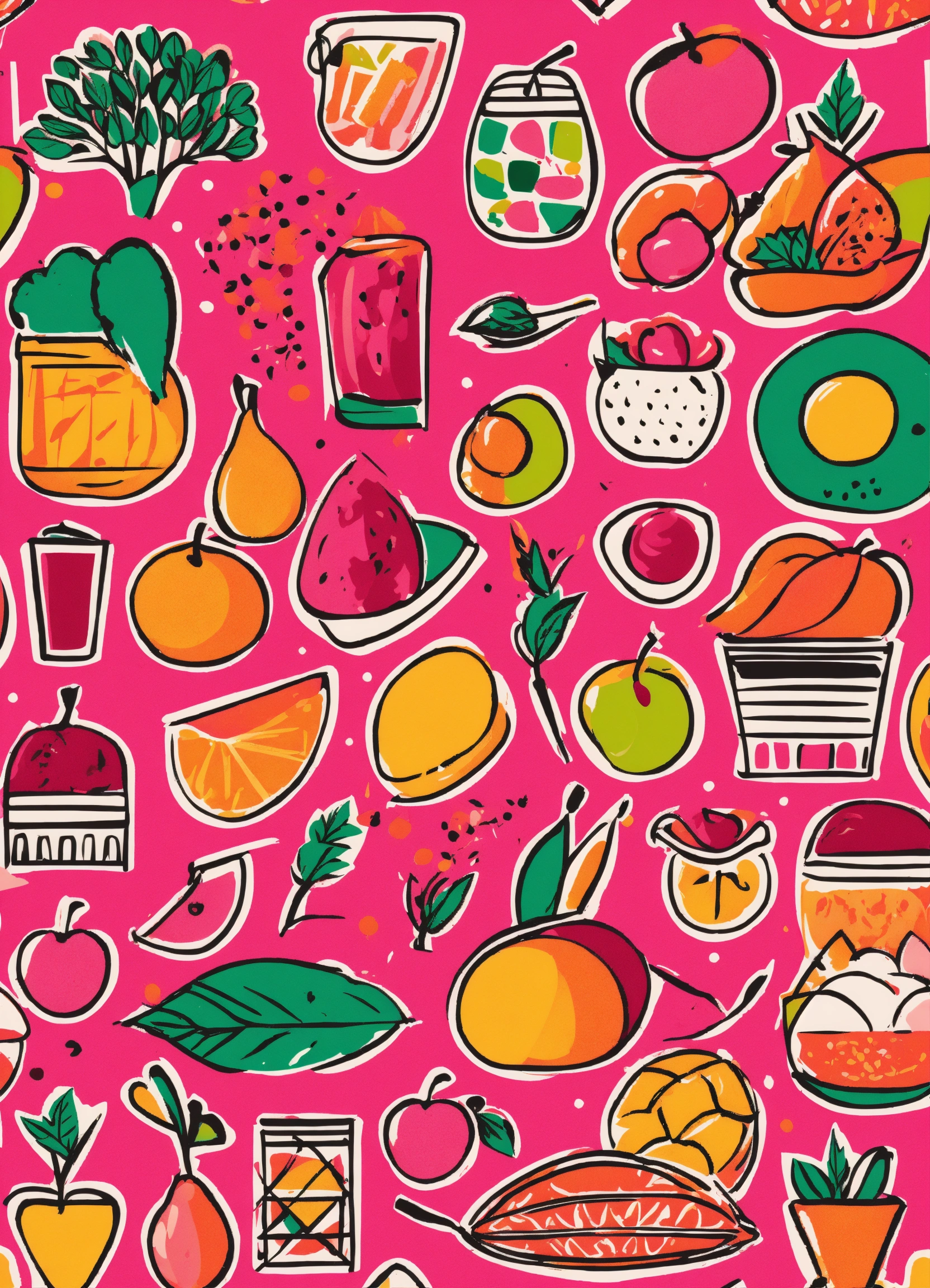 Abstract geometric vector pattern in scandinavian style, food symbol, harvest of garden, background illustration graphic design, bright pink (crayola) with variations